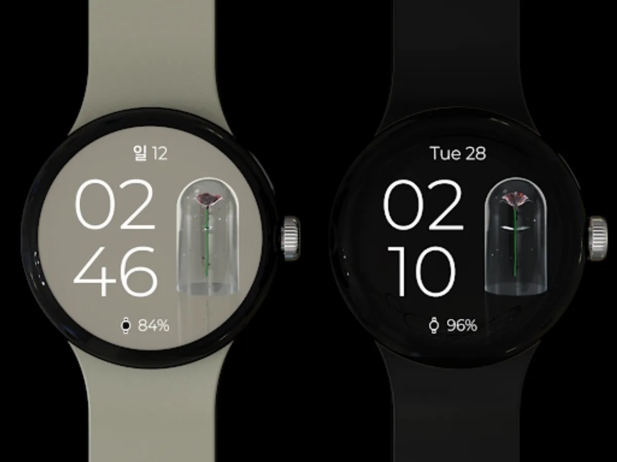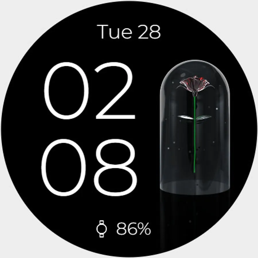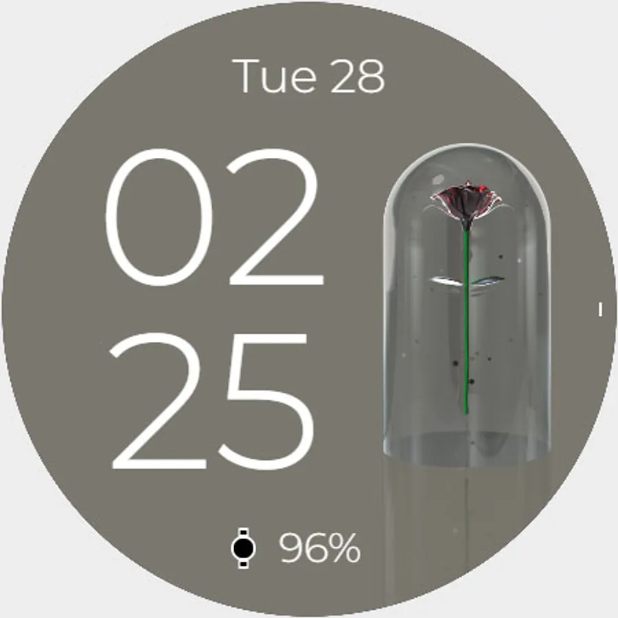 장미 애니메이션이 적용된 워치페이스