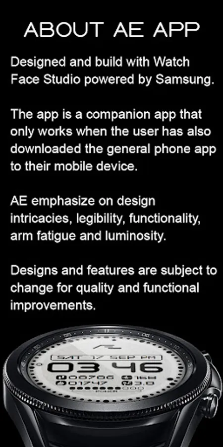 Alithir Elements holds the responsibility for the design, functions, feature and quality of this App, tested on Samsung Tizen and Wear OS watches, all features and functions worked as intended. The same may not apply with other Wear OS devices. App is subject to change for quality and functional improvements.