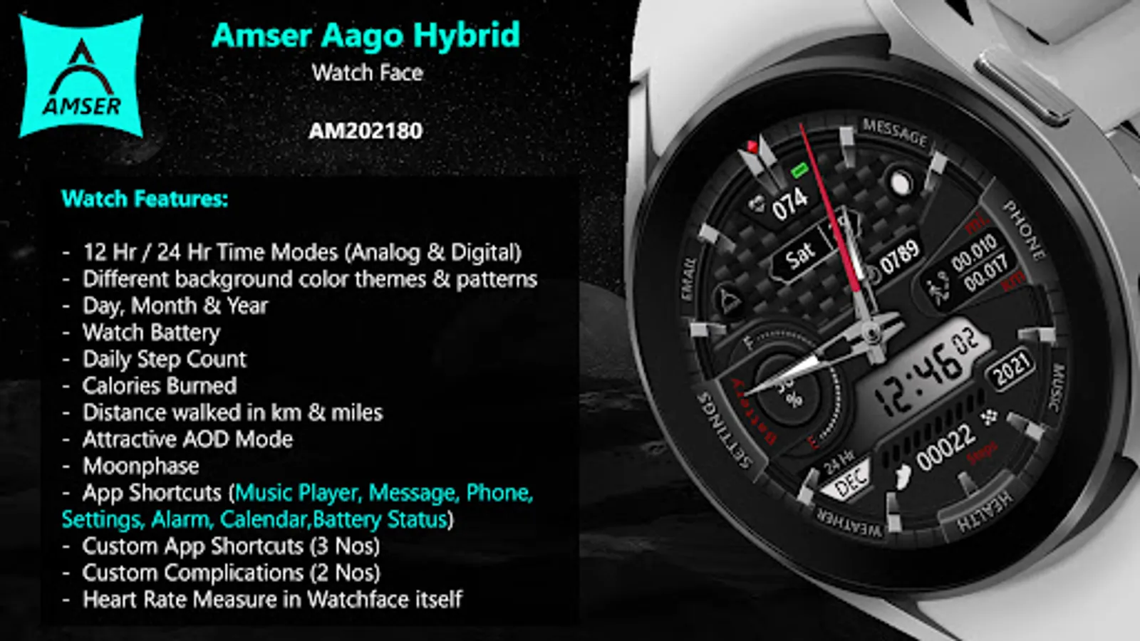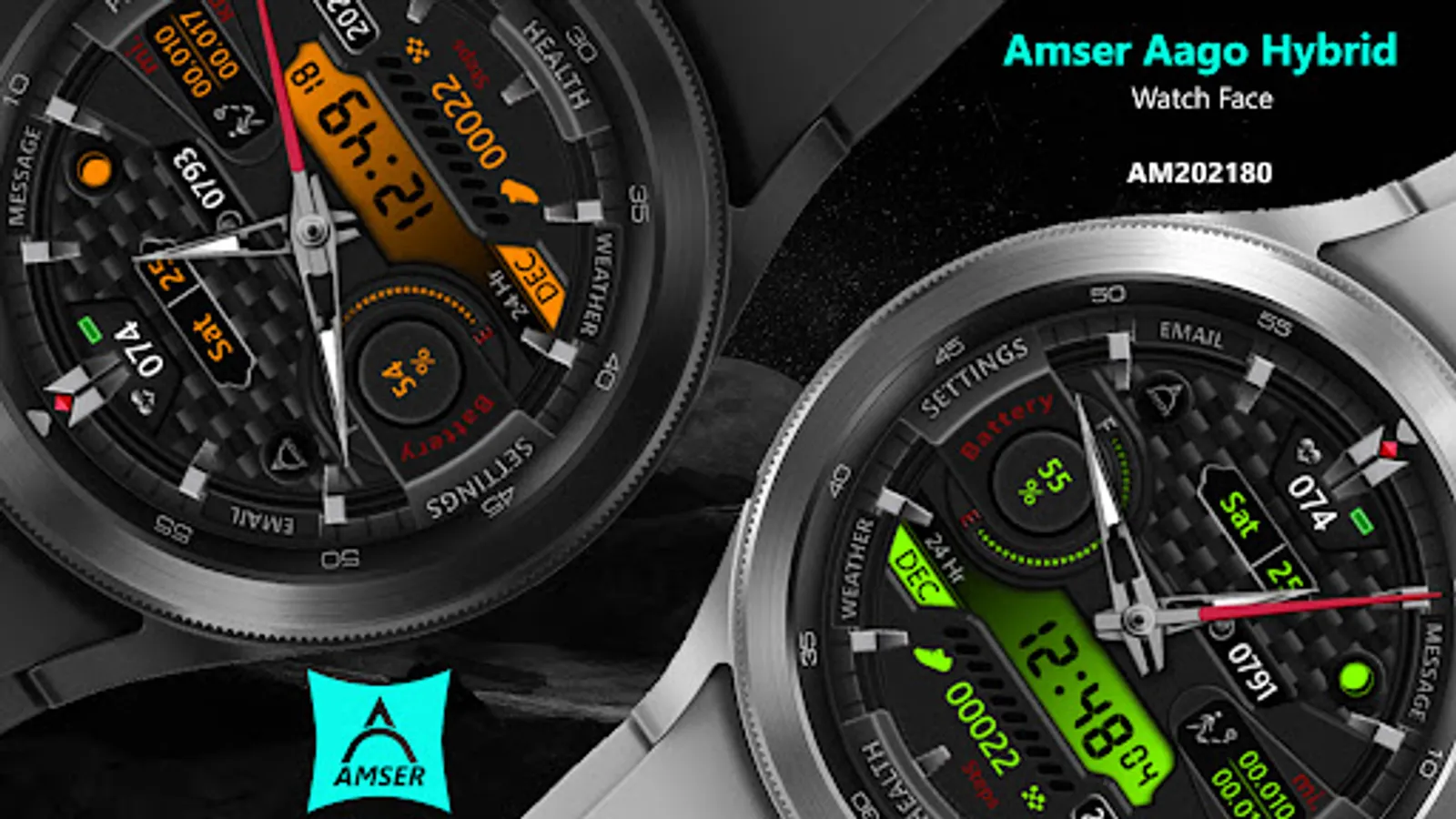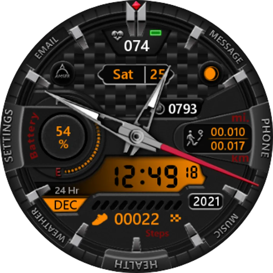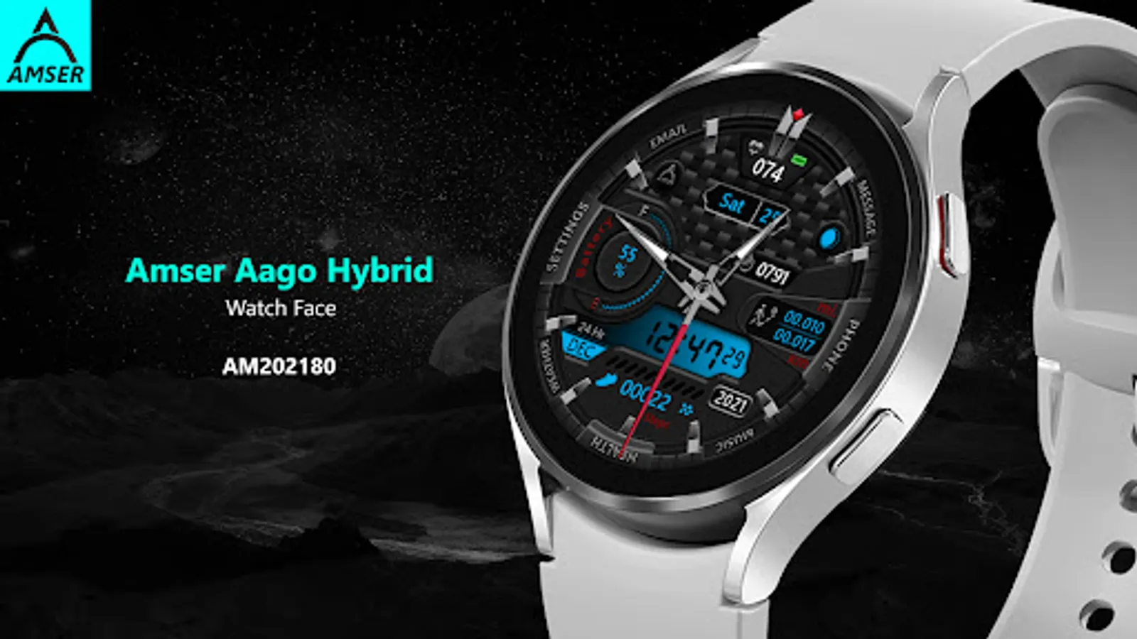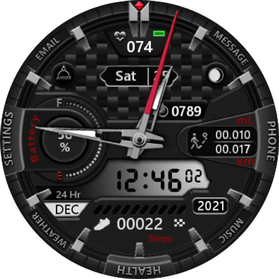 Amser Rieka Hybrid (Analog + Digital) Sports WatchFace for Wear OS which supports Samsung Galaxy Watch 4 + Watch Faces for other Wear OS device manufacturers
