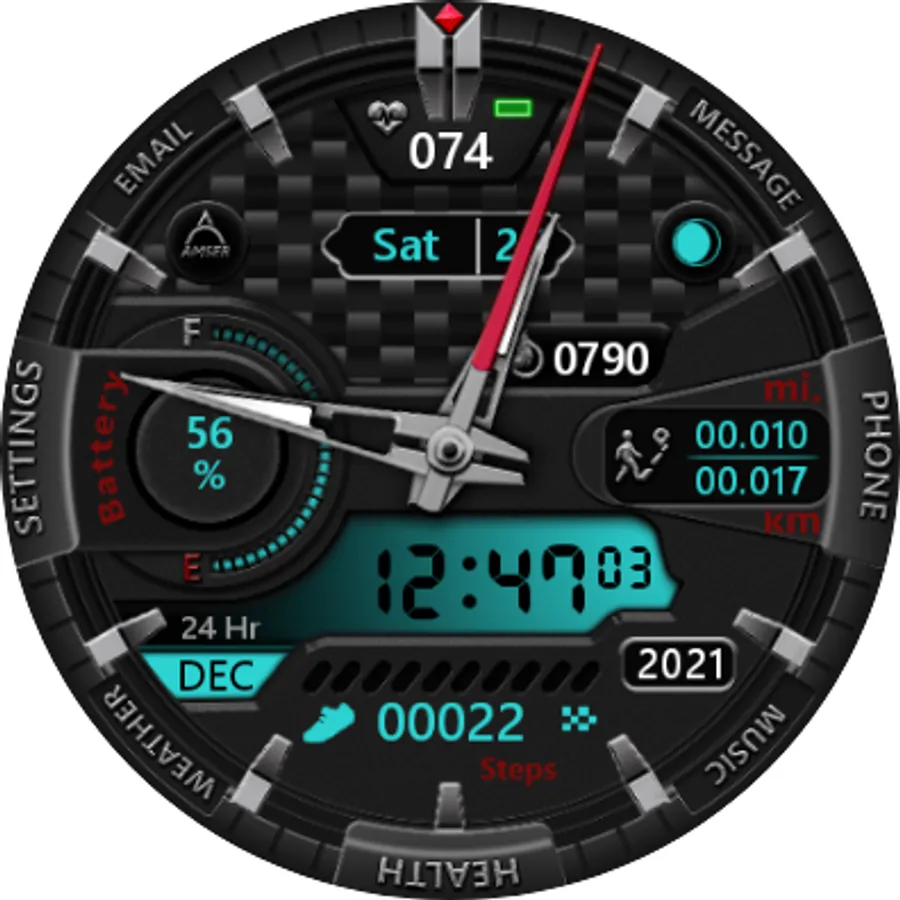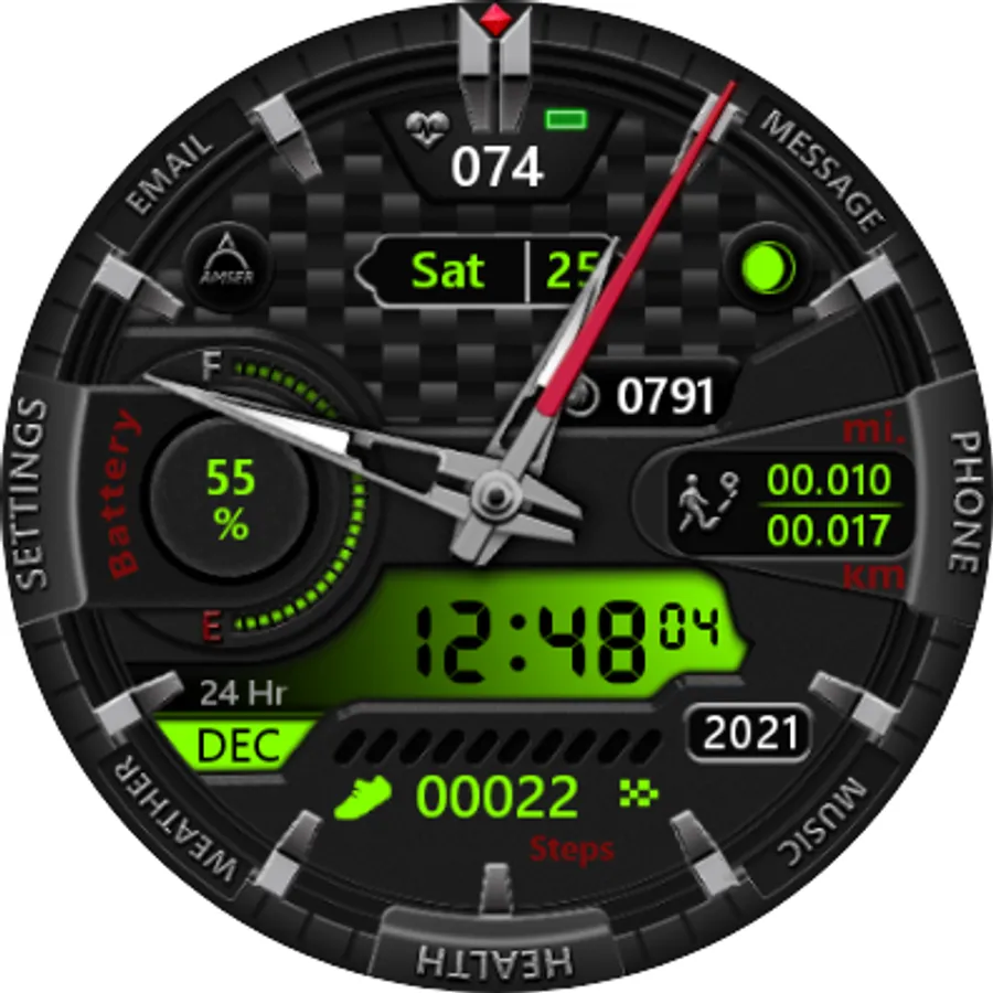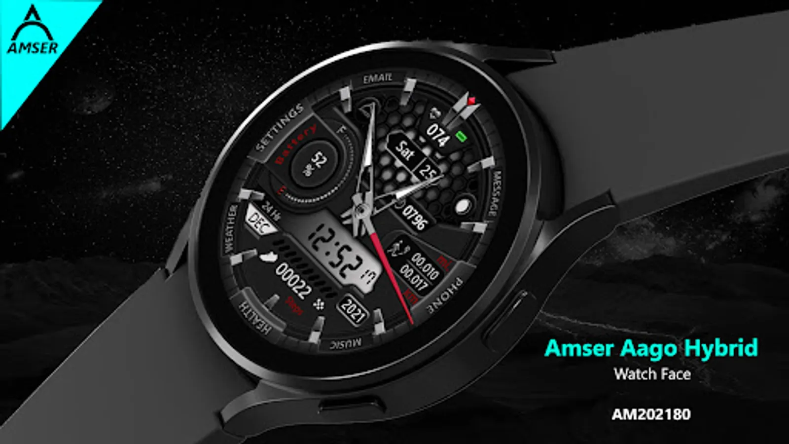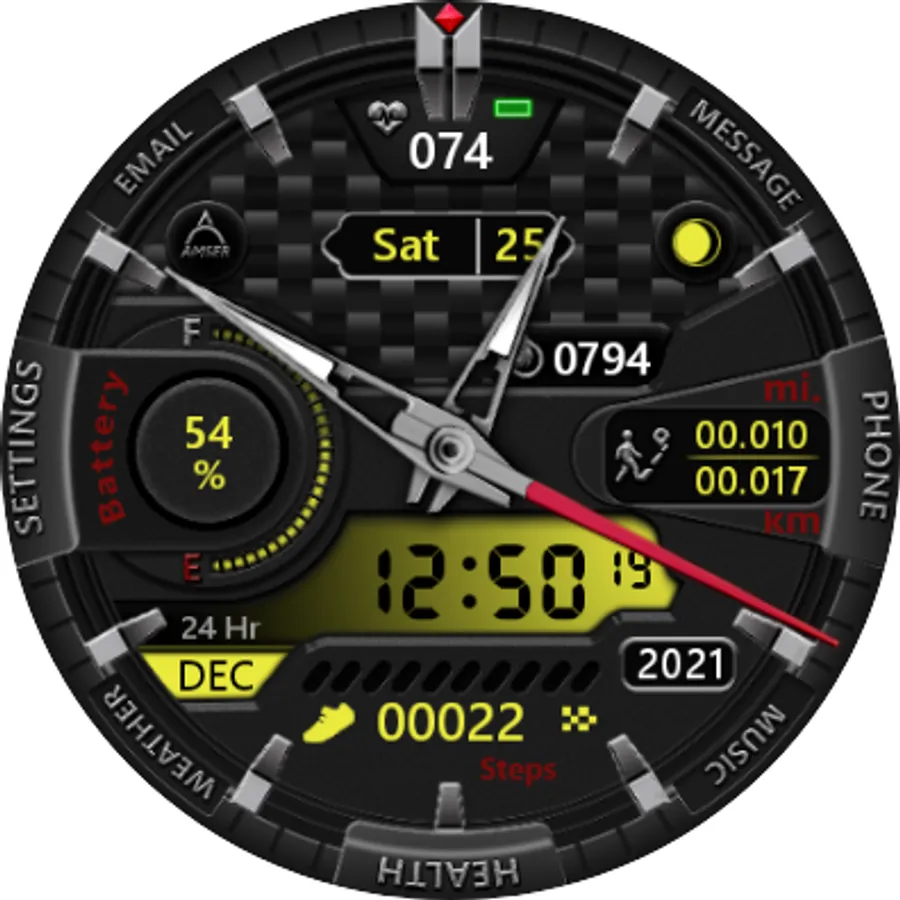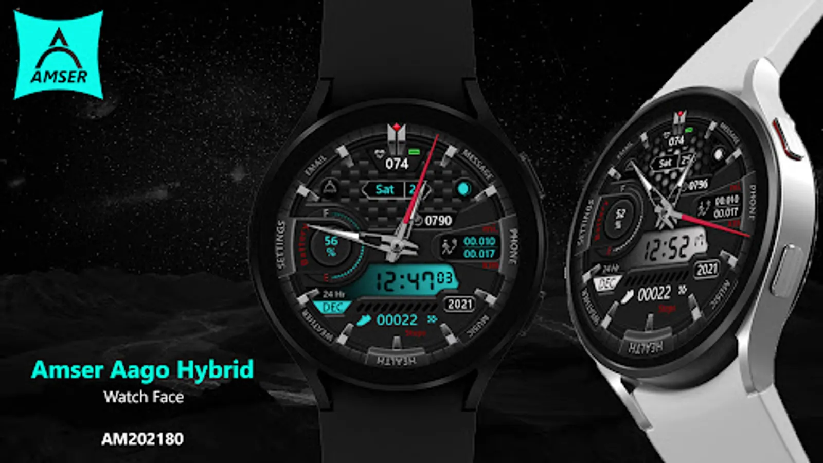 Amser Rieka Hybrid (Analog + Digital) Sports WatchFace for Wear OS which supports Samsung Galaxy Watch 4 + Watch Faces for other Wear OS device manufacturers