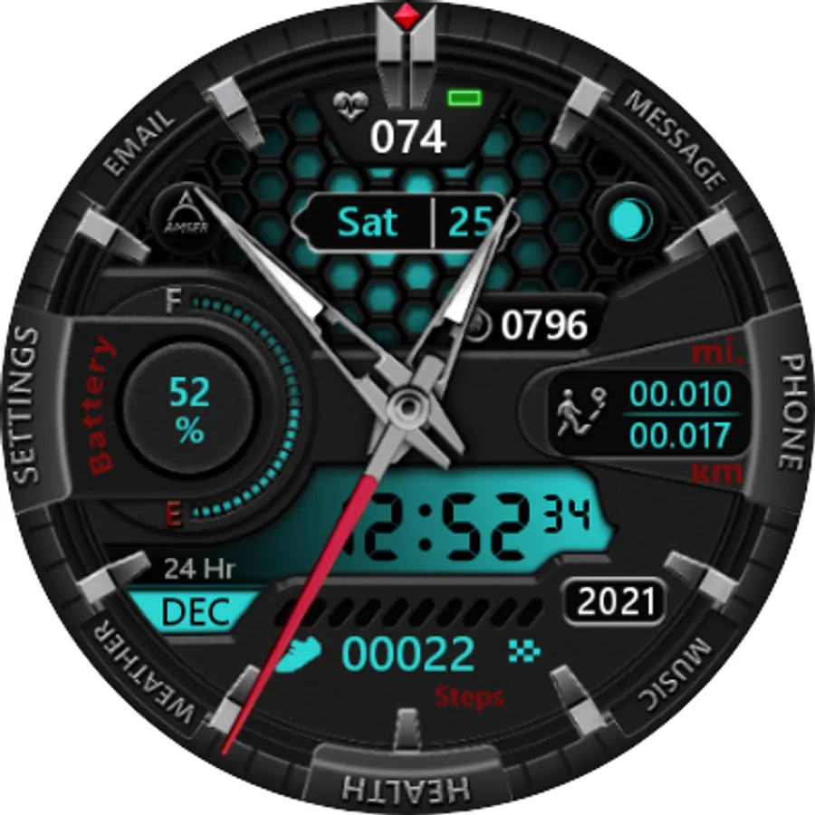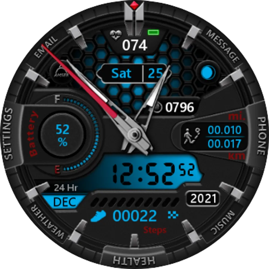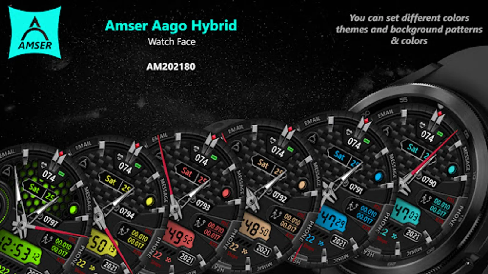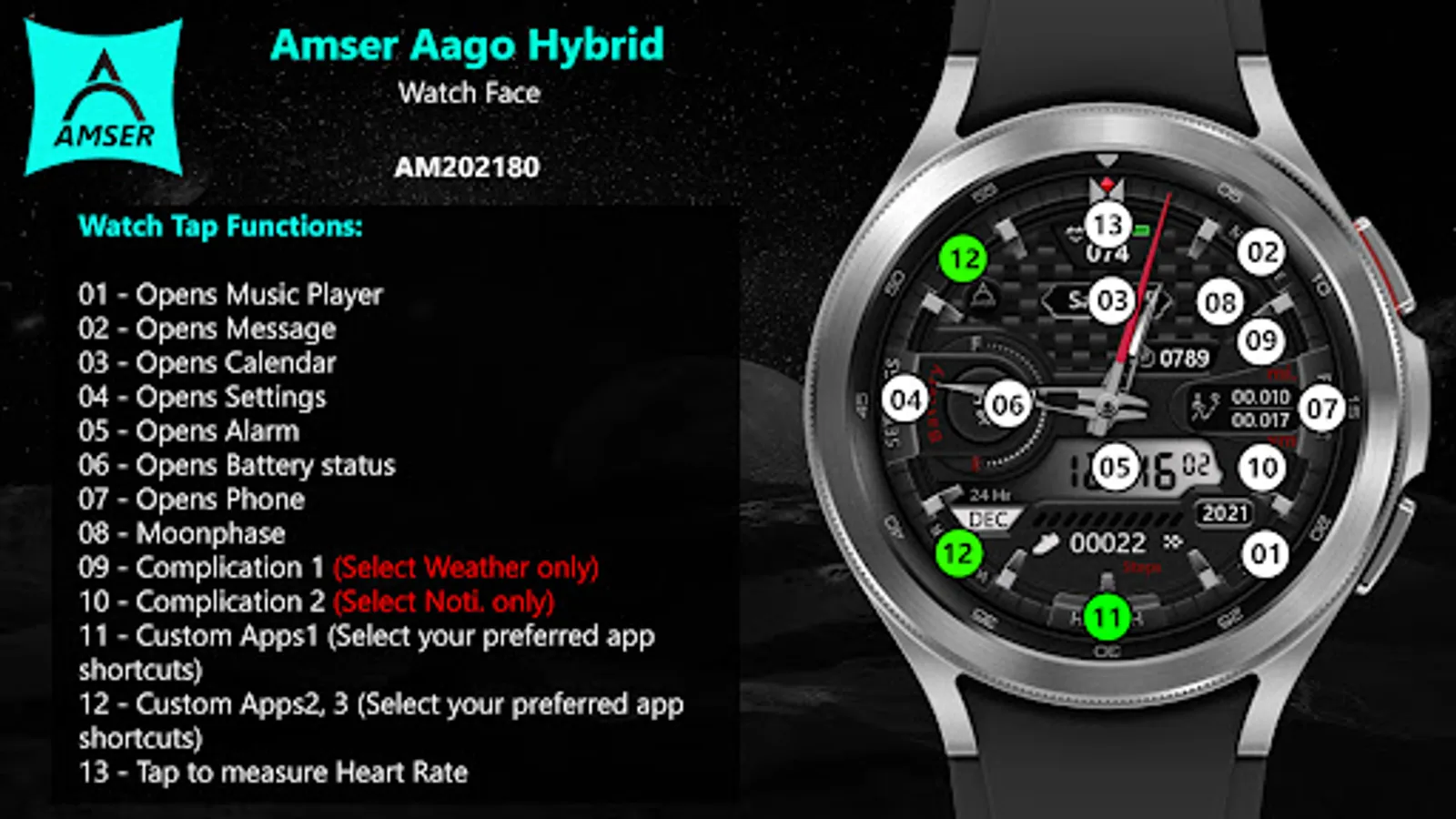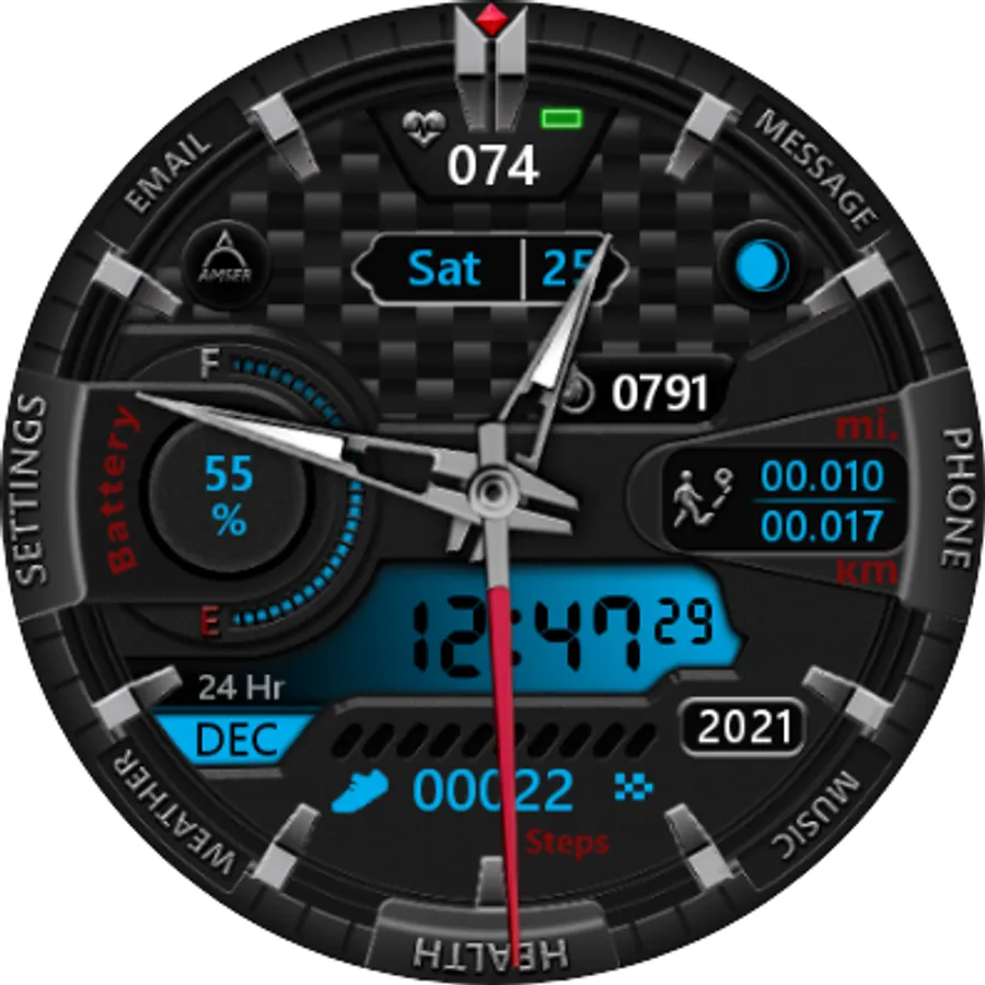 Amser Rieka Hybrid (Analog + Digital) Sports WatchFace for Wear OS which supports Samsung Galaxy Watch 4 + Watch Faces for other Wear OS device manufacturers