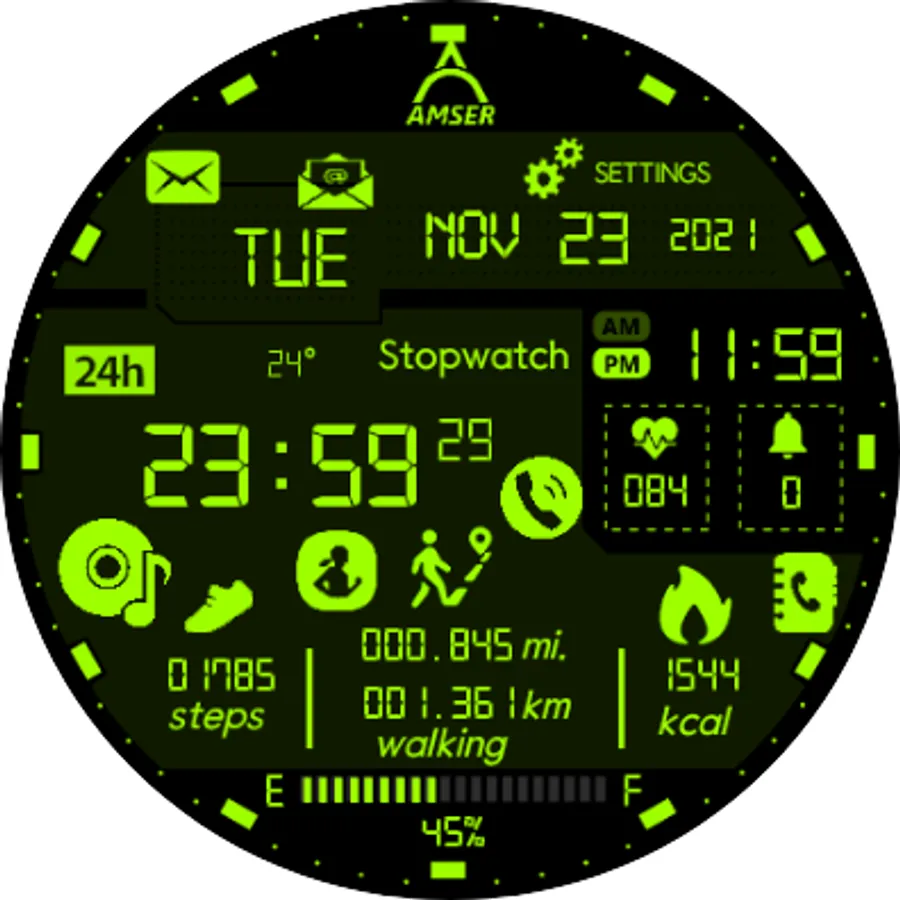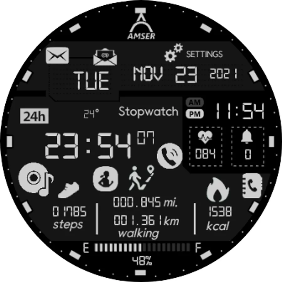 Warning: Phone app has only instructions, if you don't have watch please do not install, Watch Face can be only installed on the devices which supports Wear OS