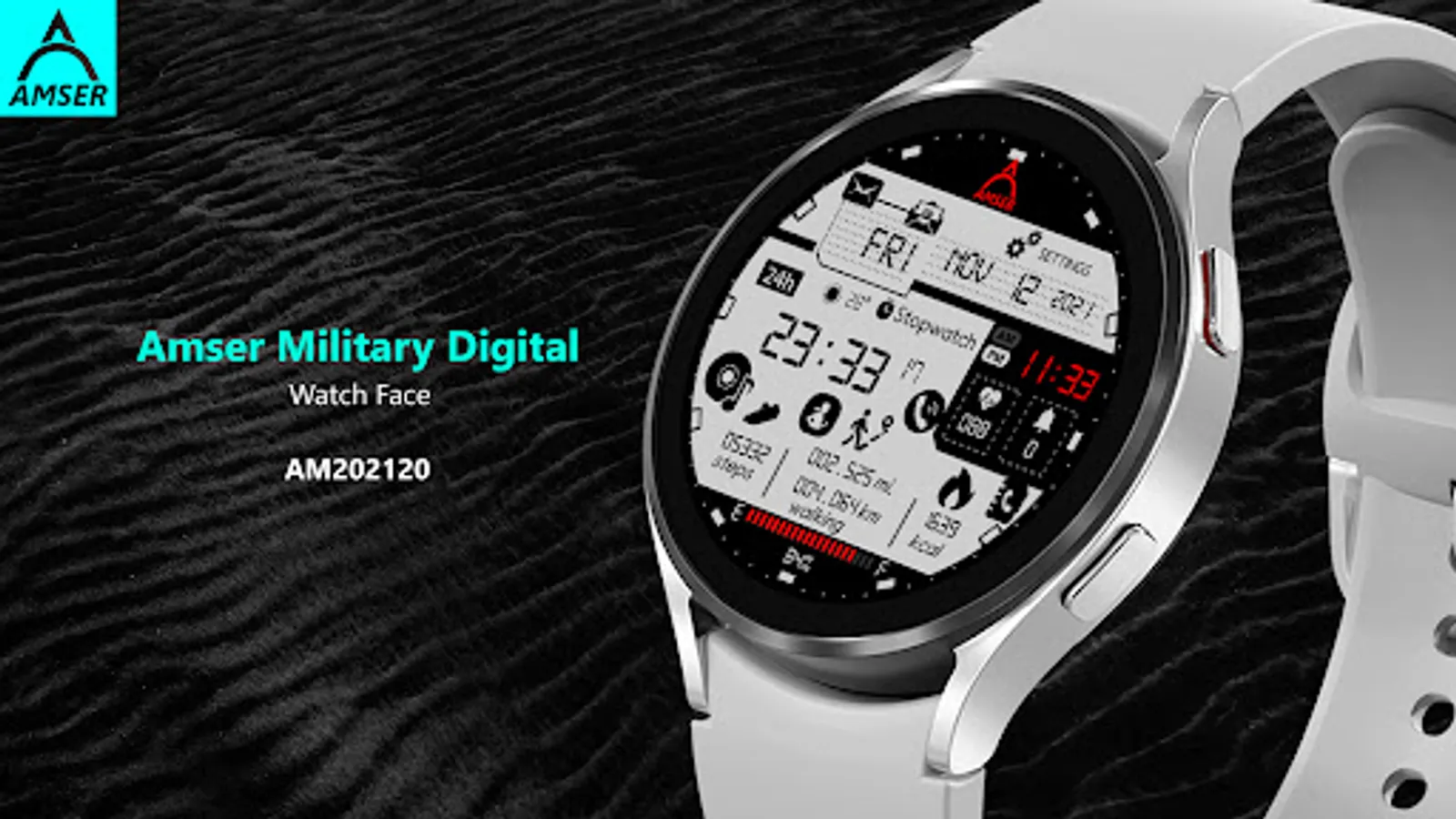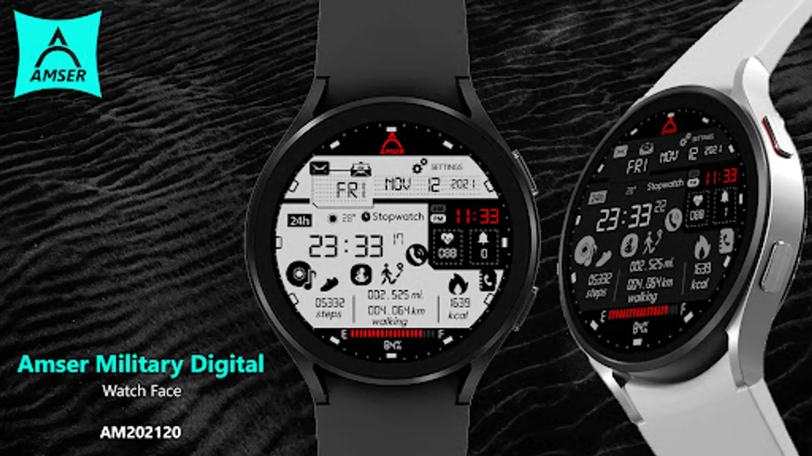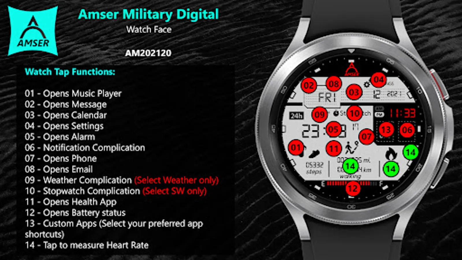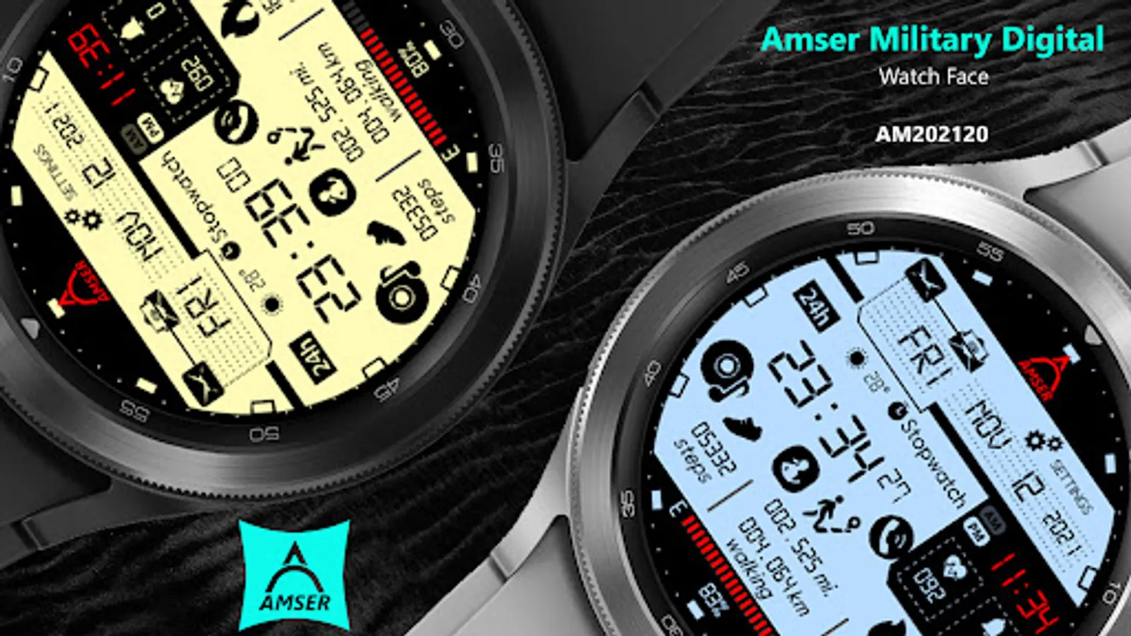 Amser Military Digital Watch Face for Wear OS which supports Samsung Galaxy Watch 4 + Watch Faces for other Wear OS device manufacturers