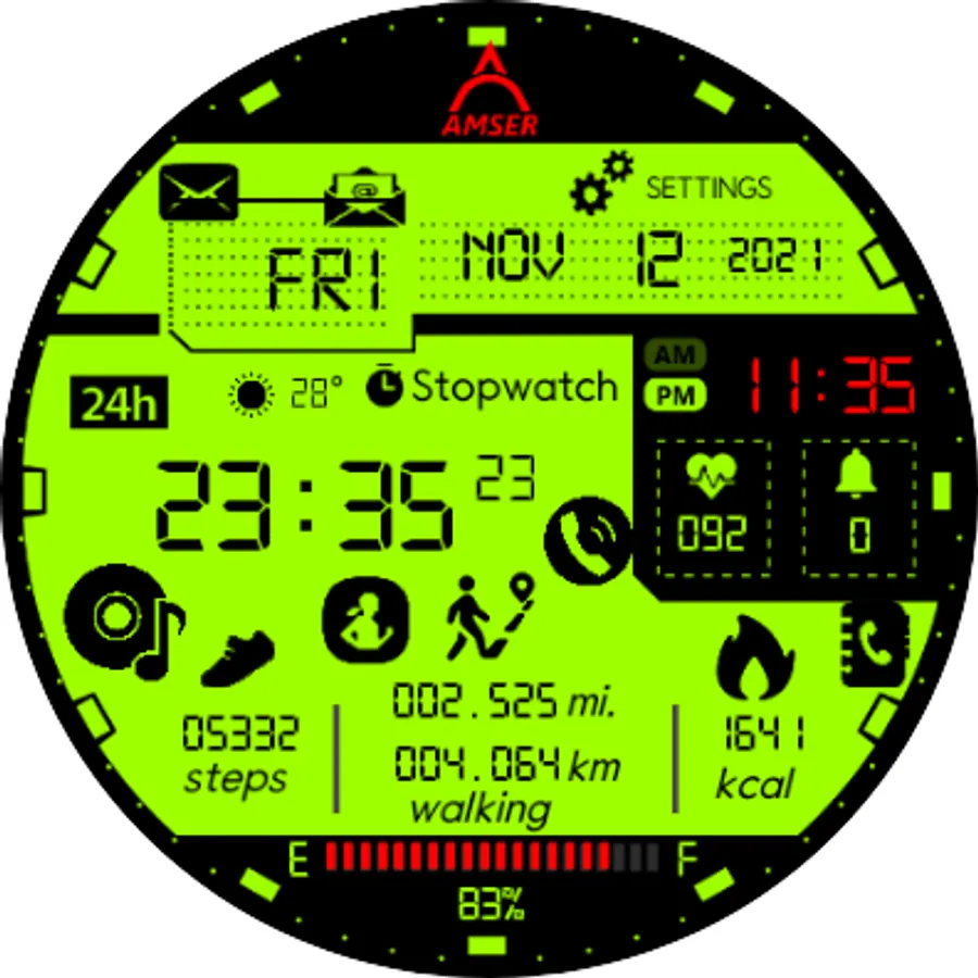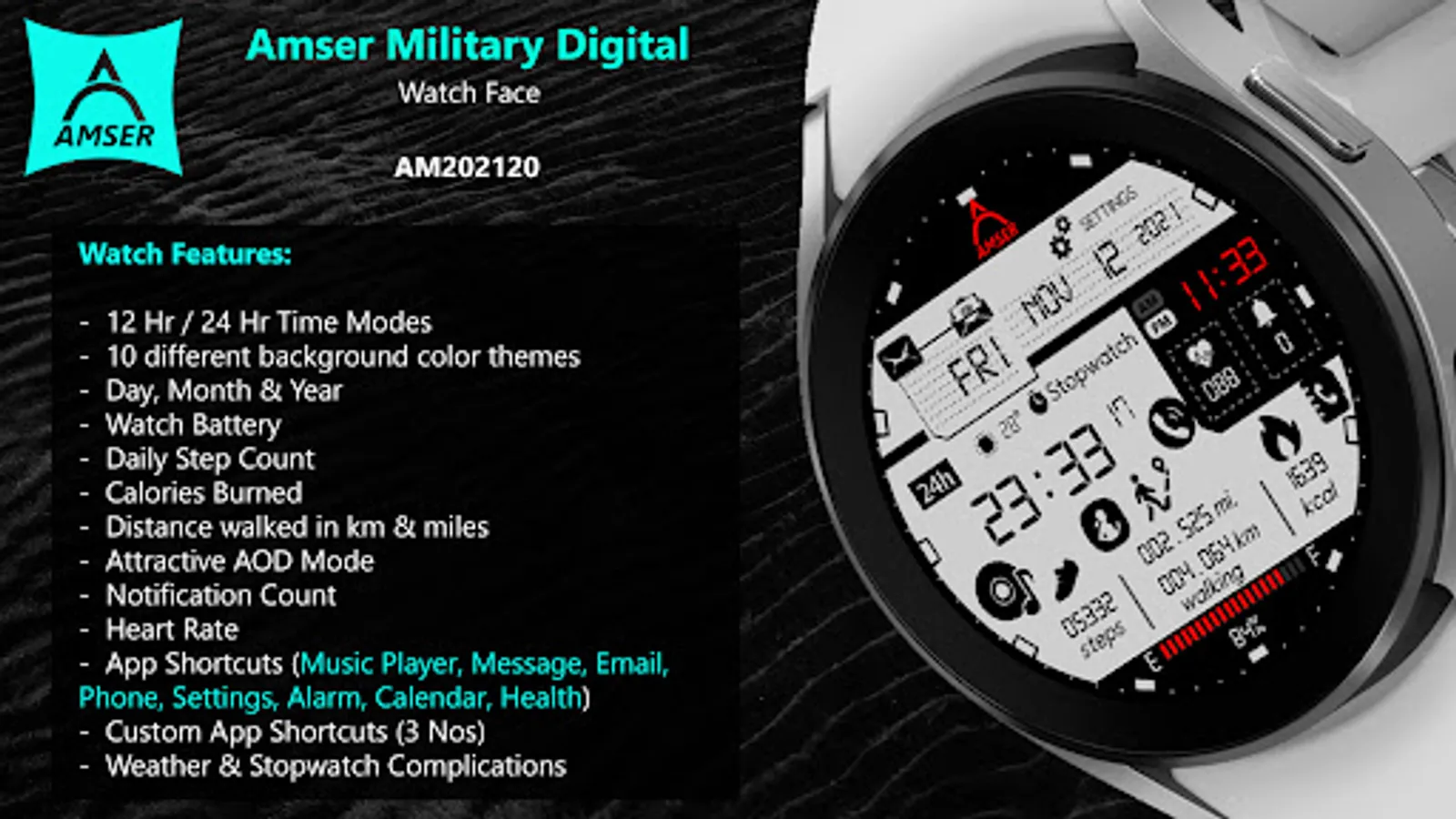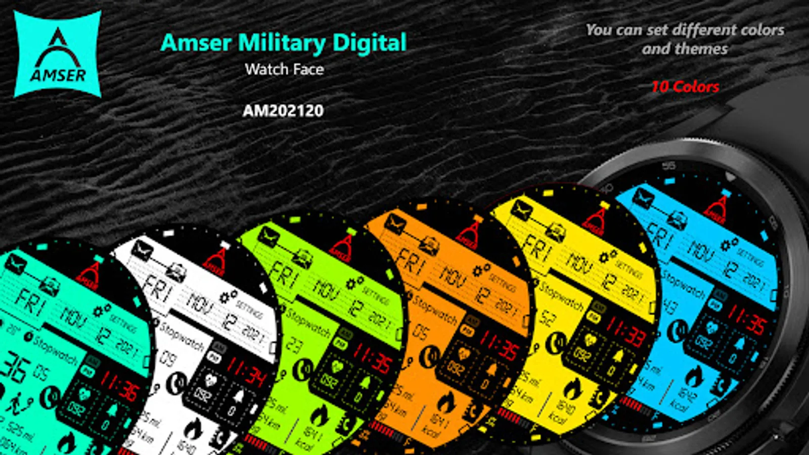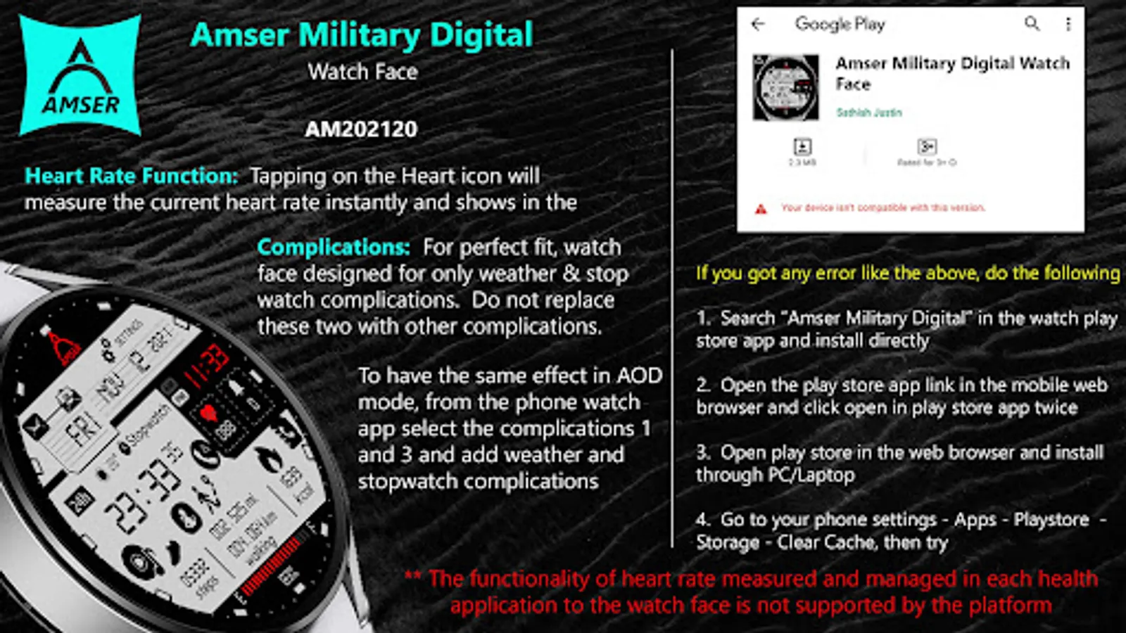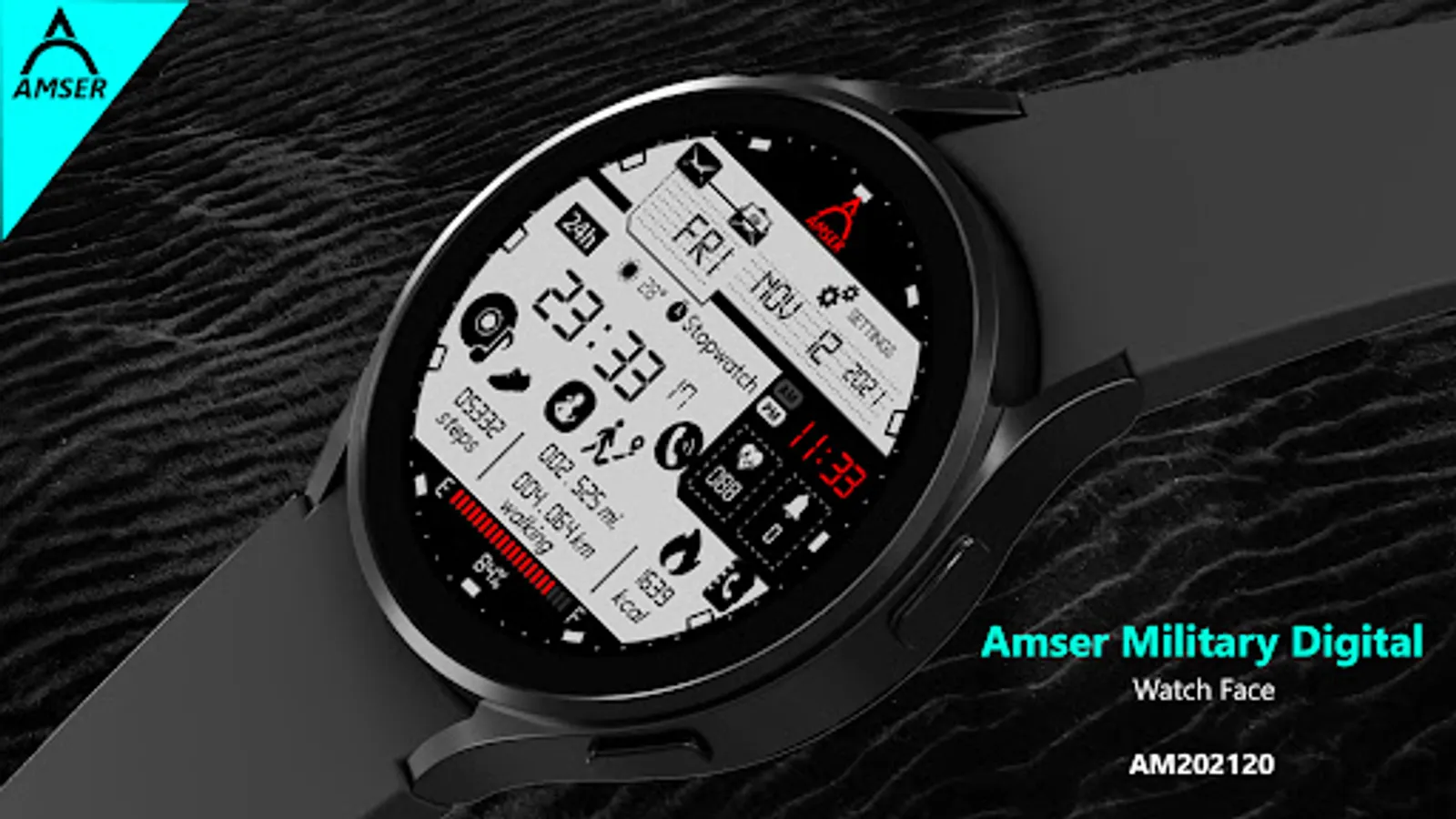 Amser Military Digital Watch Face for Wear OS which supports Samsung Galaxy Watch 4 + Watch Faces for other Wear OS device manufacturers