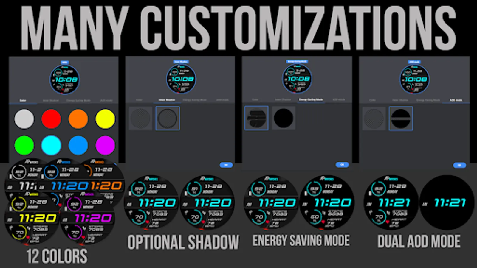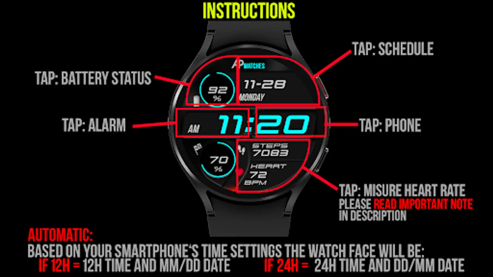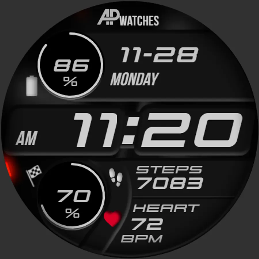 AP1172 is a great digital watch face very readable and stunning with selectable colors an aother customizations, please see pictures.