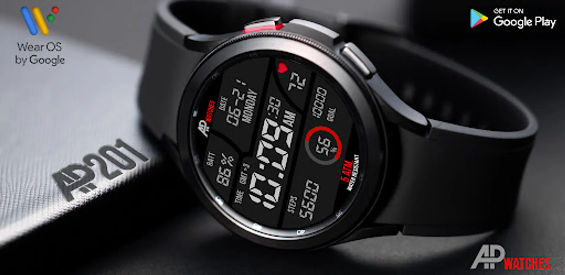 * Heart rate measurement is independent from the Wear OS heart rate application and is taken by the watch face itself. The watch face shows your heart rate at the time of measurement and does not update the Wear OS heart rate app. The heart rate measurement will be different than the measurement taken by stock Wear OS app