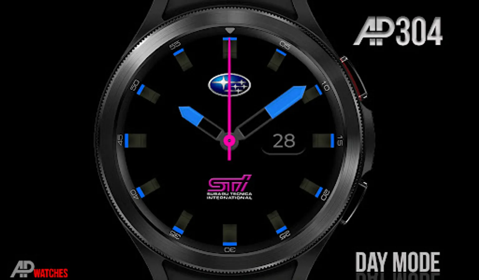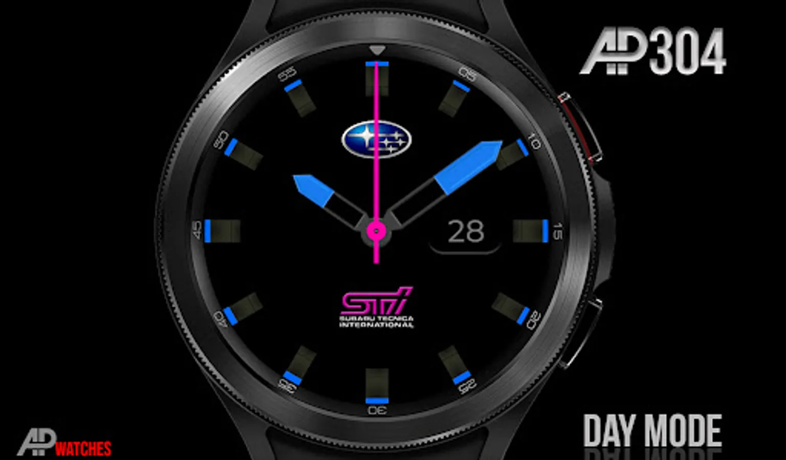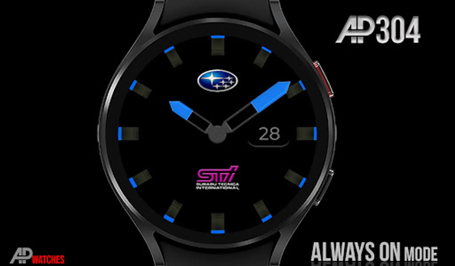 AP304 is a simply but effective beautiful Analog watch face dedicated to Subaru STI fans with dark carbon background or (tapping watch face) plain black background for low battery consumption.