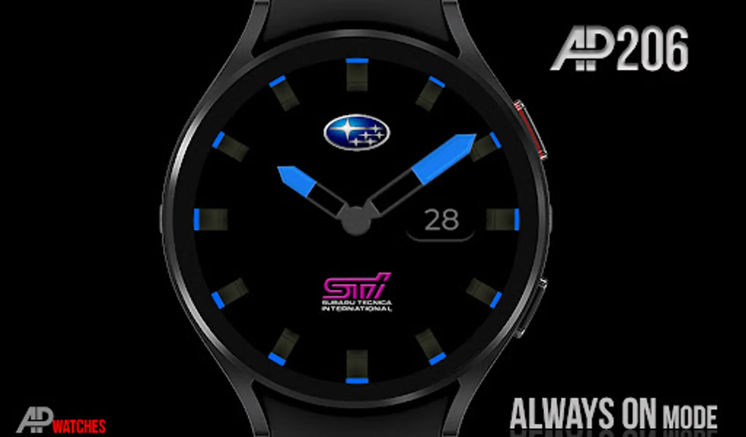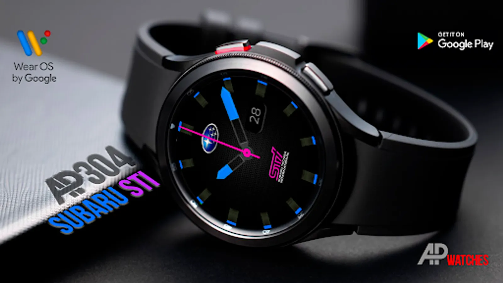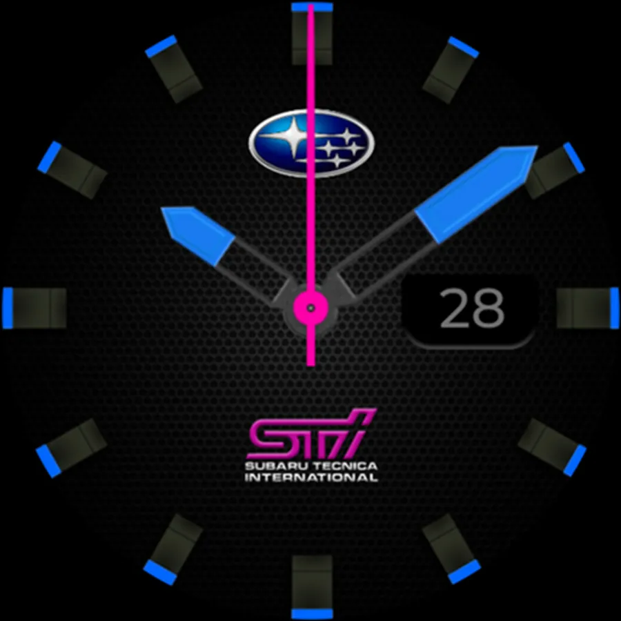 AP304 is a simply but effective beautiful Analog watch face dedicated to Subaru STI fans with dark carbon background or (tapping watch face) plain black background for low battery consumption.