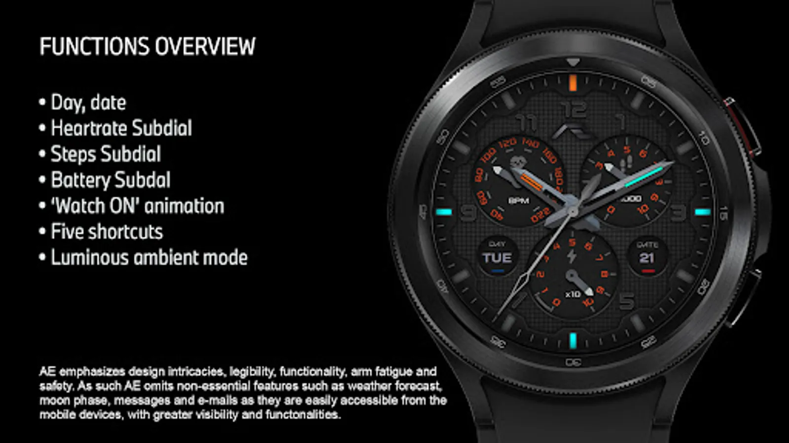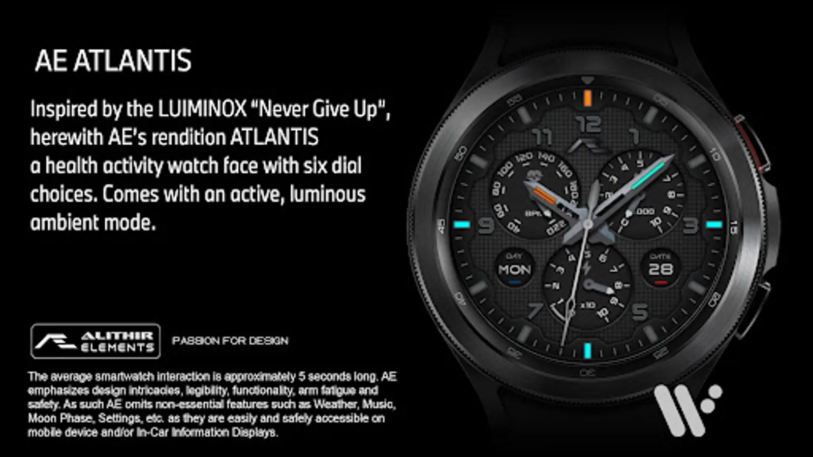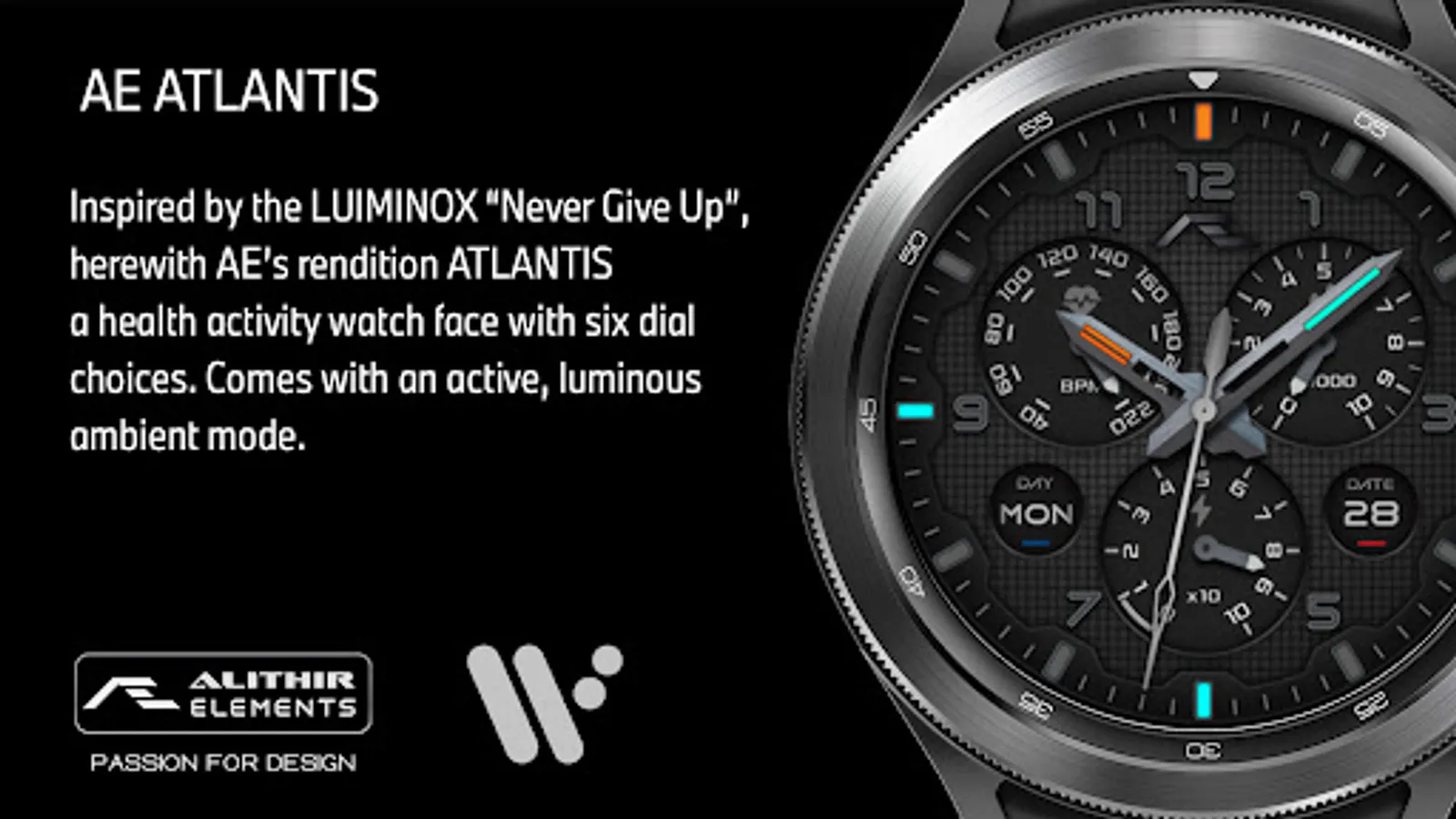 An inspired designed from the LUMINOX “Never Give Up” series. Herewith an AE rendition of a health/sports tactical styled watch face. Comes with six awesome dial style five key shortcuts and an active luminous ambient mode.
