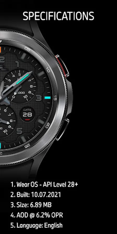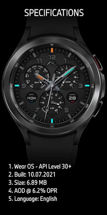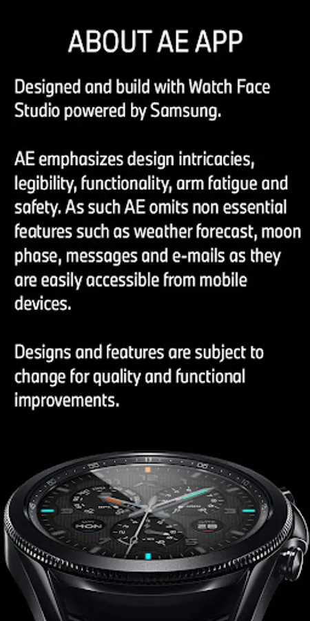 Build with Watch Face Studio powered by Samsung. The App has been tested on Samsung Watch 4 Classic and all features and functions worked as intended. The same may not apply with other Wear OS devices. Should Play Store prompts “this app is not compatible with your device”, exit and access the same via your PC web browser or from the Watch.