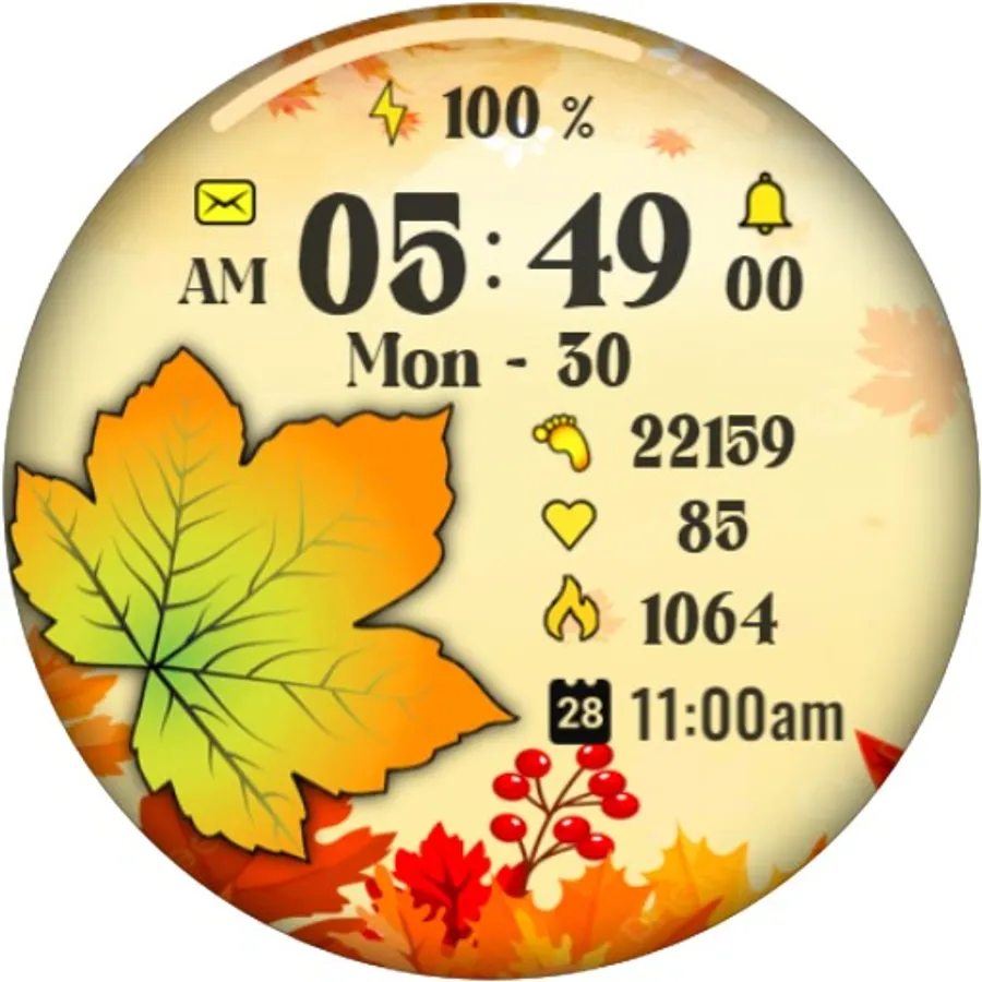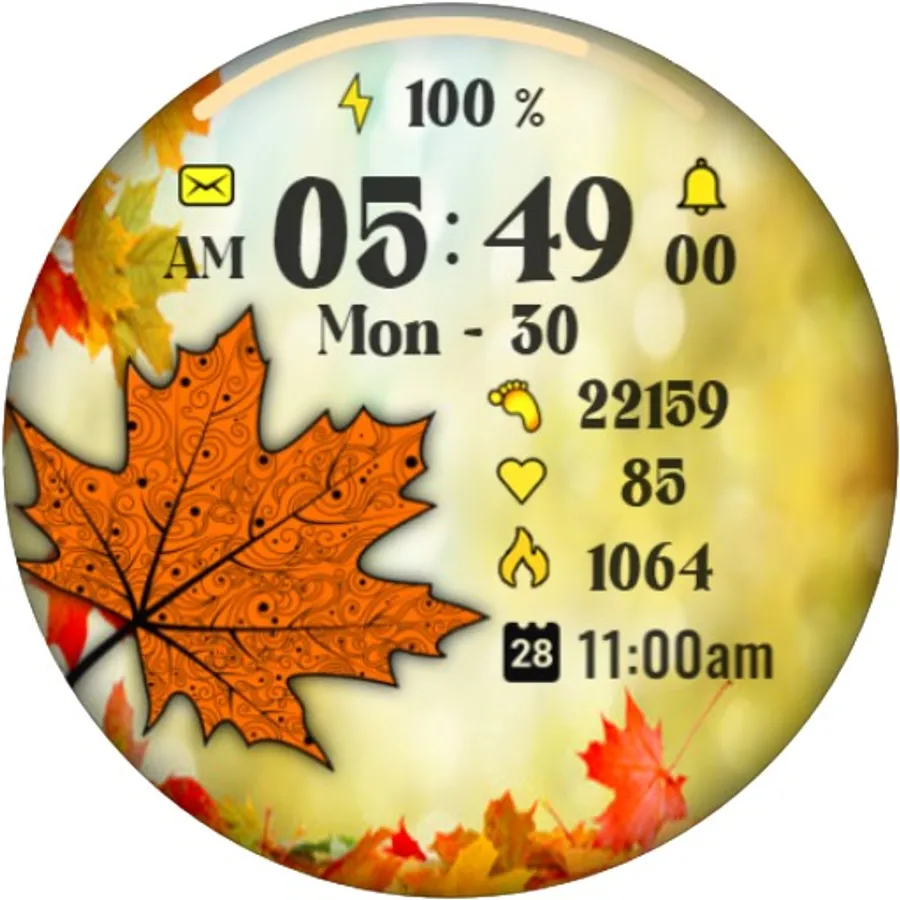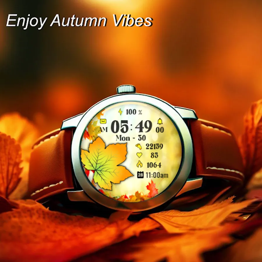 Autumn Vibes Nature Cozy leaf face Clock face will bring you perfect atmosphere of Autumn mood. You can wear this face and Feel Autumn aesthetic leaves & Beauty of Nature in Autumn.
