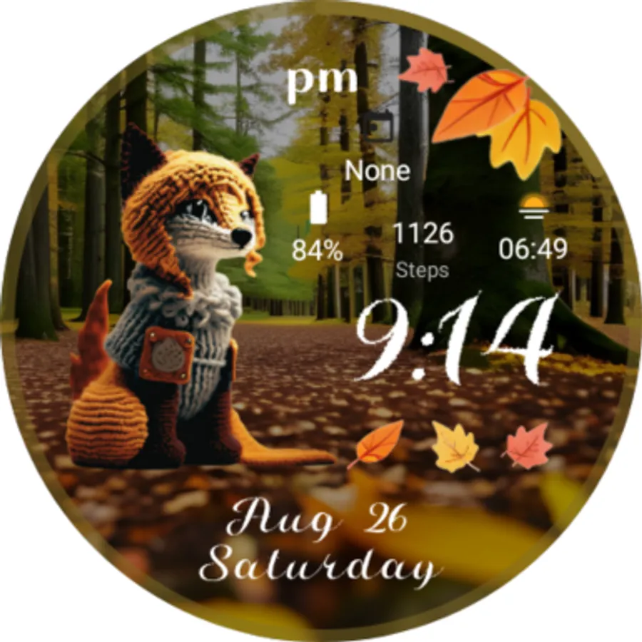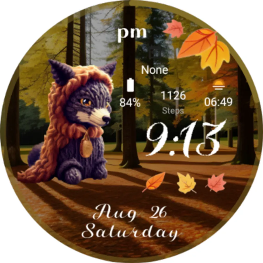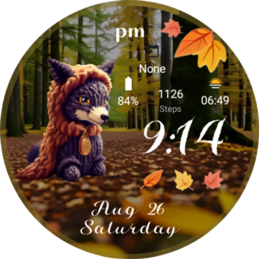 Tailor your watch face to match your style and mood. Choose from an array of backgrounds that reflect the cozy feeling of autumn. Select your favorite animal companion to accompany you throughout your day. Express yourself further by picking font colors that resonate with your personality.