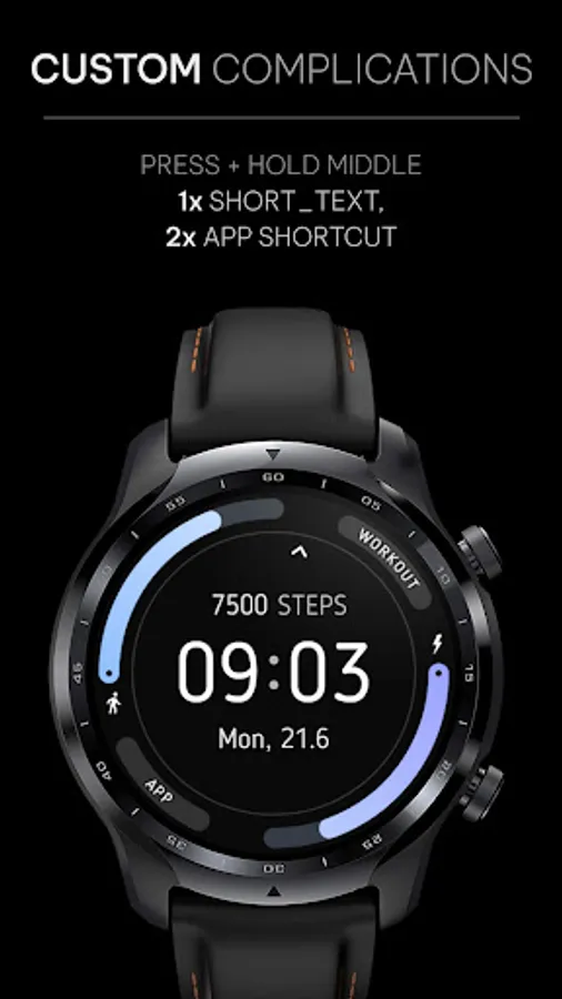 • 3x custom complication (SHORT_TEXT + LONG_TEXT)