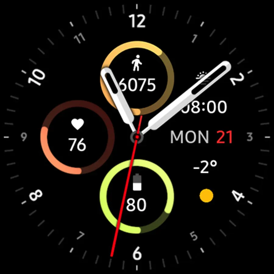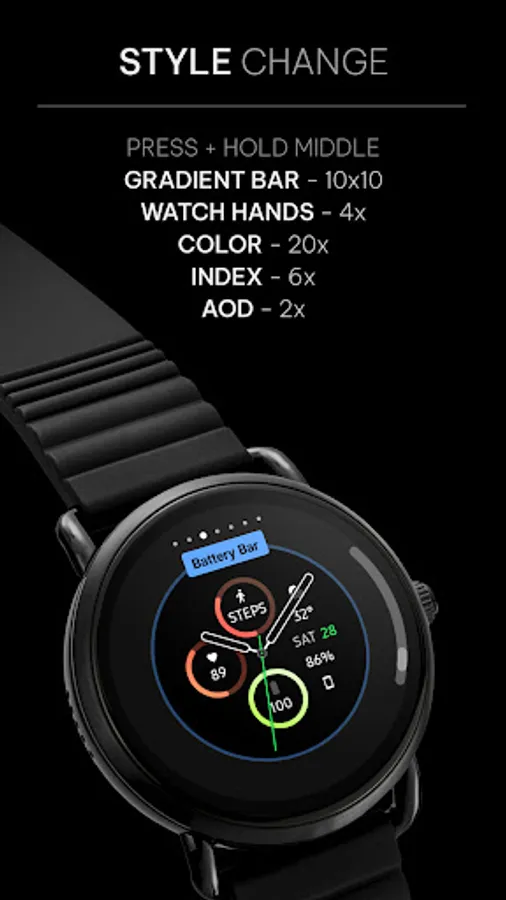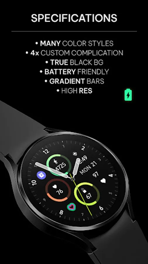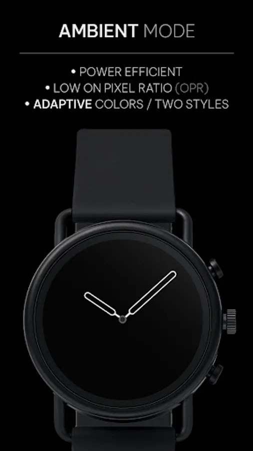 • simple ambient mode with low OPR & adaptive color & watch hands