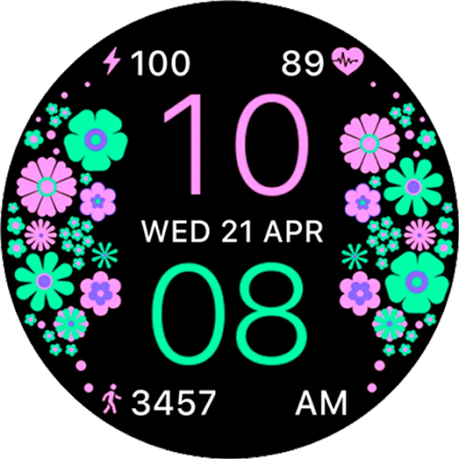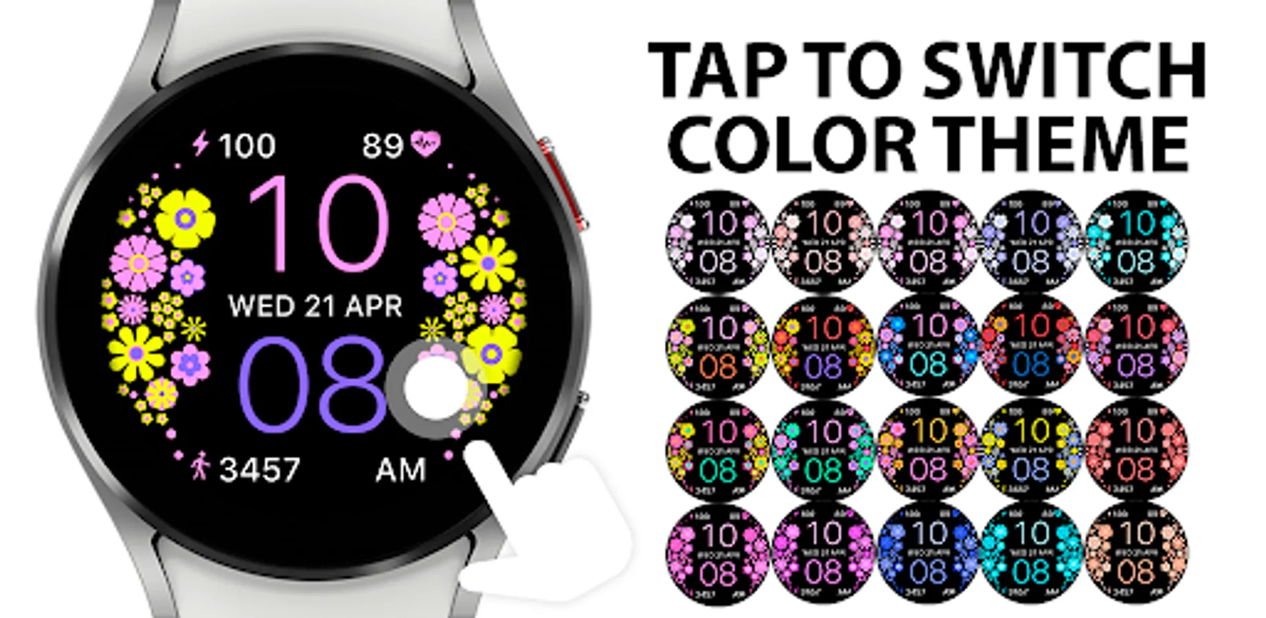 The device that knows you best. That is why I have developed a watch face that will be a great companion on the road to success. Track your fitness progress with a pedometer. New day new color of the dial. The color changes when you touch the screen.