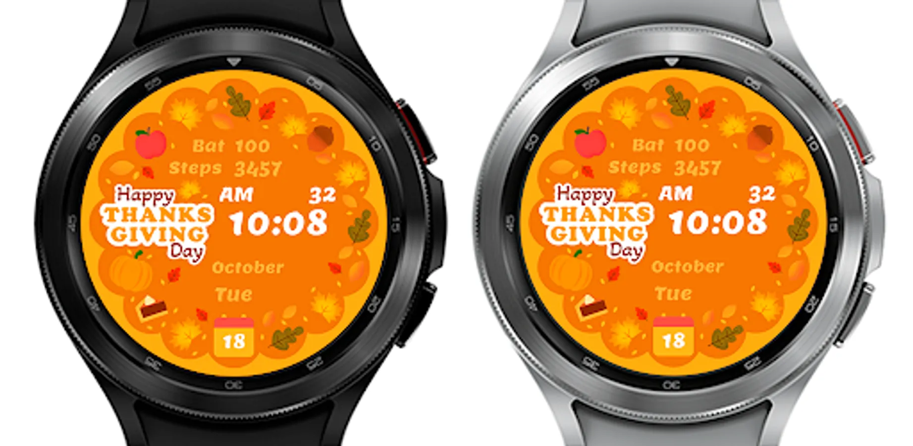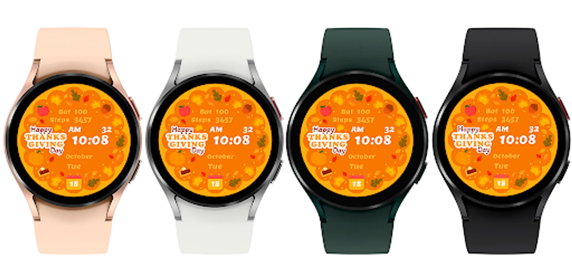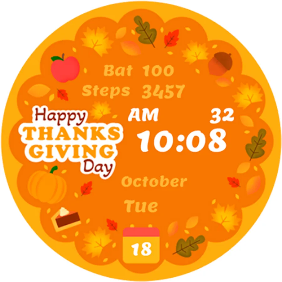Digital time (12/24 hour clock), Watch battery level, Date, AOD, Pedometer, Alarm, Calendar