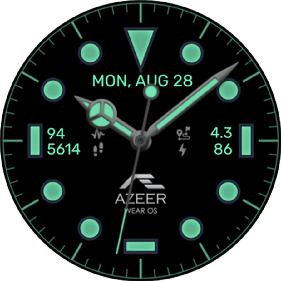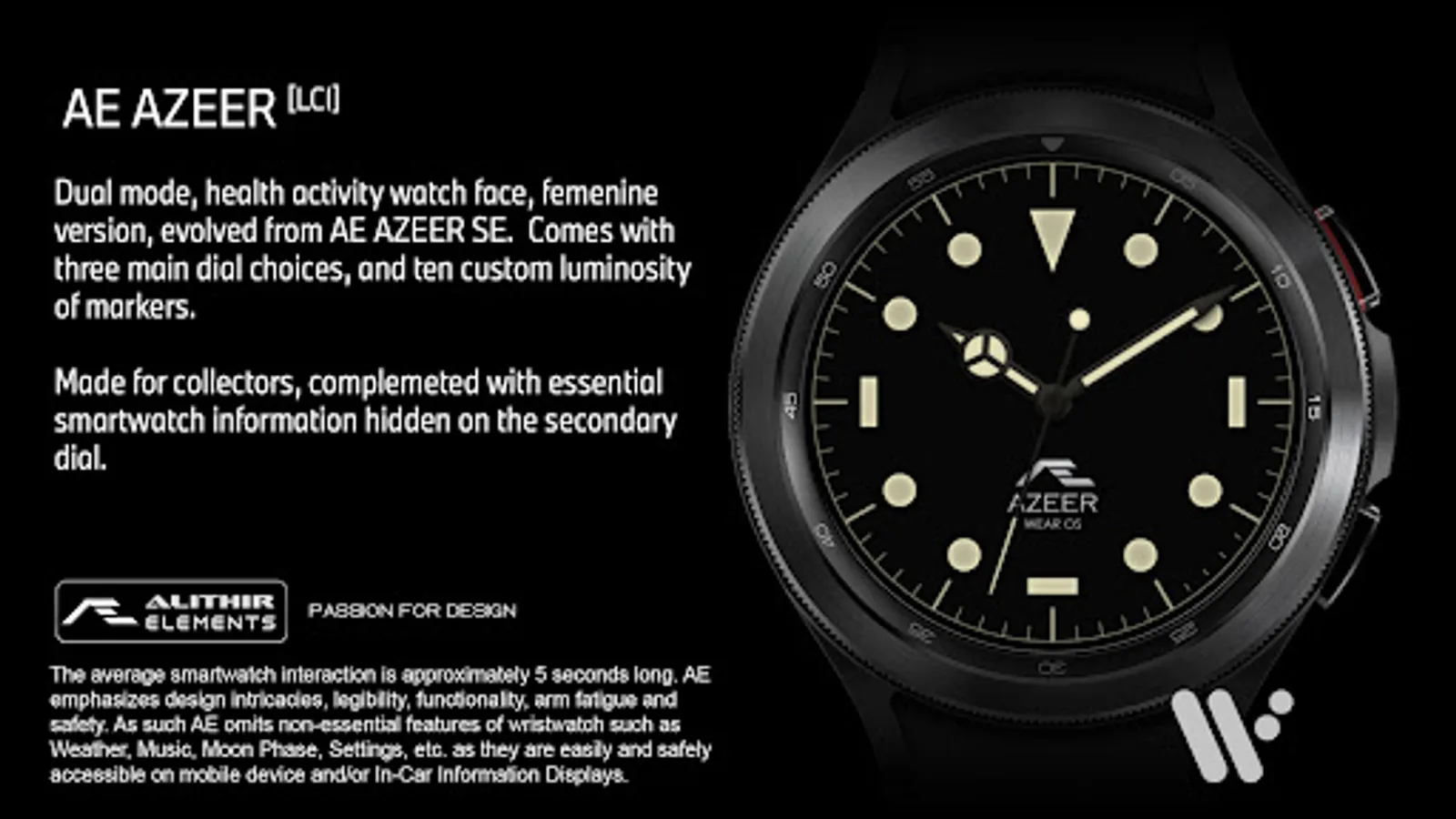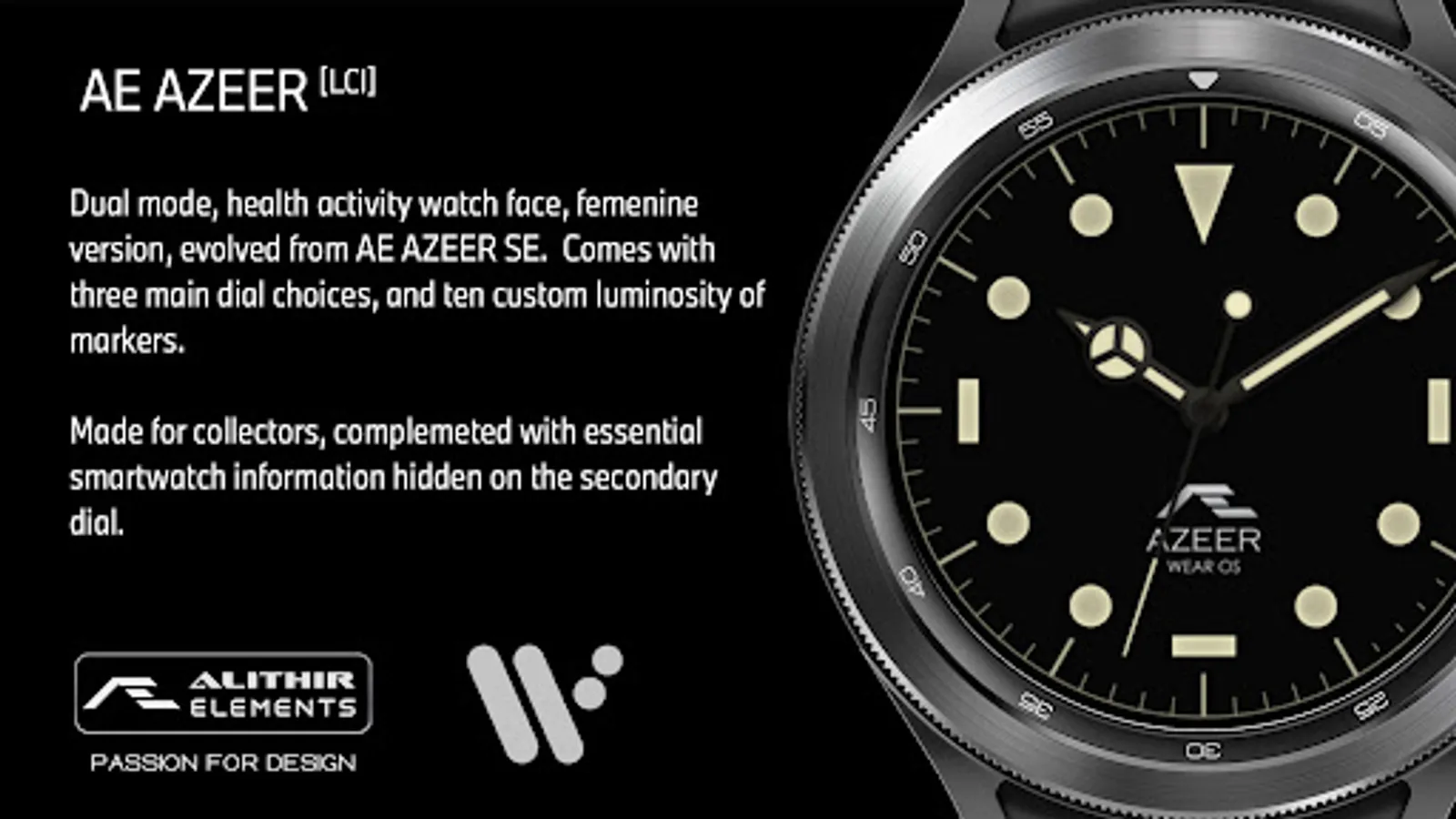 Dual mode, health activity watch face. Evolved from AE AZEER [SE], an inspired rendition from master-crafted watches.