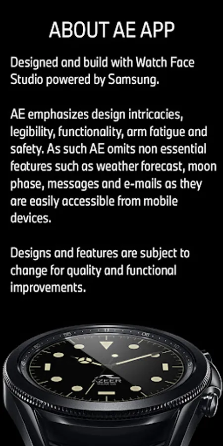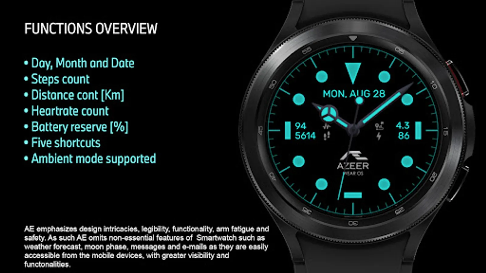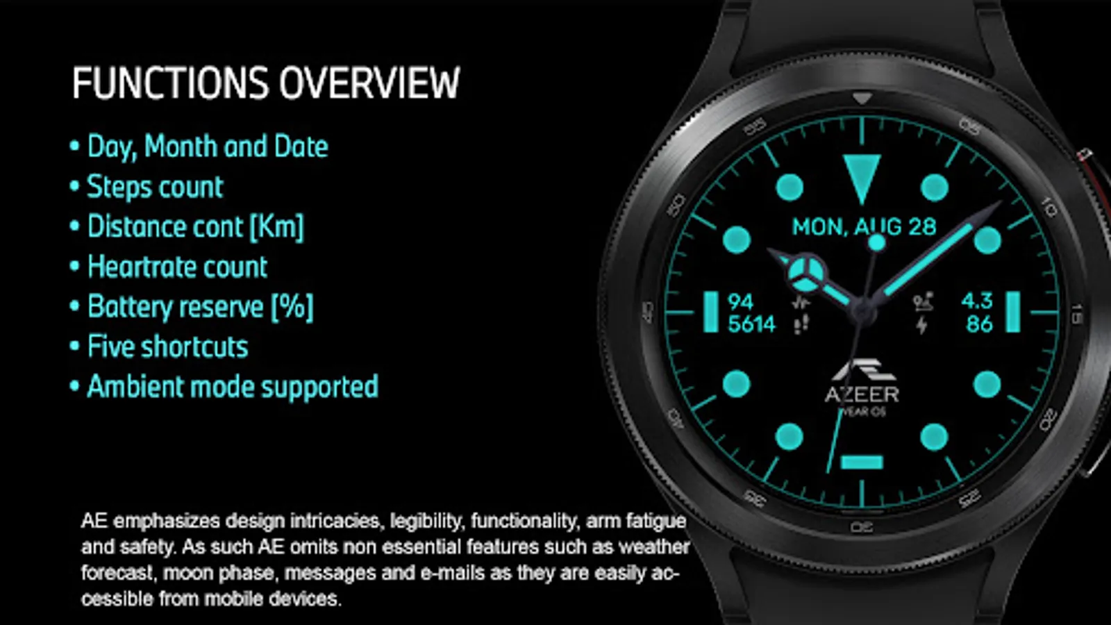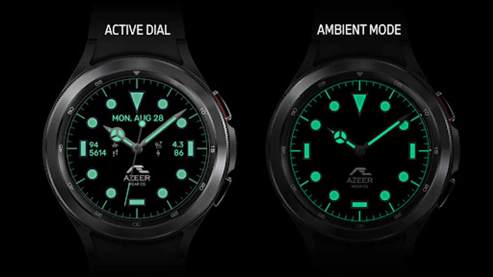 Dual mode, health activity watch face. Evolved from AE AZEER [SE], an inspired rendition from master-crafted watches.