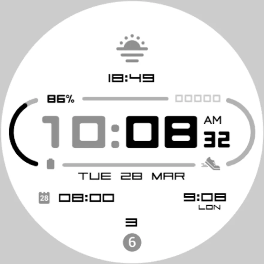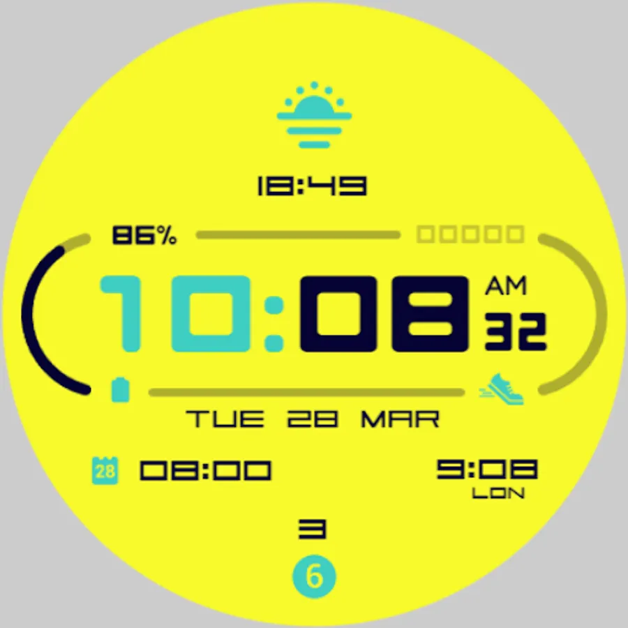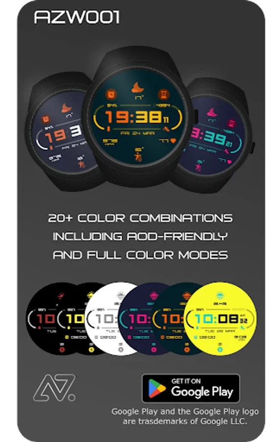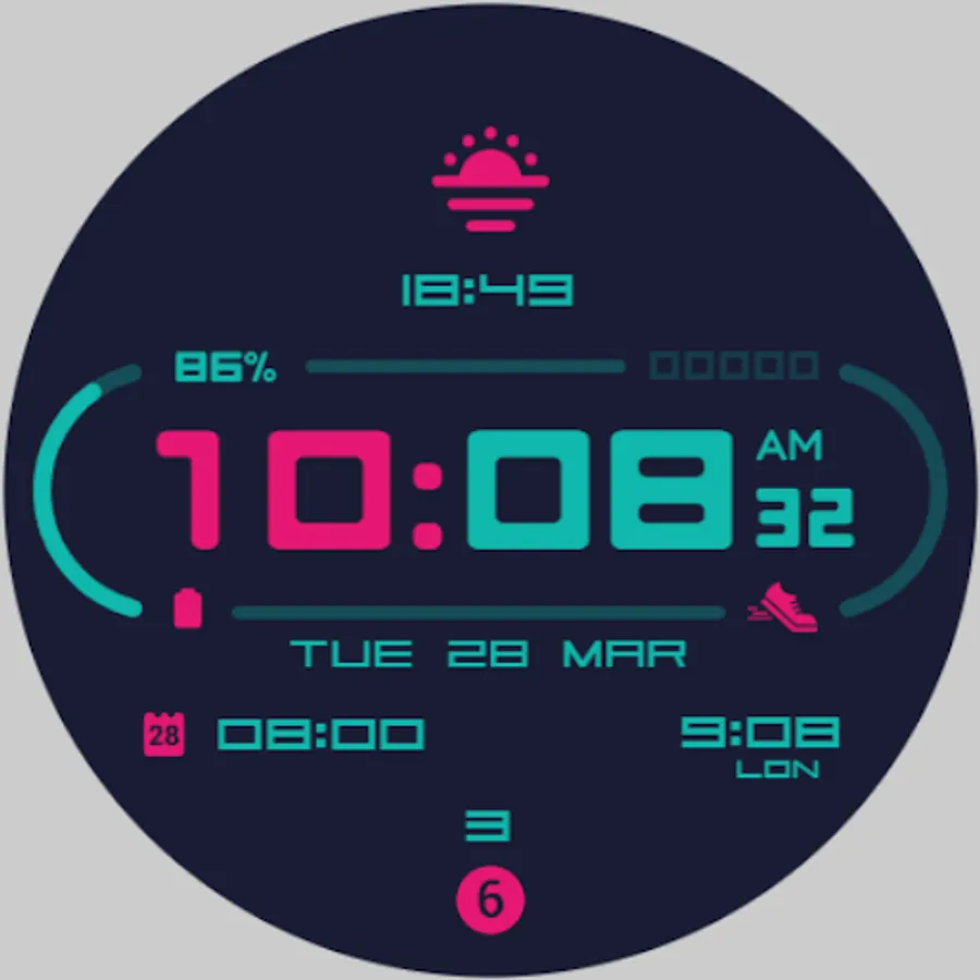 Enjoy this newly-created, customizable watch face with selection of OLED-friendly color schemes as well as full color combinations.