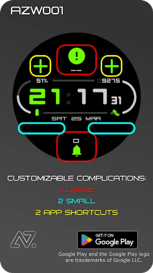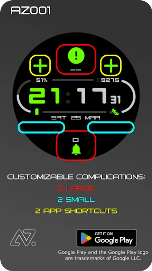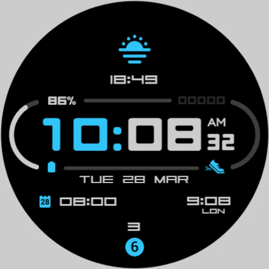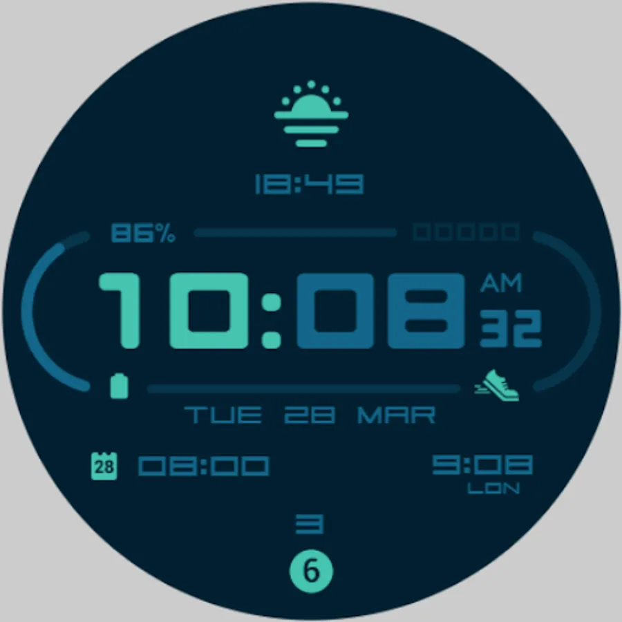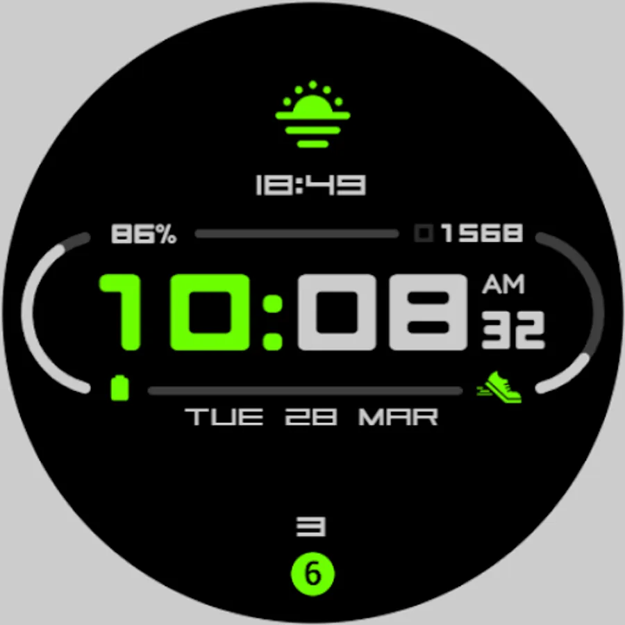 Enjoy this newly-created, customizable watch face with selection of OLED-friendly color schemes as well as full color combinations.