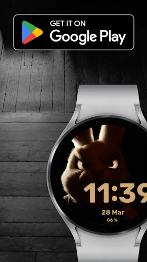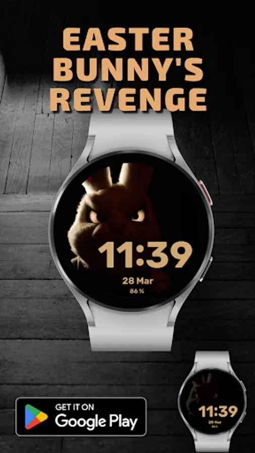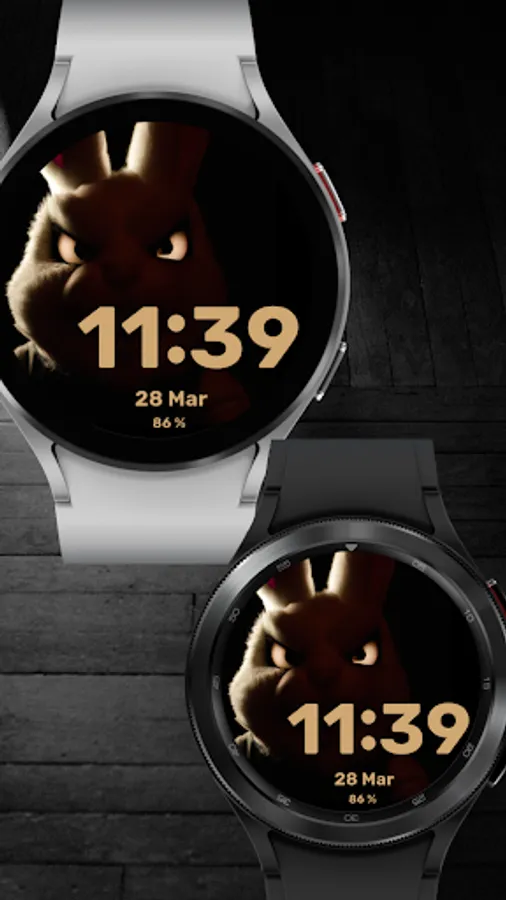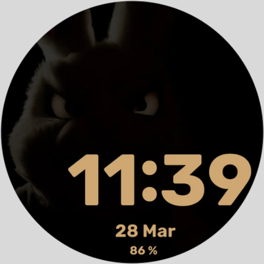 A playful spin on the Easter Bunny with a simple time, date and battery life %.