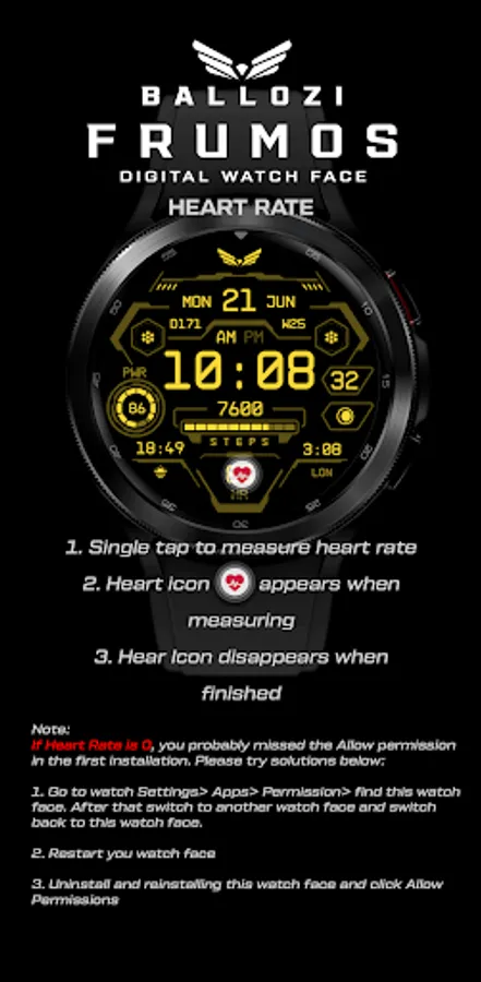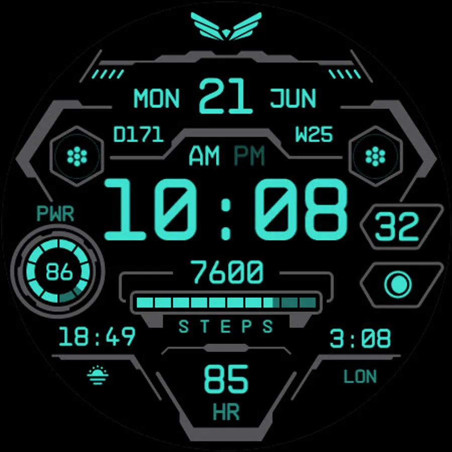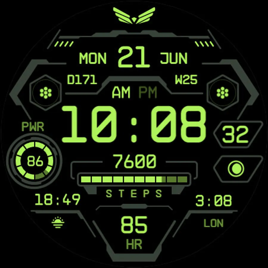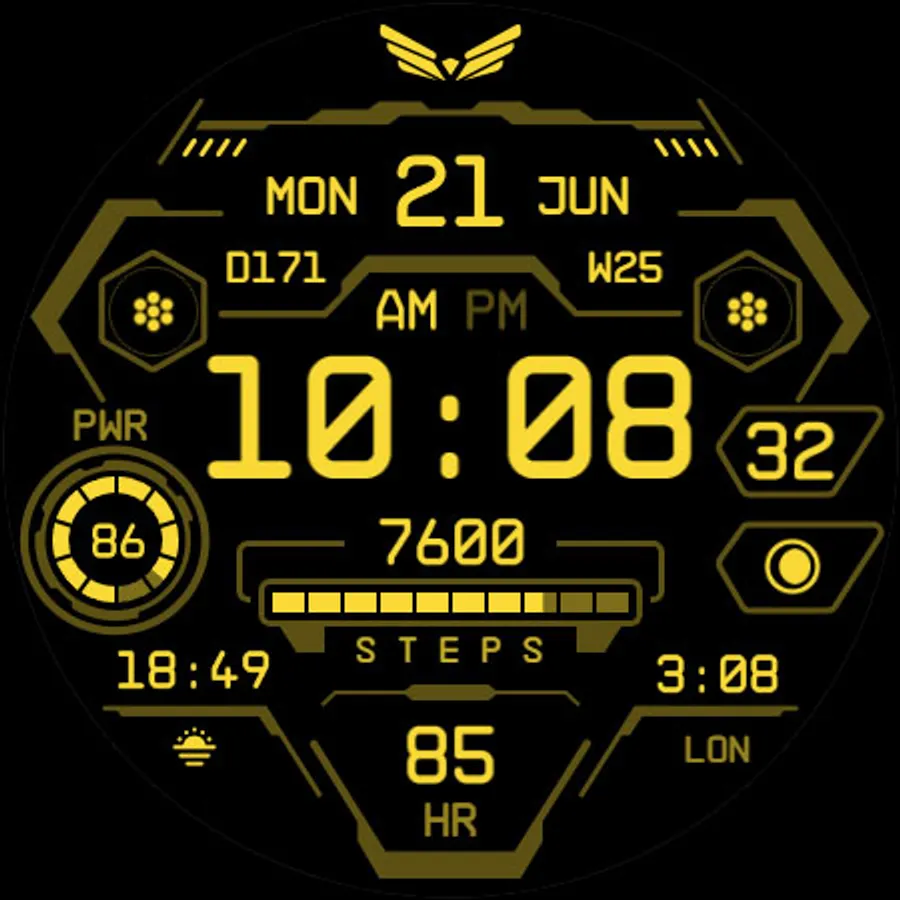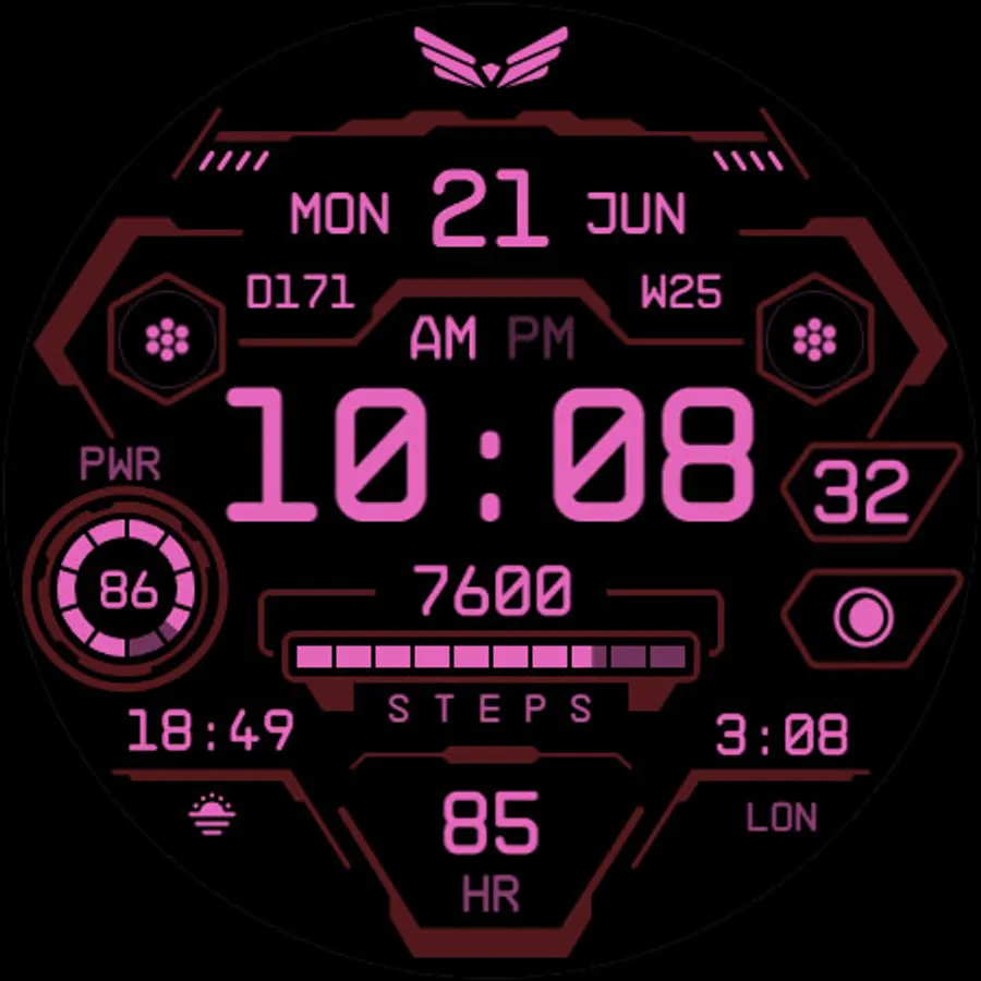 BALLOZI FRUMOS is a modern futuristic HUD inspired watch face for Wear OS from Ballozi. Works great on round smartwatches but not suitable for rectangular and square watches.