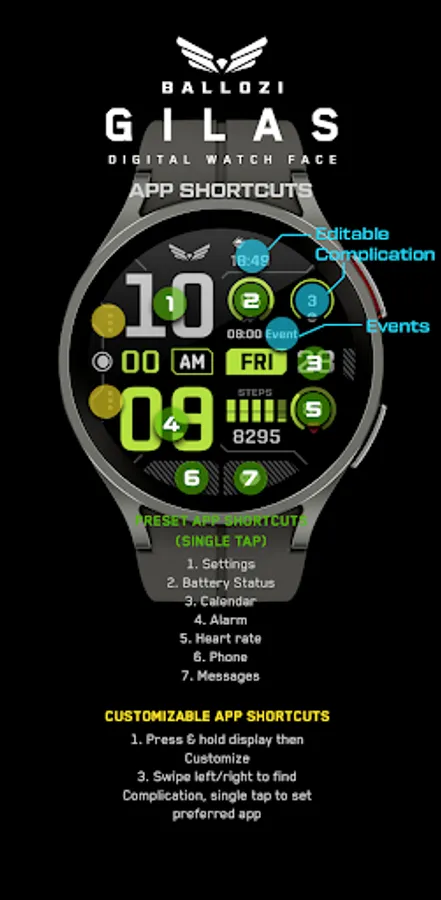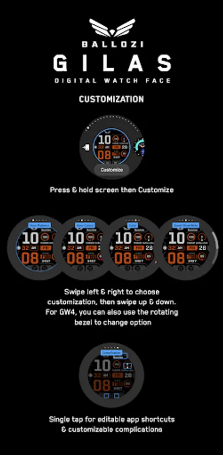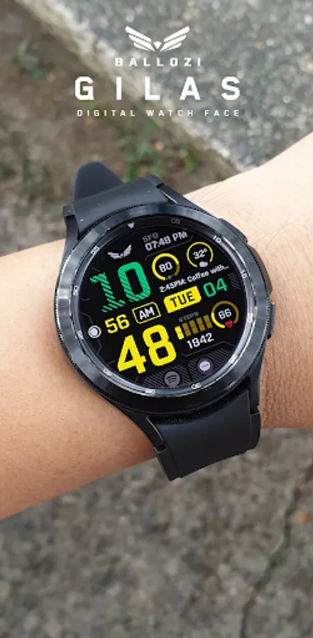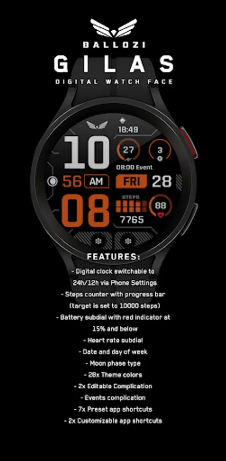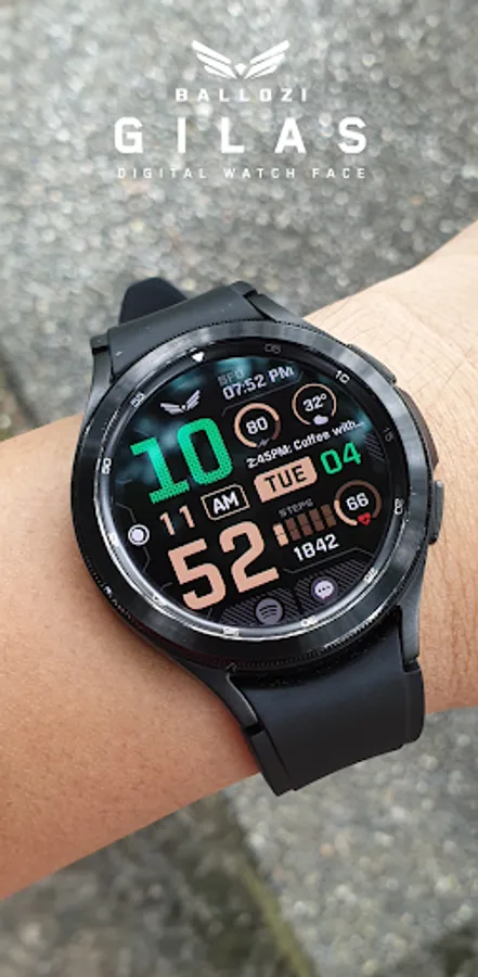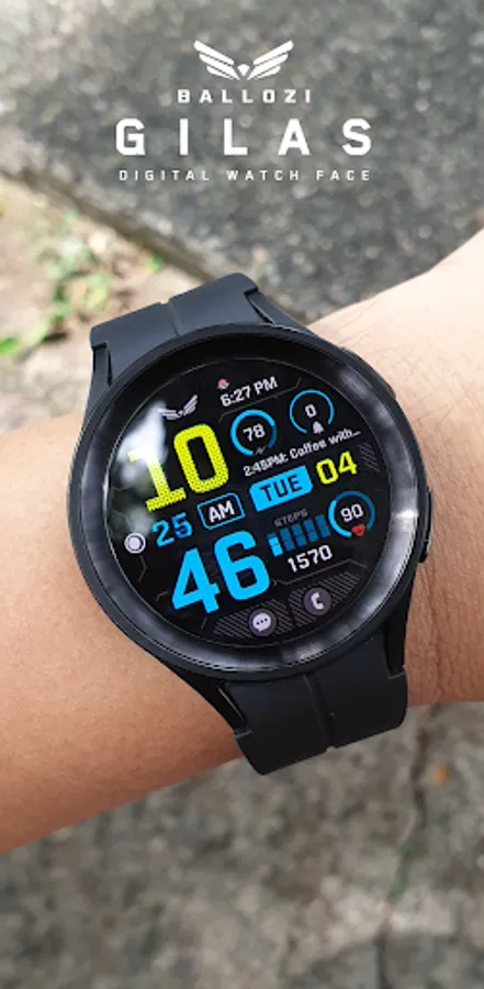 BALLOZI Gilas is a sporty bold digital watch face for Wear OS. I added more customization to choose from