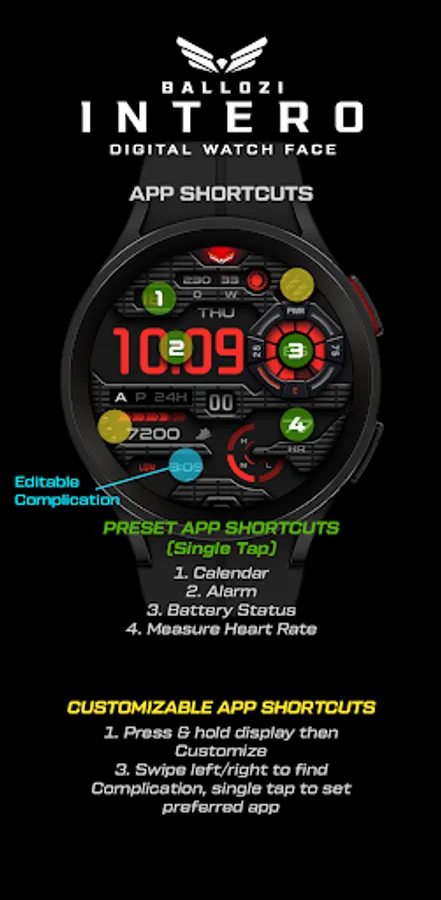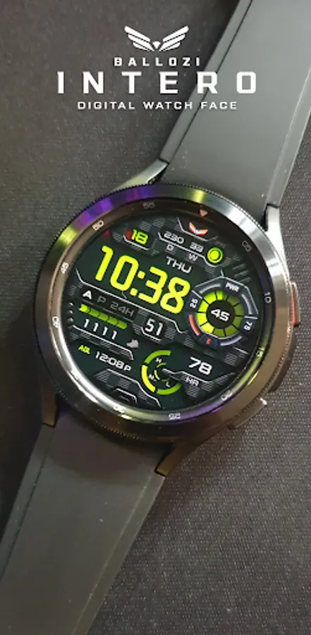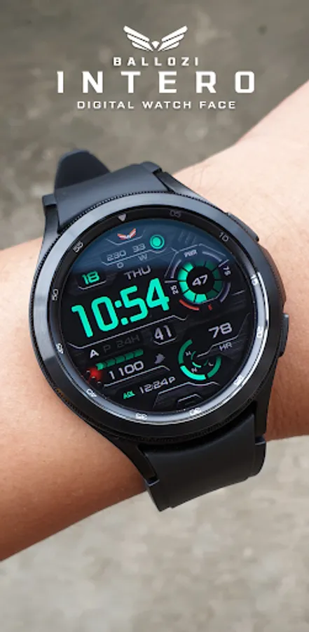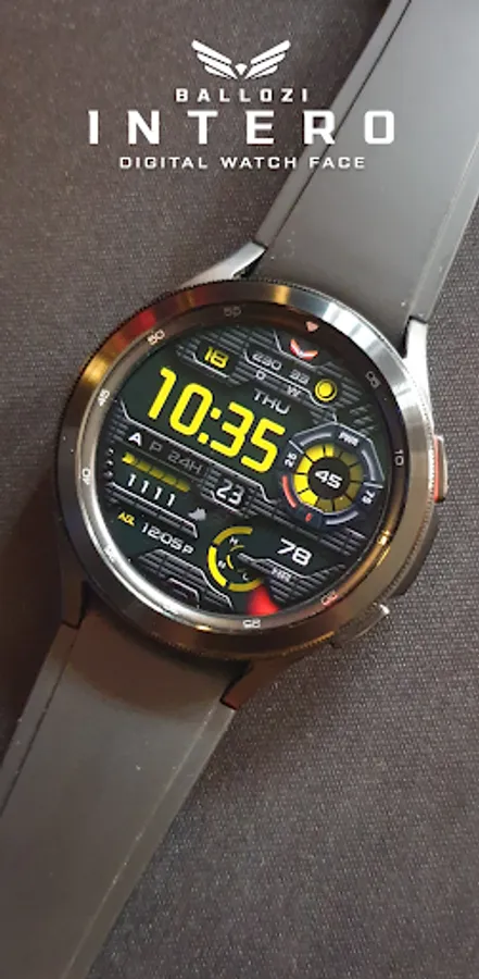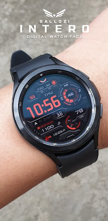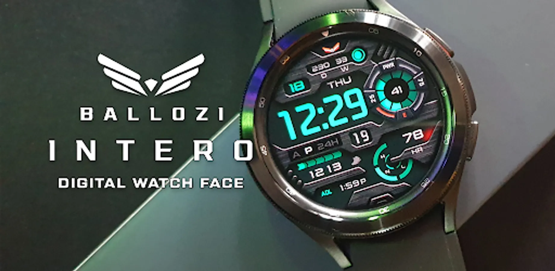 BALLOZI INTERO is a futuristic digital watch face for Wear OS from Ballozi.