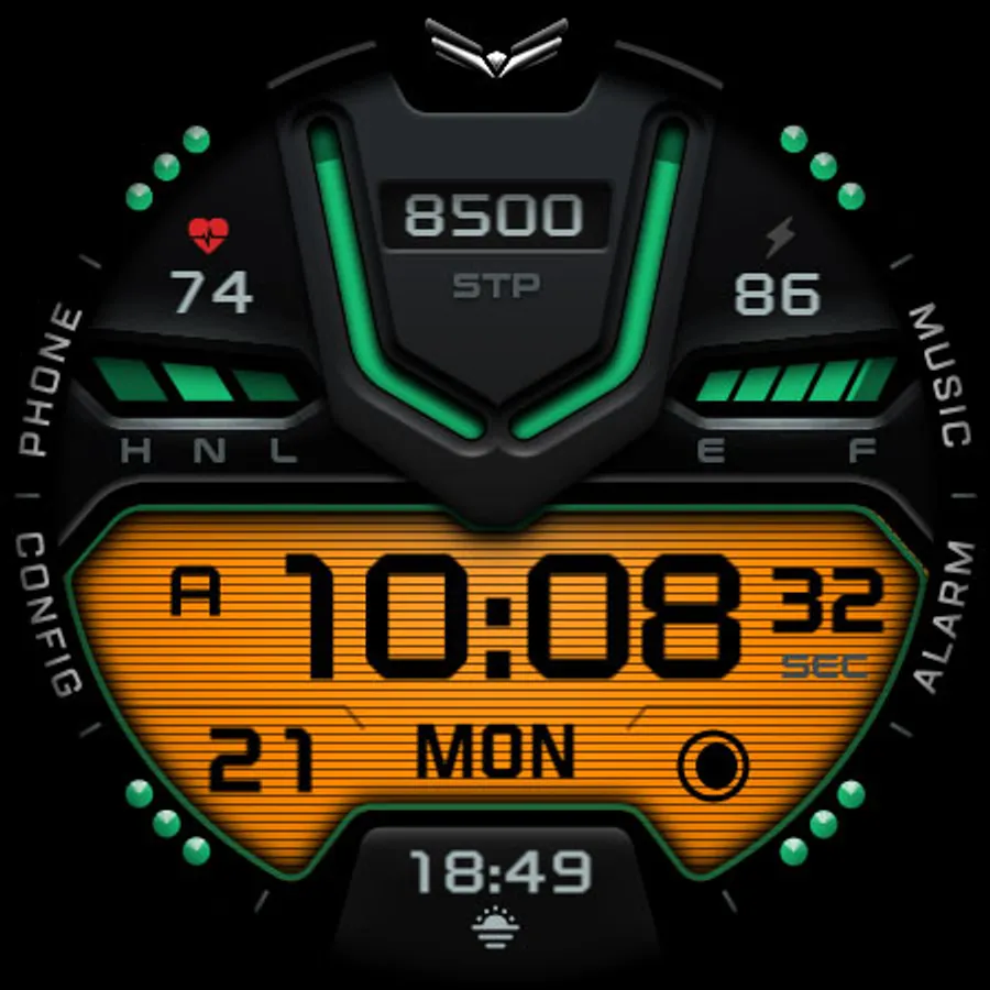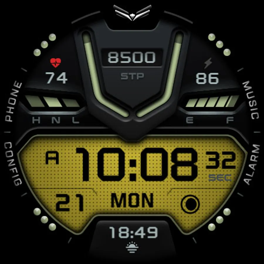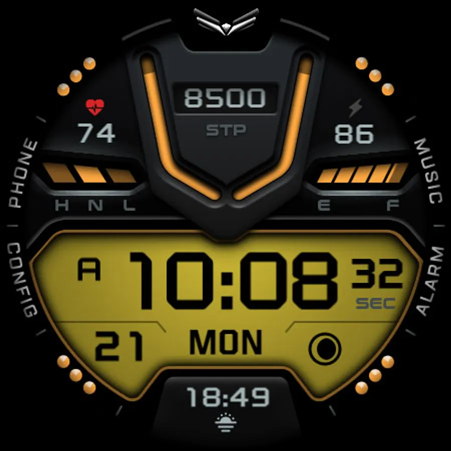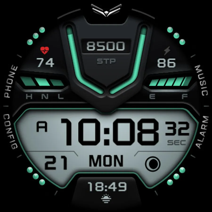 BALLOZI SCIO a modern clean futuristic watch face for Wear OS with a standard LCD colors. Works great on round smartwatches but not suitable for rectangular and square watches.