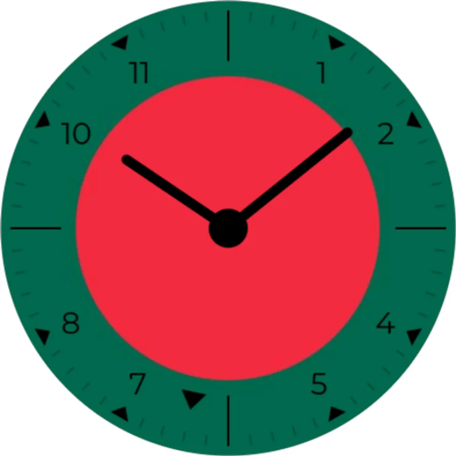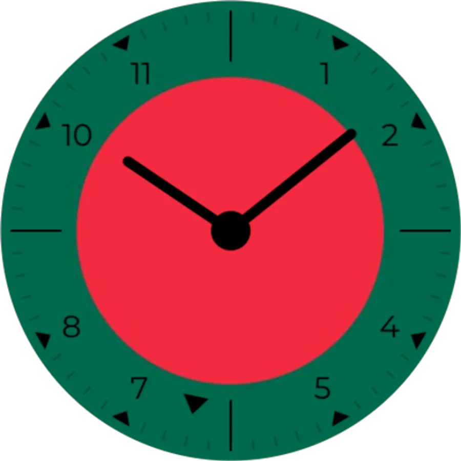 Analog watch face with Bangladesh flag in background. Show the pride in your nation with a sleak, modern watch face with your countries national flag. Always on display simple white on black for longer battery life.