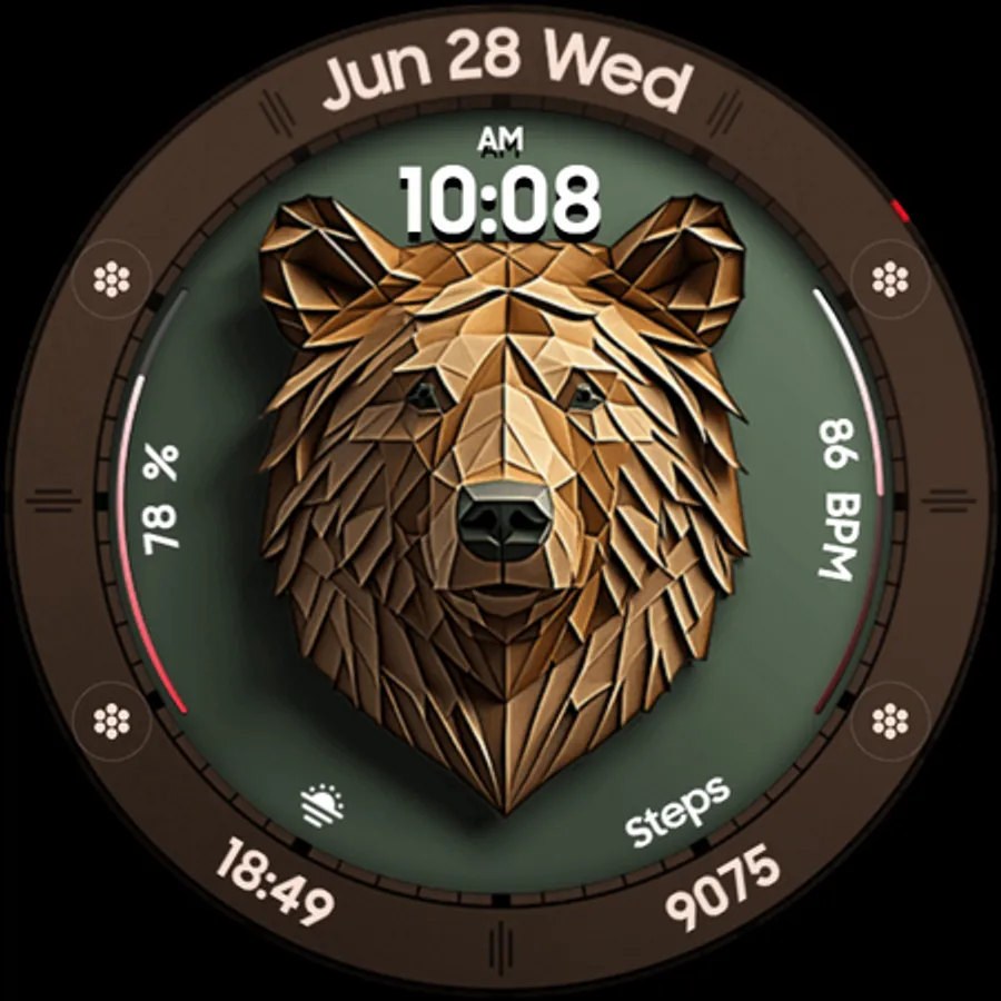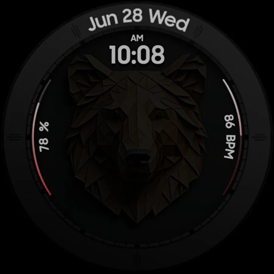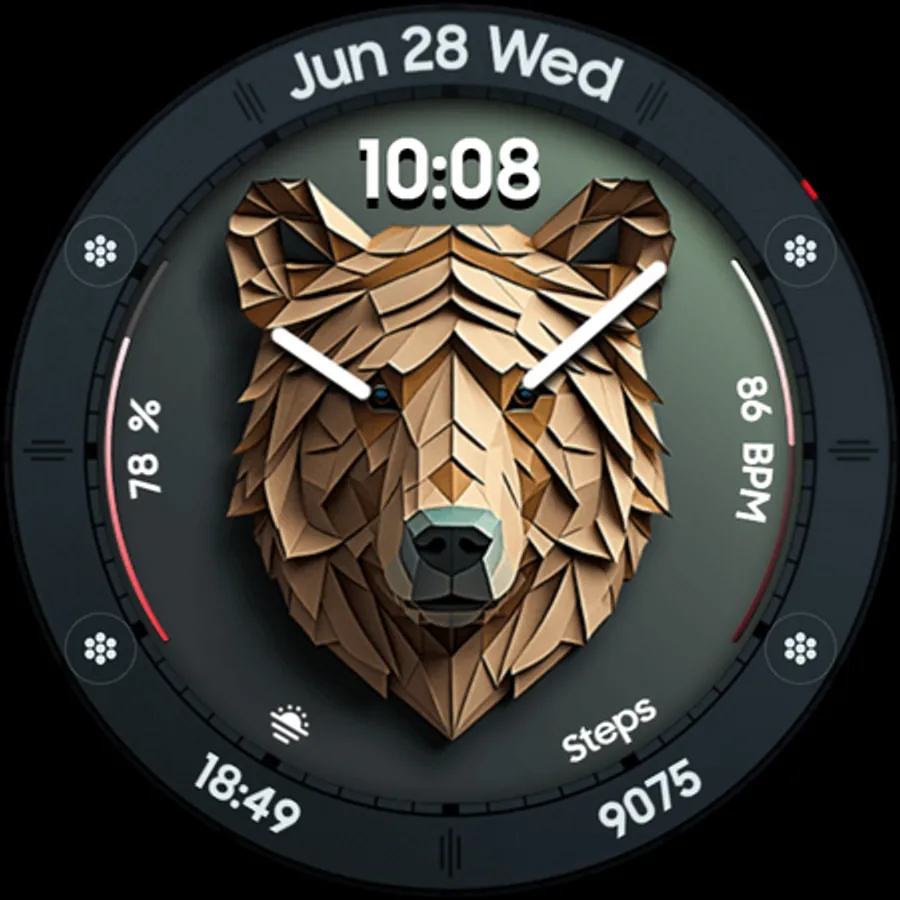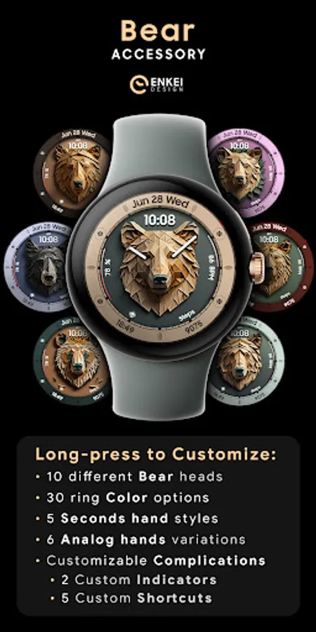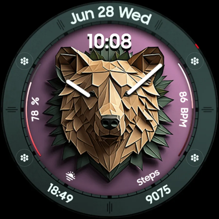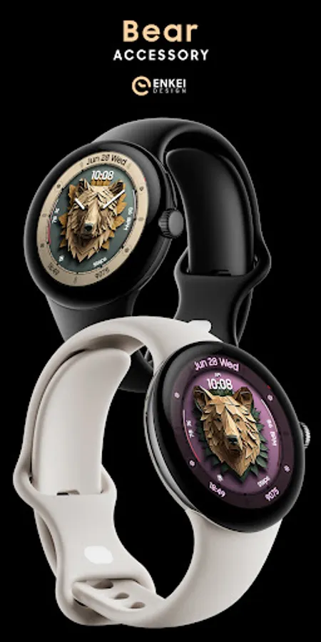 Bear Accessory is a unique & quirky watch face with a stylized bear head, and tons of customization options!