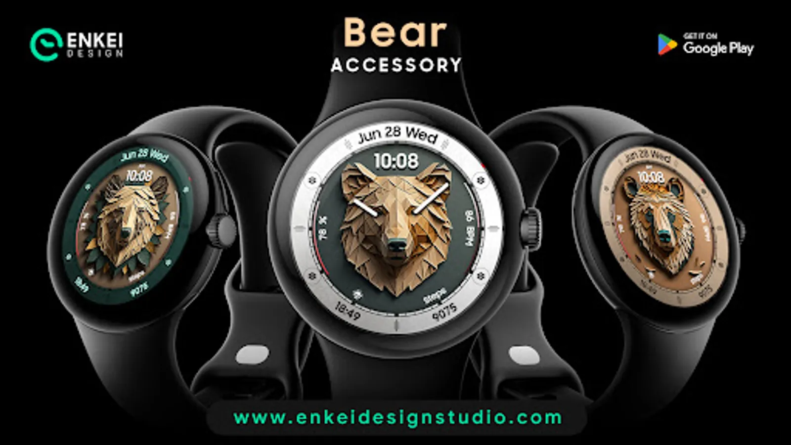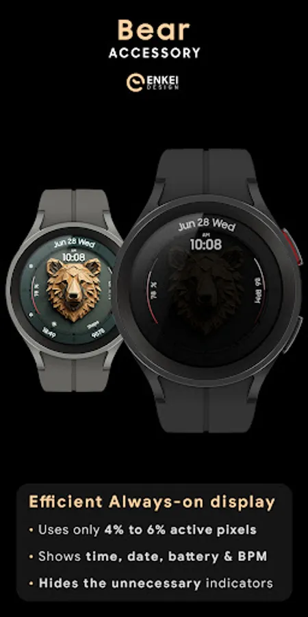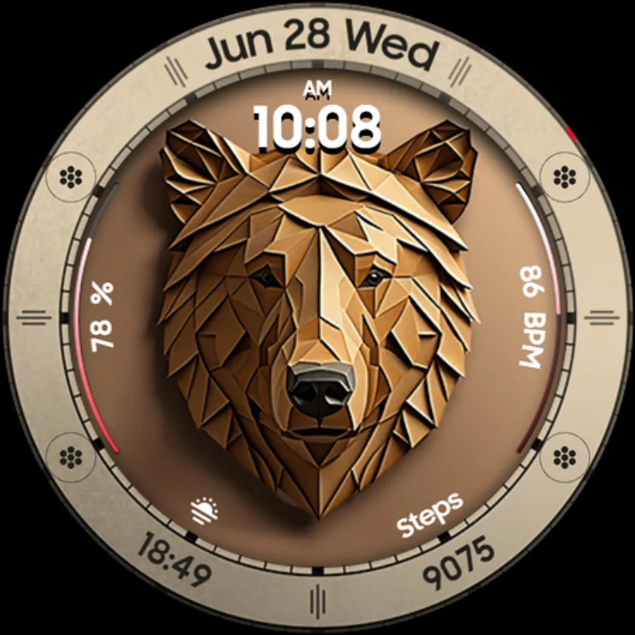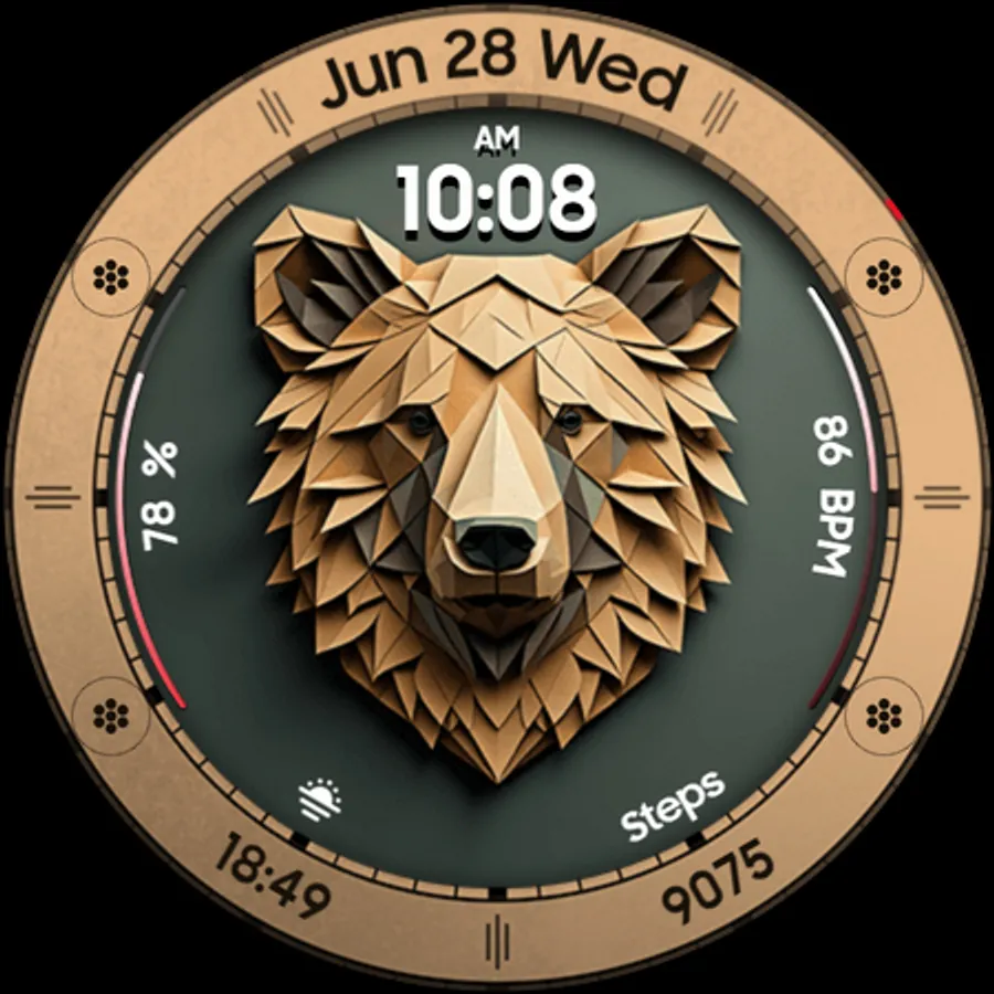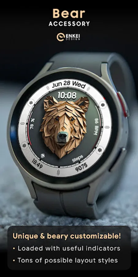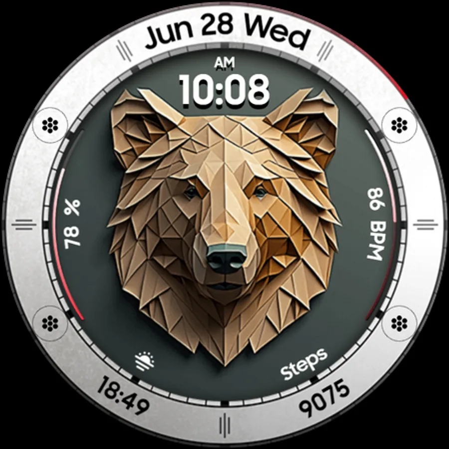 Bear Accessory is a unique & quirky watch face with a stylized bear head, and tons of customization options!