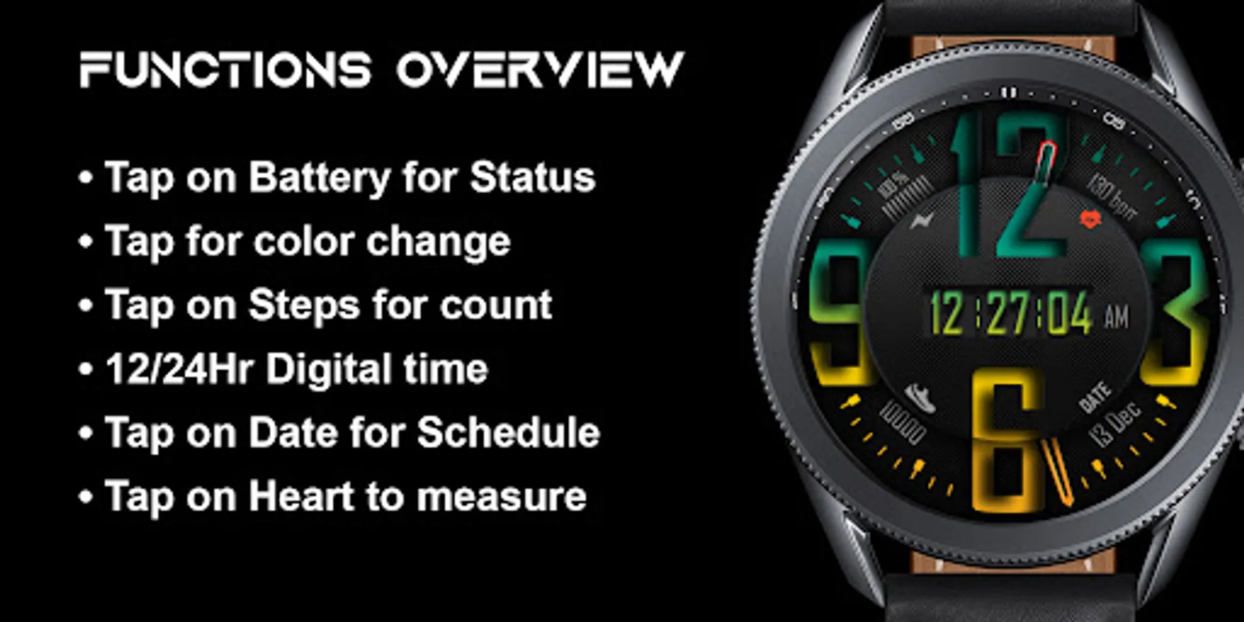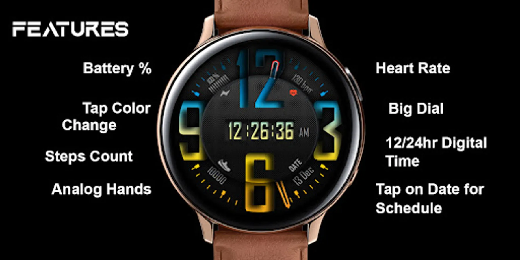 Unique and big digit style. Special designed for Galaxy Watch and other WearOS watch with minimum API 28+.