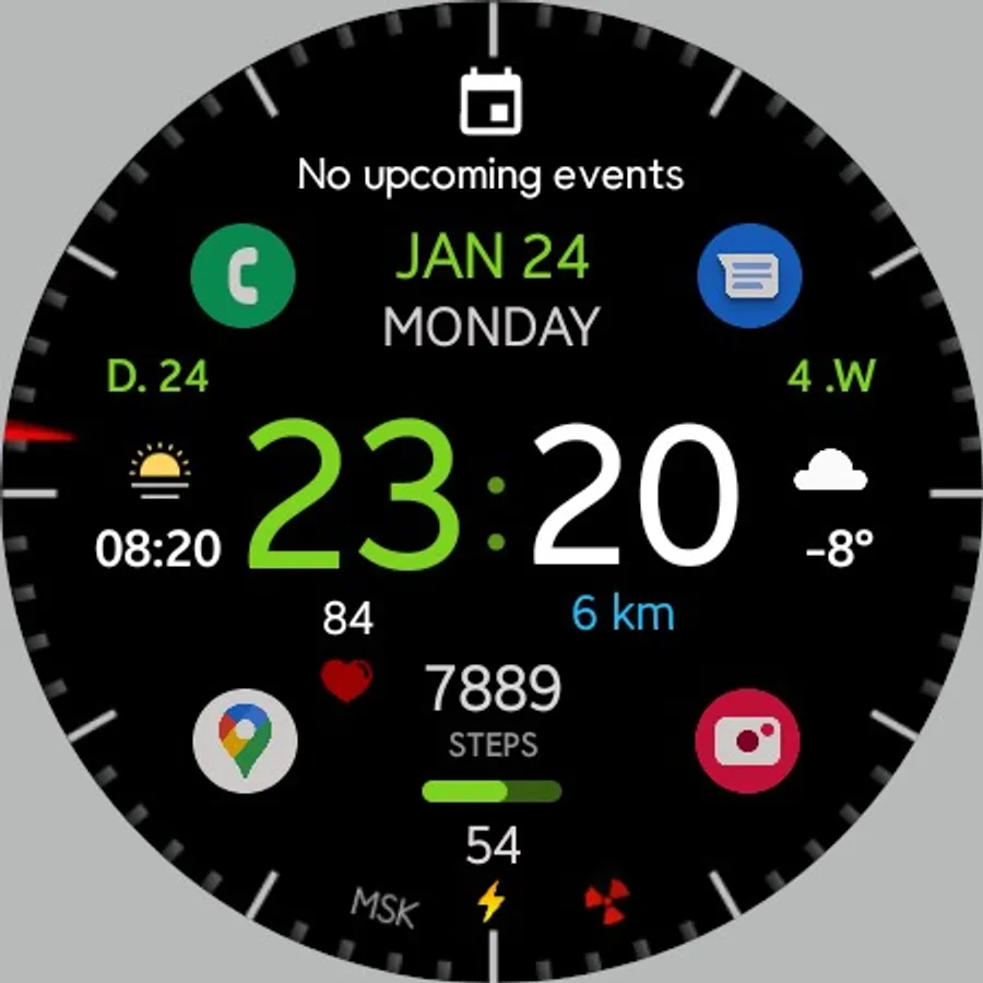 This watch face supports all Wear OS devices with API level 28+ such as Samsung Galaxy Watch 4, Galaxy Watch 5, Pixel Watch, etc.