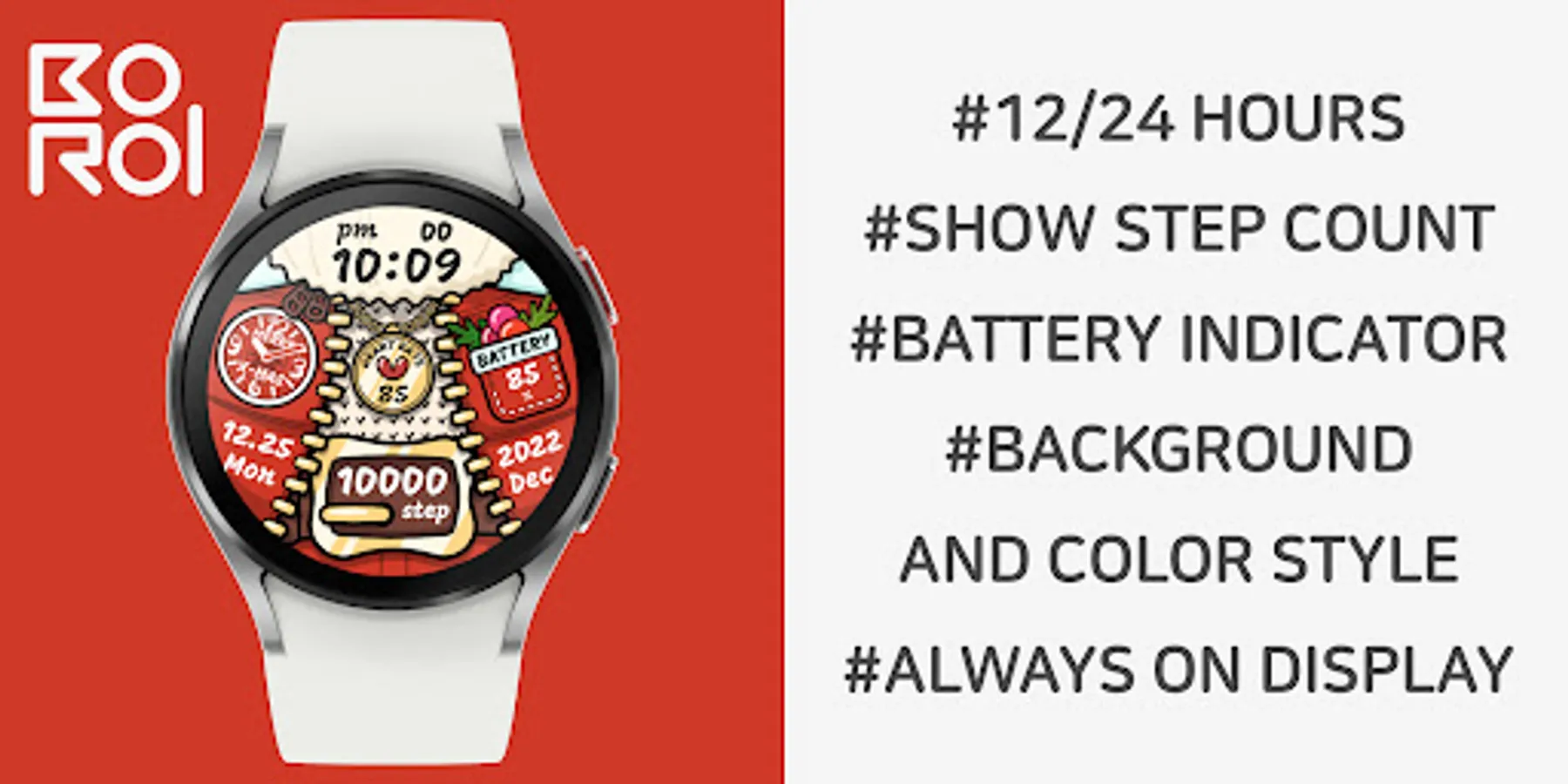 12/24 hour changeable. Changed according to system settings. Displays AM and PM, step count, remaining battery percentage, date and day.
