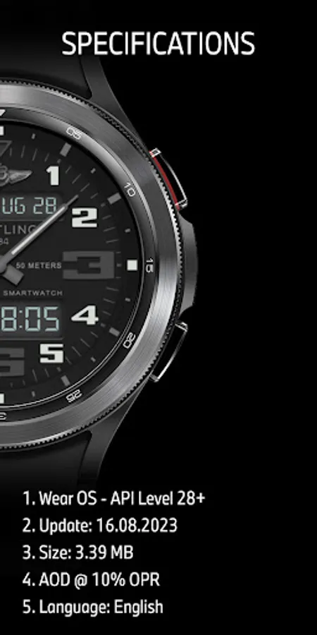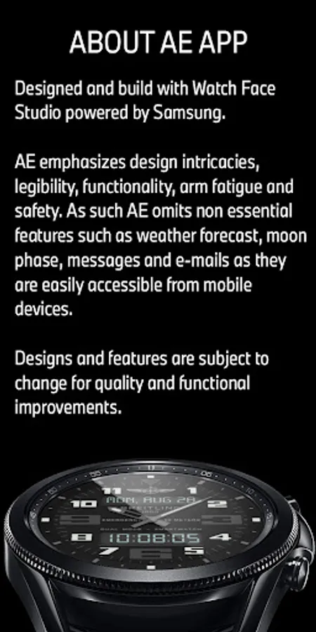 Build with Watch Face Studio powered by Samsung. Tested on Samsung Watch 4 Classic, all features, and functions worked as intended. The same may not apply to other Wear OS watches.