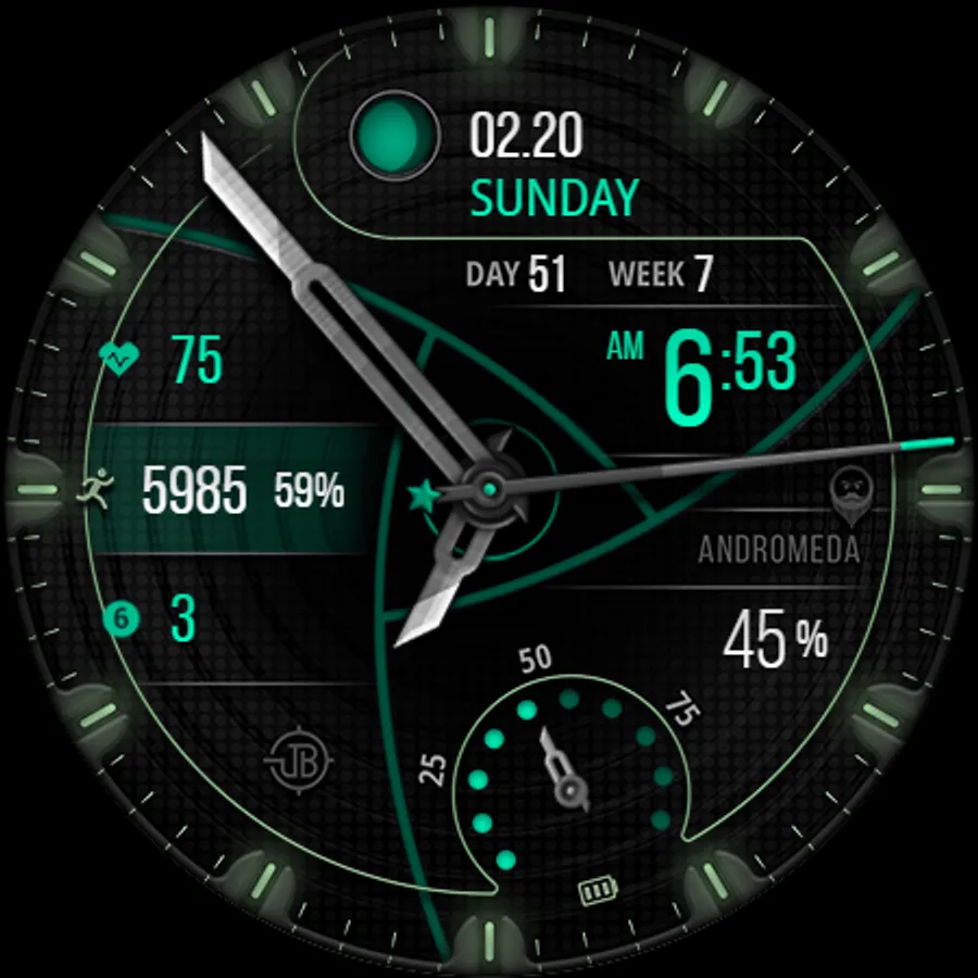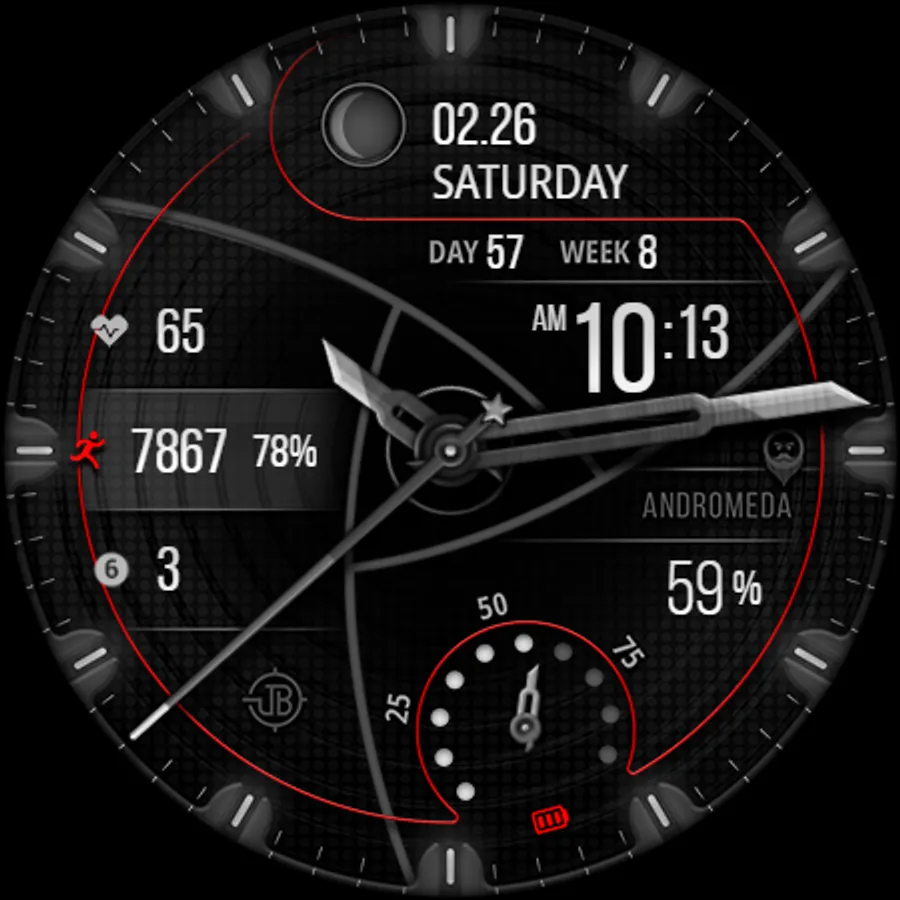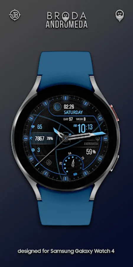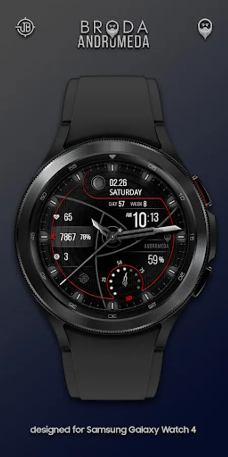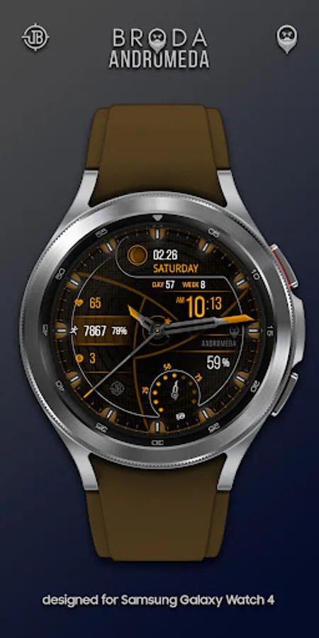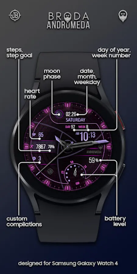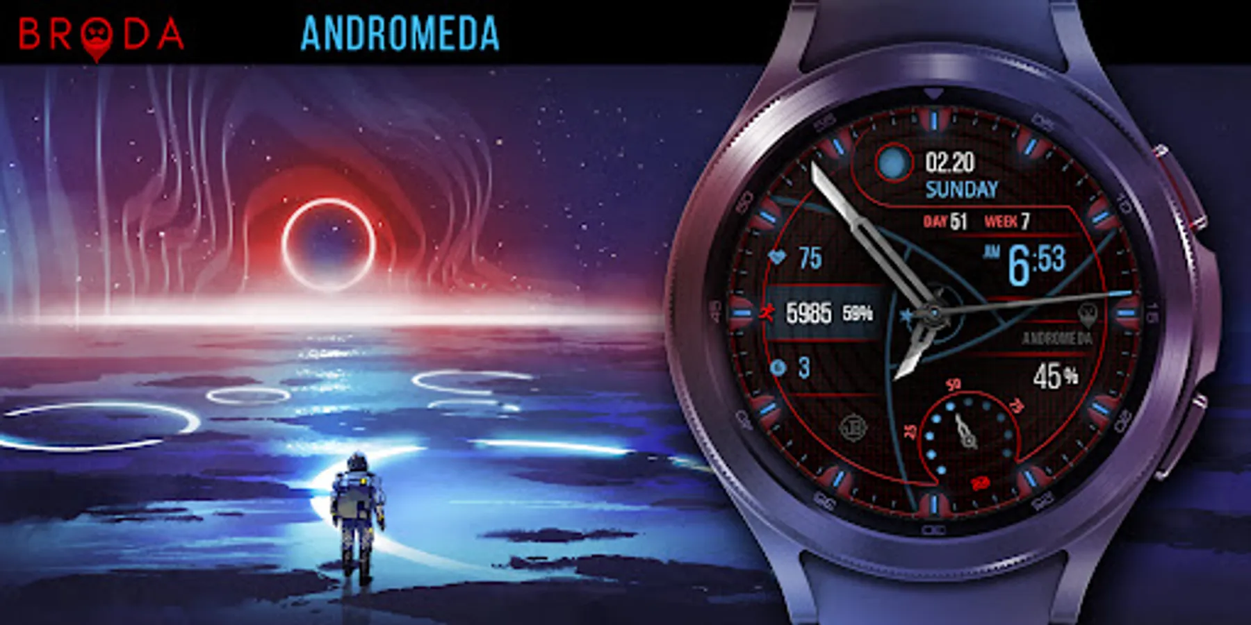 Broda Andromeda watch face designed for Samsung Galaxy Watch 4 powered by Wear OS.