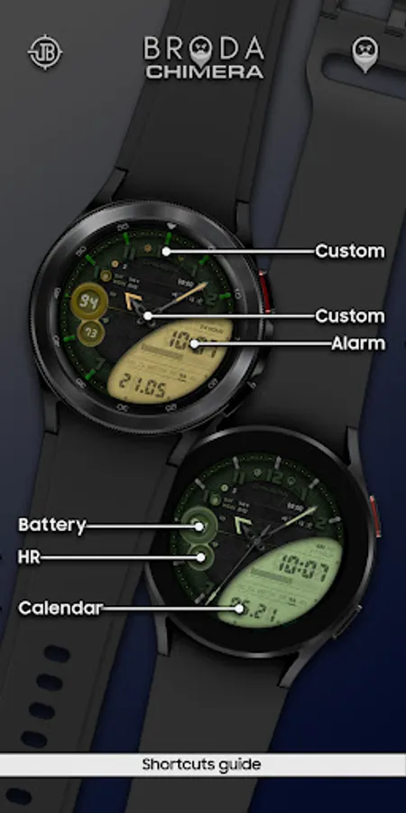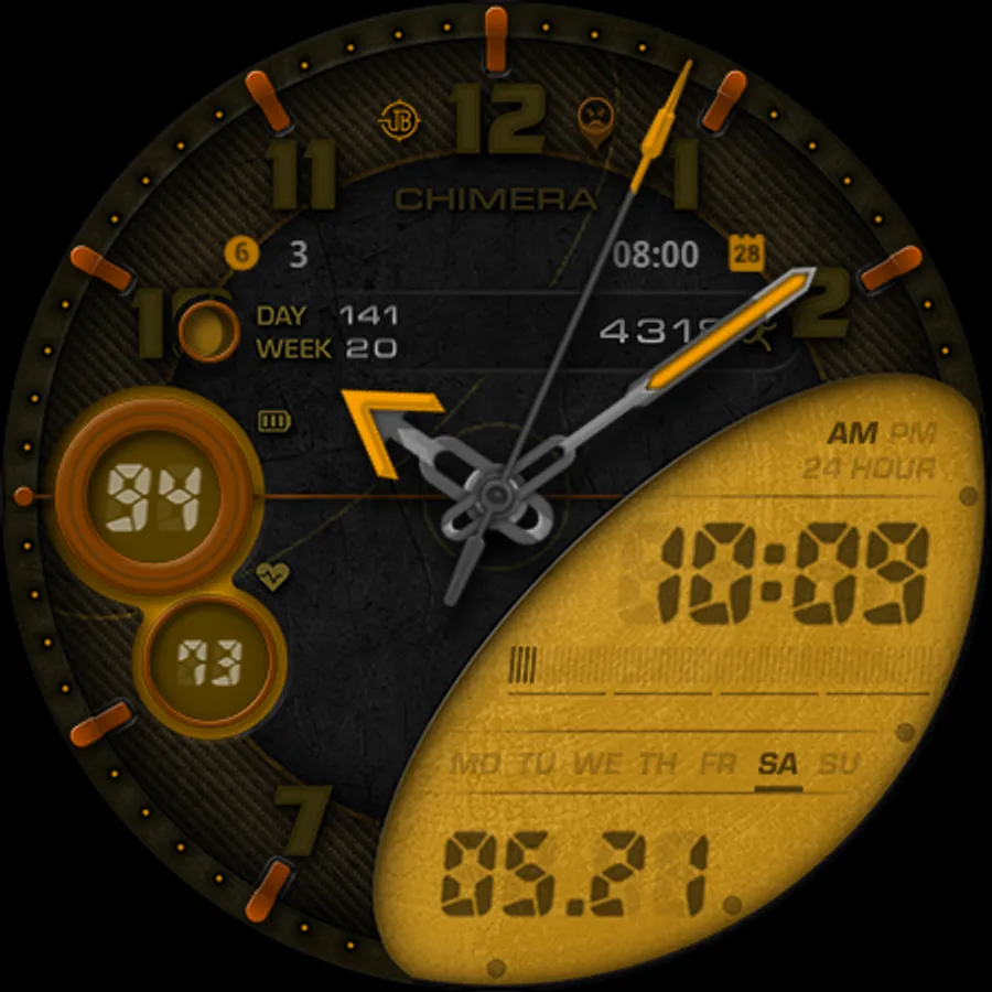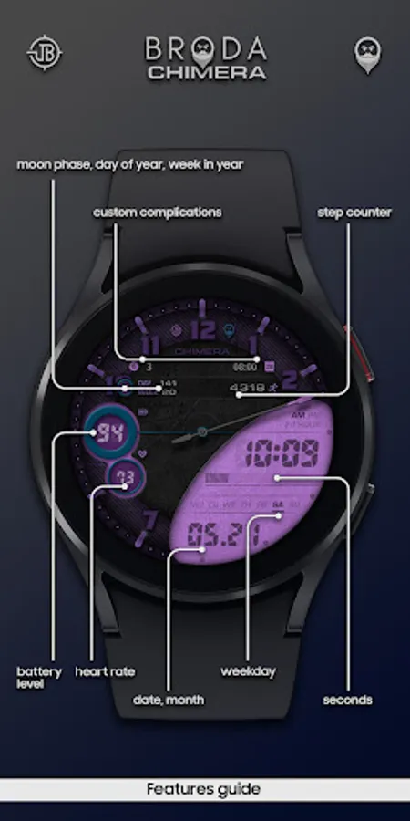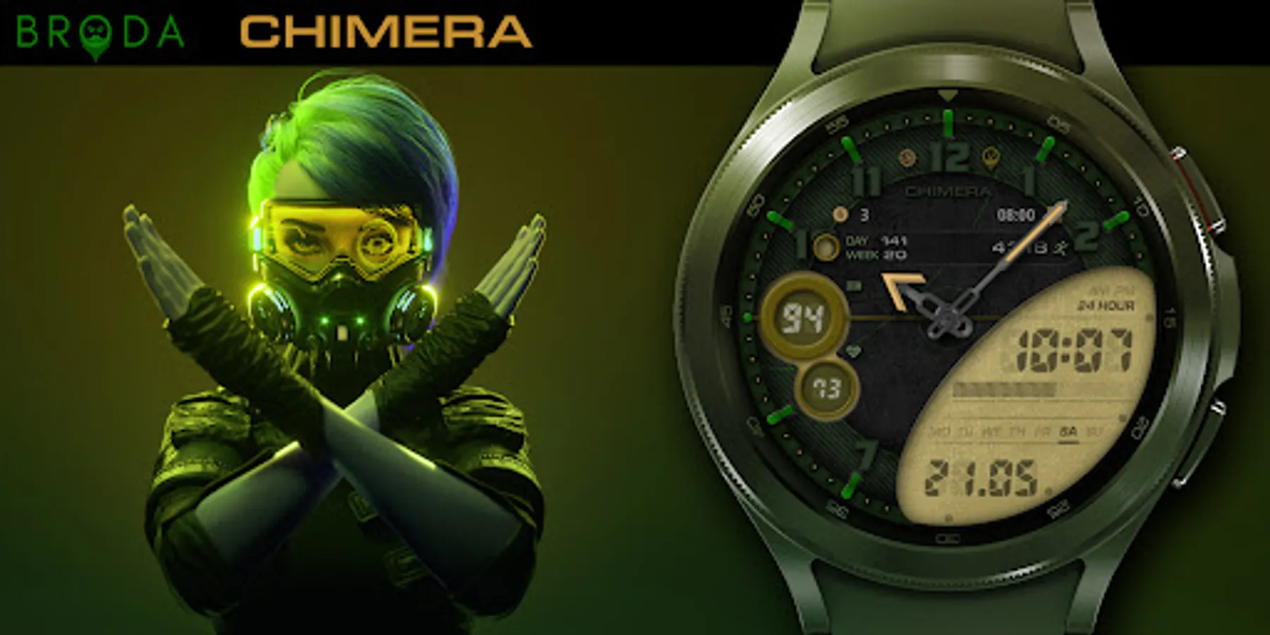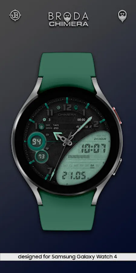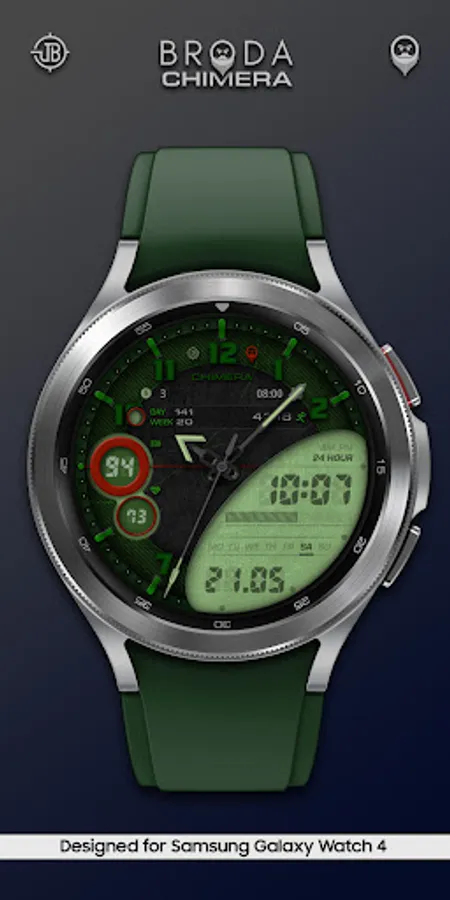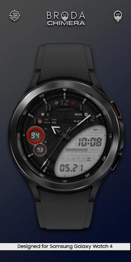 Broda Chimera watch face designed for Samsung Galaxy Watch 4 powered by Wear OS.