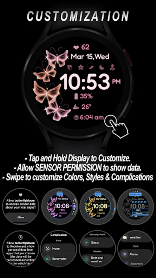 4️⃣ If incase there is no notification, Go to PLAYSTORE ON YOUR WATCH and type on the SEARCH BOX "Butterfly Bloom Watchface"