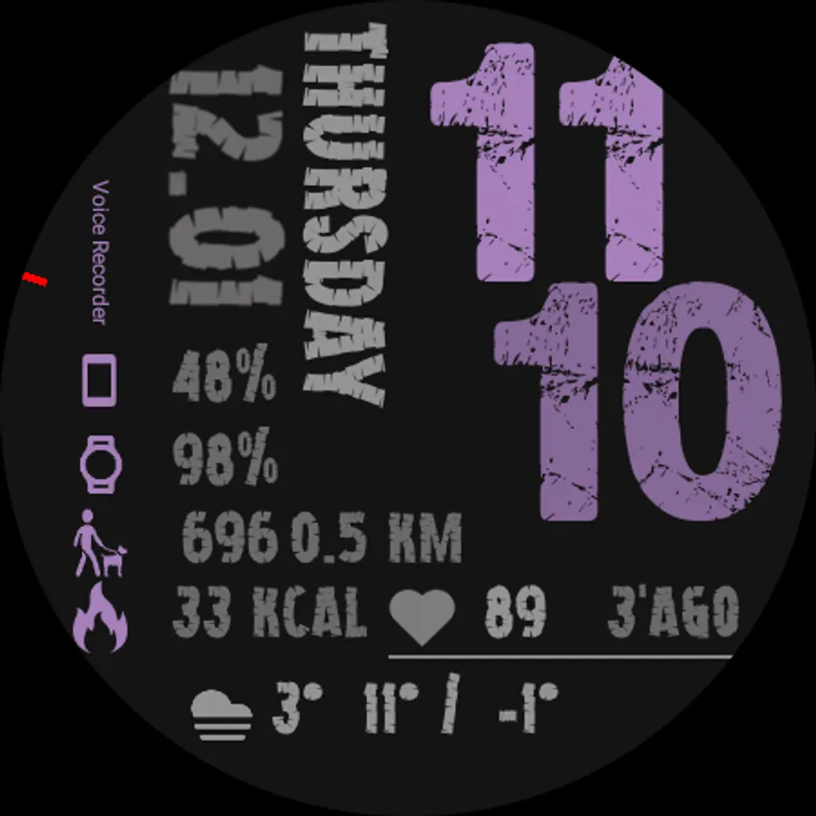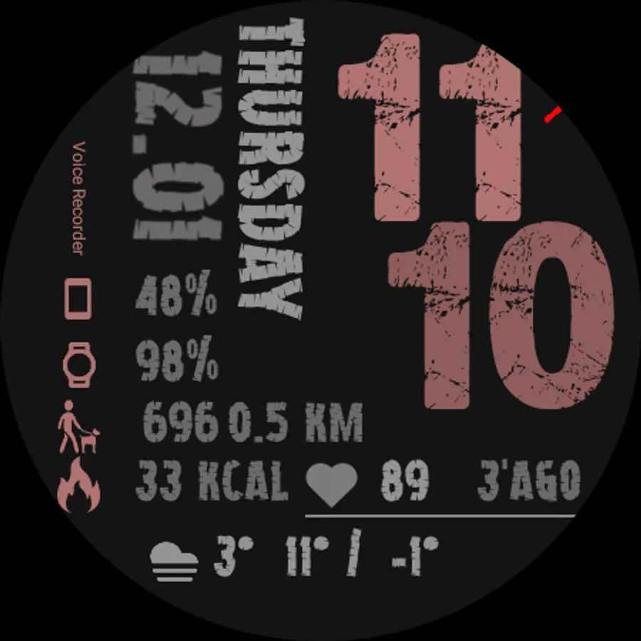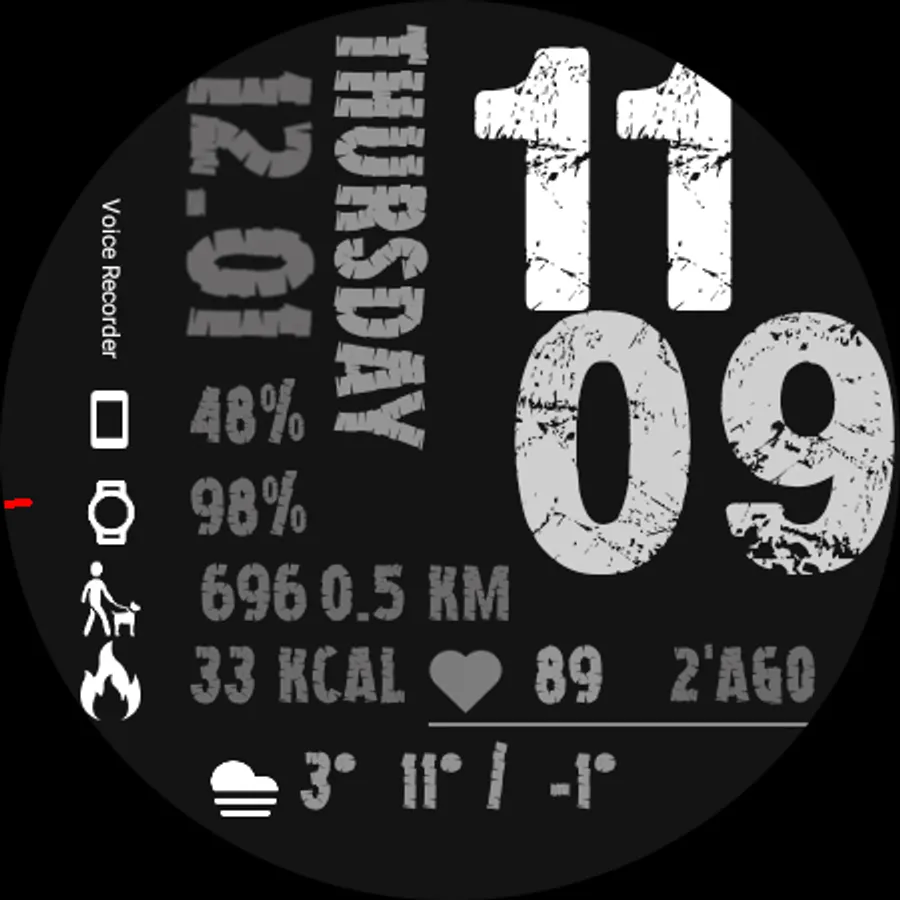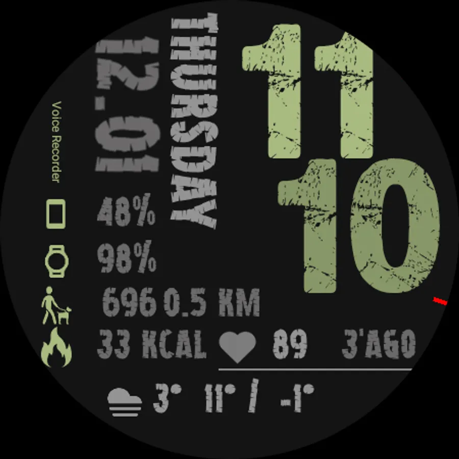 ⦾ Heart rate measuring every hour and manual by tapping the heart rate area (animation when measuring).