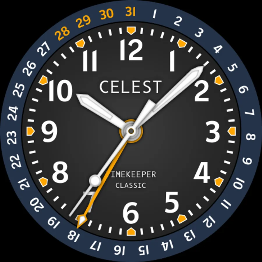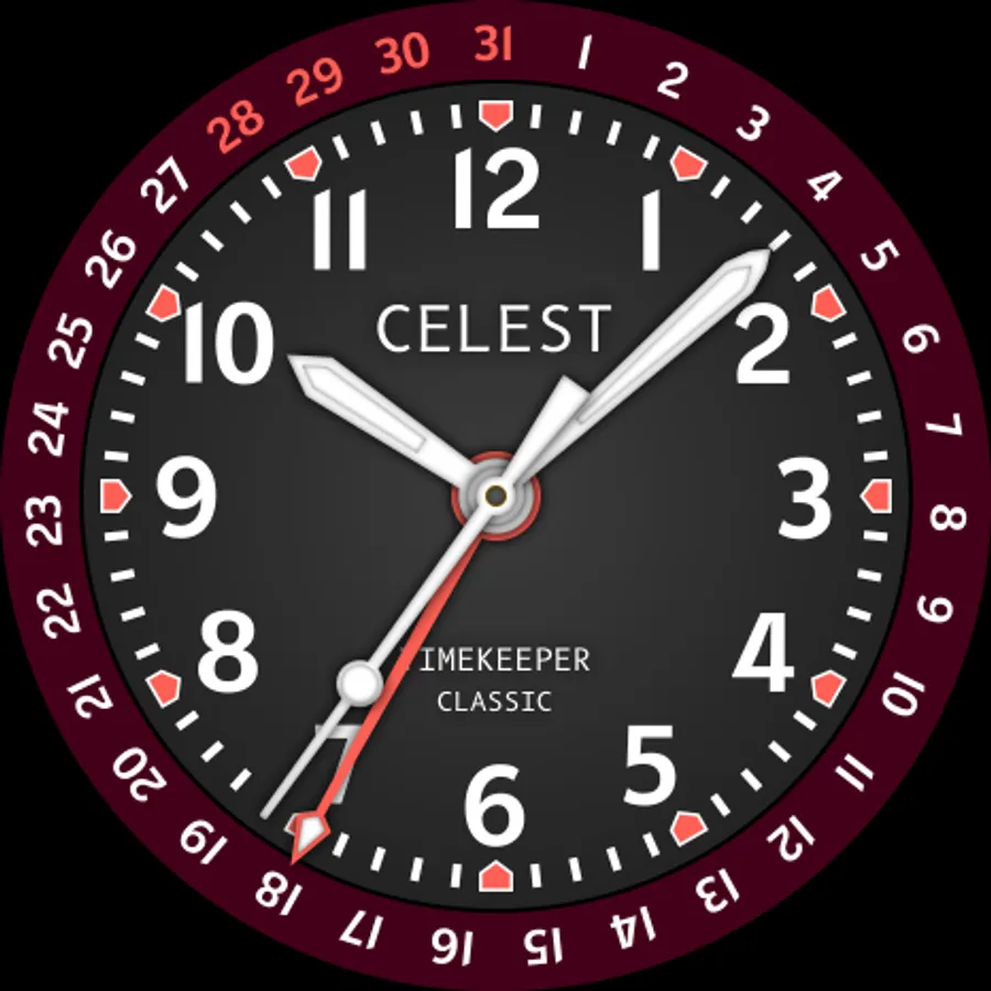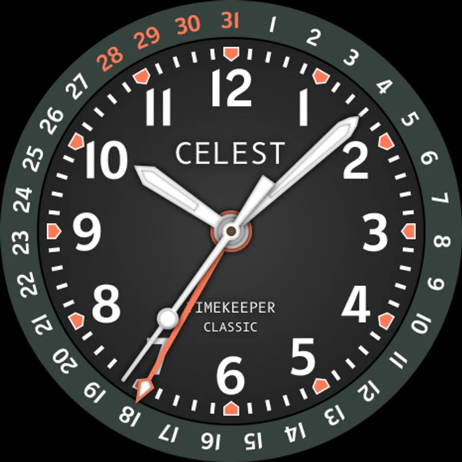 A watch face from CELEST Watches to turn your Wear OS device into a vintage wristwatch that is a joy to look at.