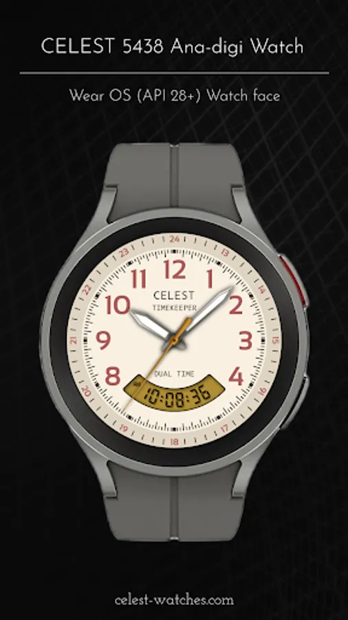 A watch face from CELEST Watches to turn your Wear OS device into a vintage wristwatch that is a joy to look at.