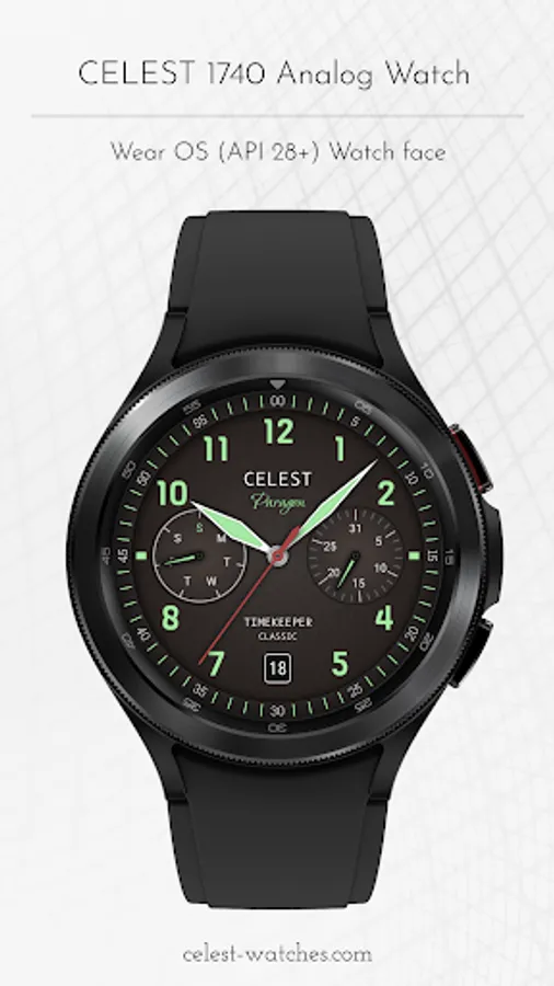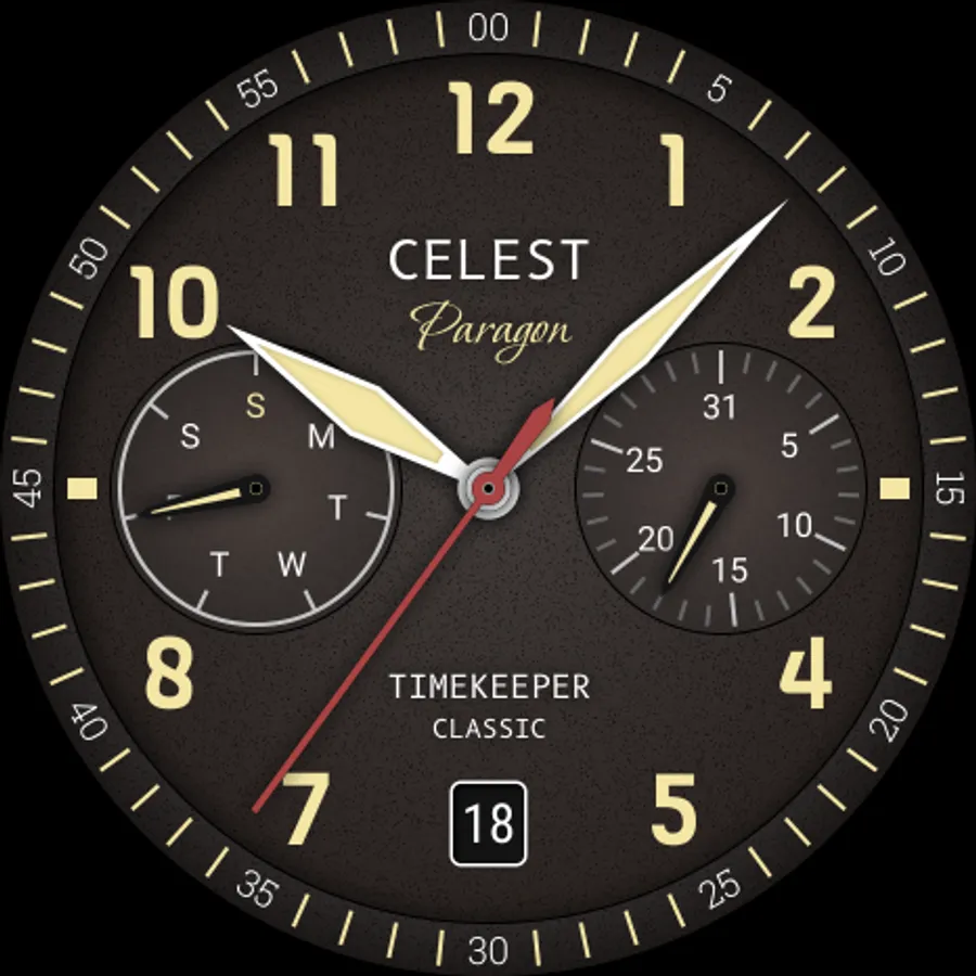 A watch face from CELEST Watches to turn your Wear OS device into a vintage wristwatch that is a joy to look at.