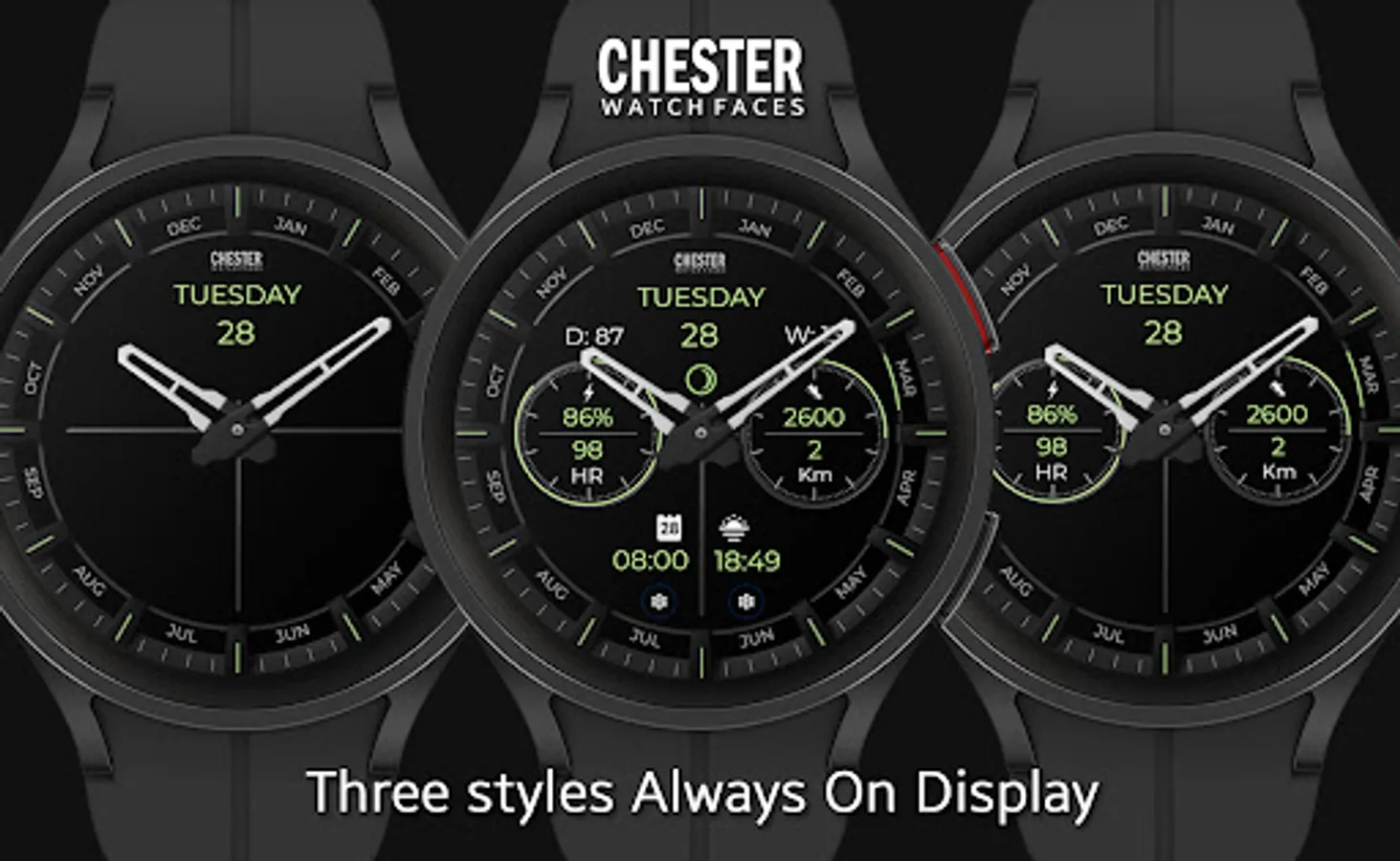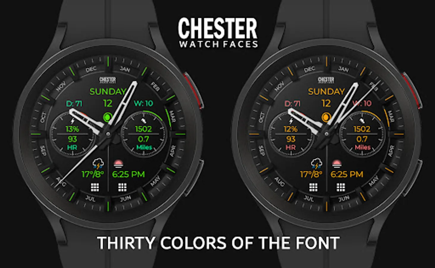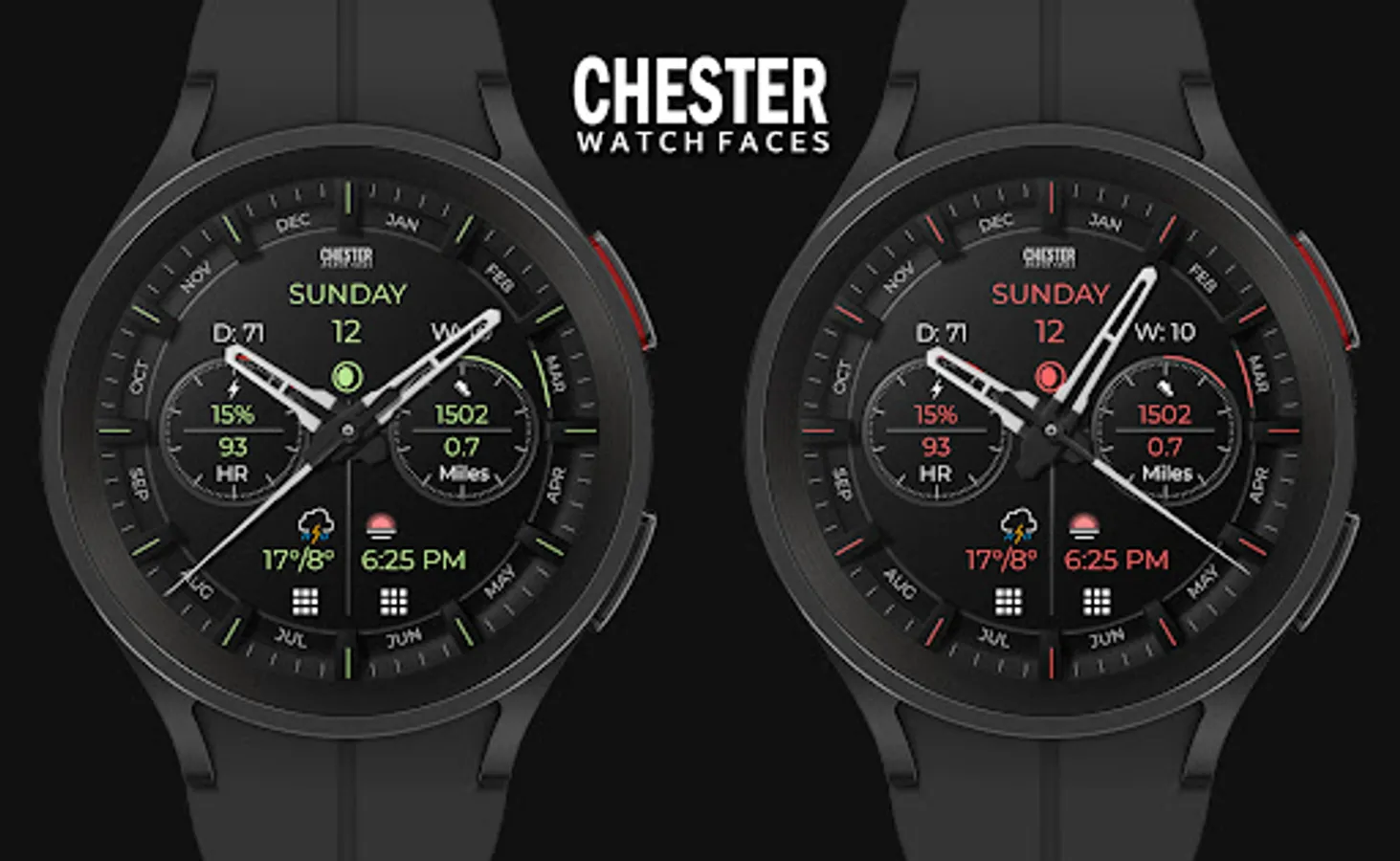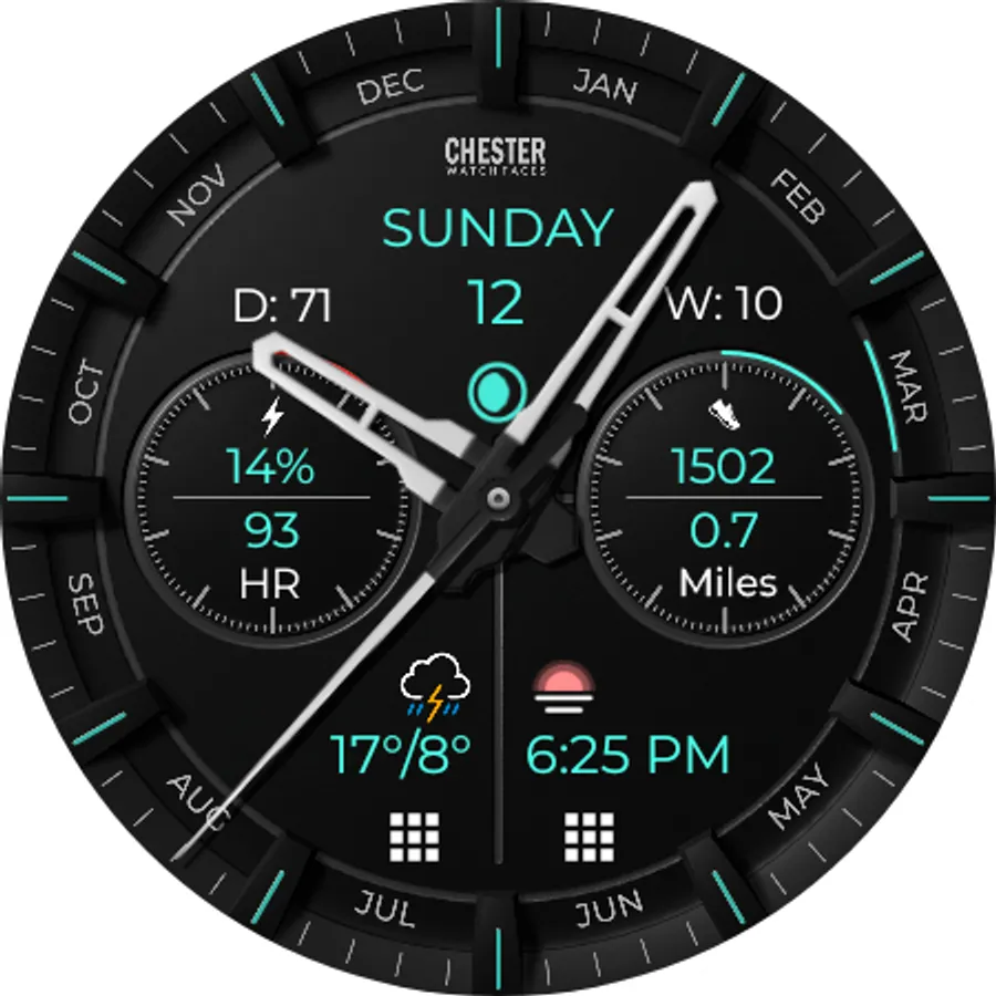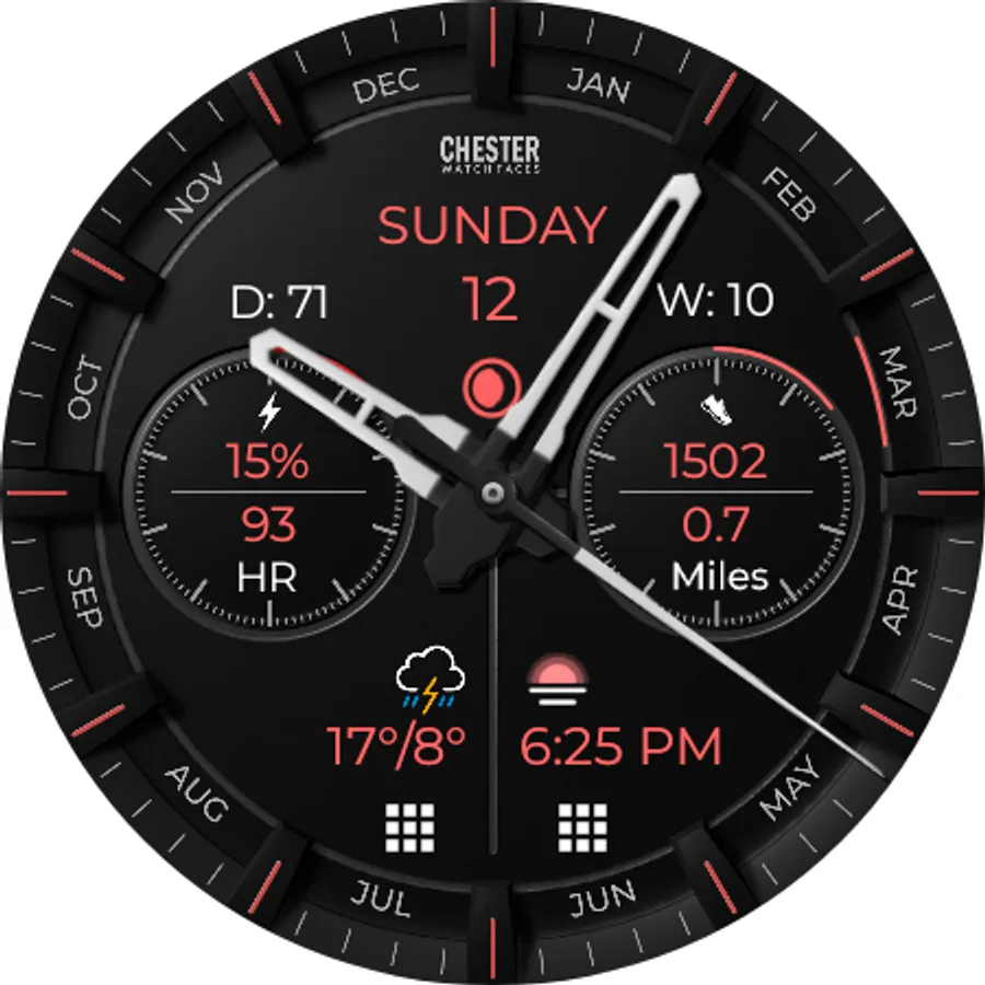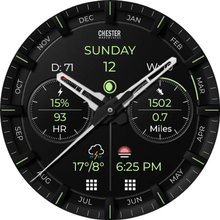 Stylish watch face with lots of information from CHESTER WATCH FACES!