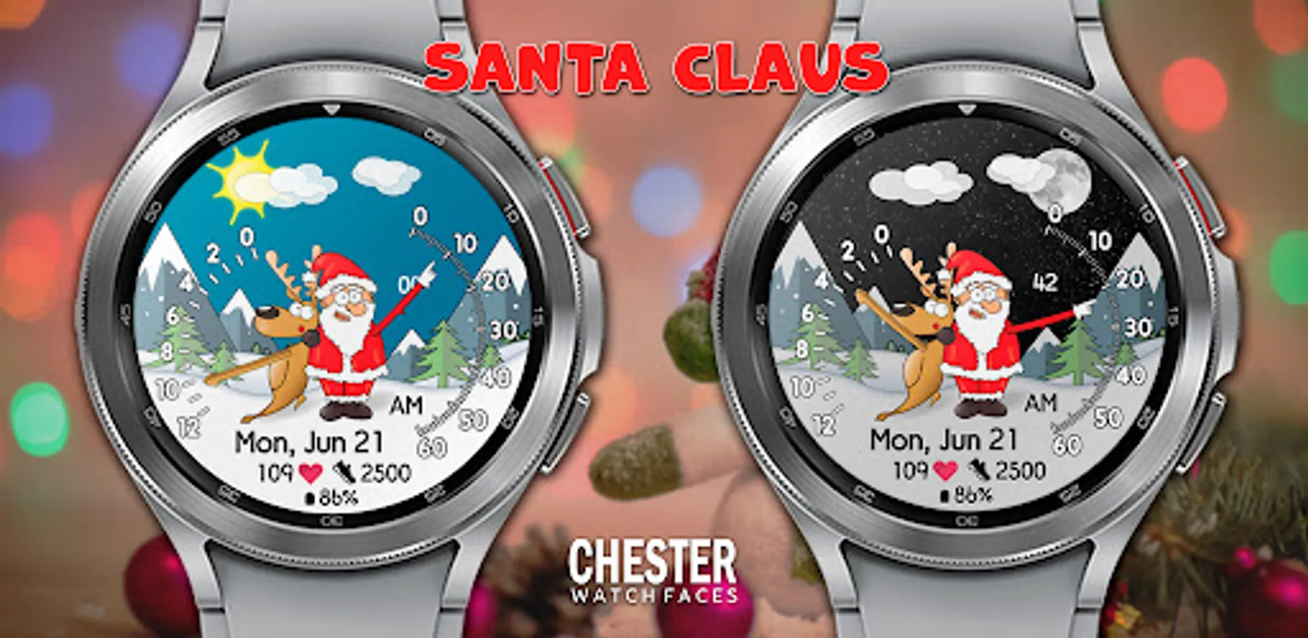 Stylish, animated Chester - Santa Claus dial.