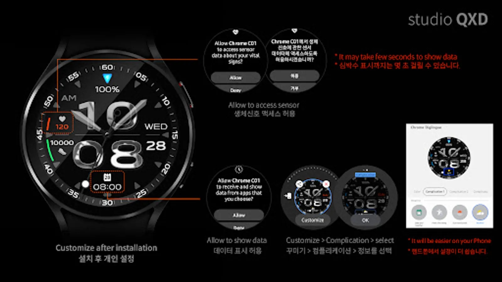 * It may take 5~10min to be installed on your watch.