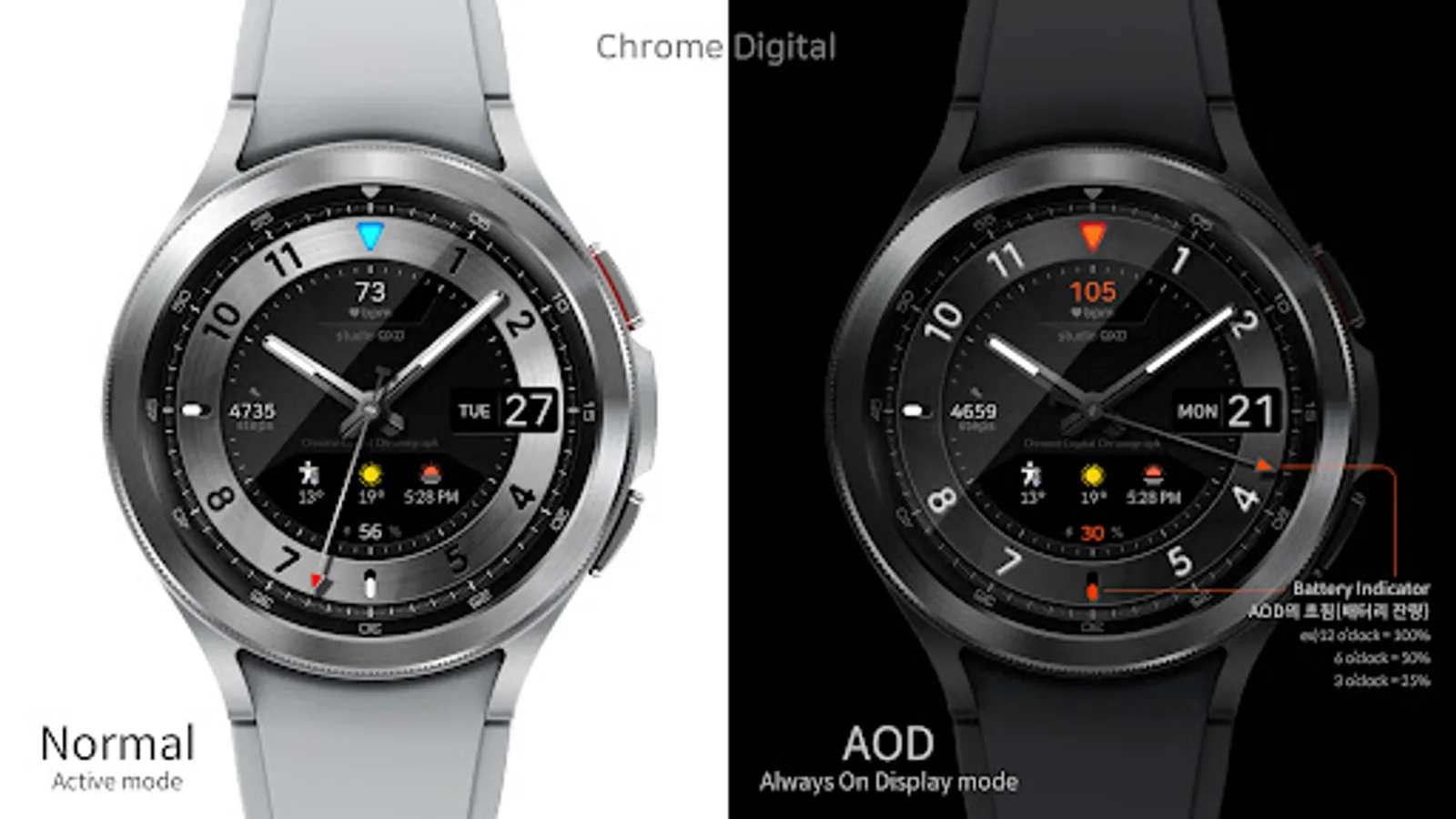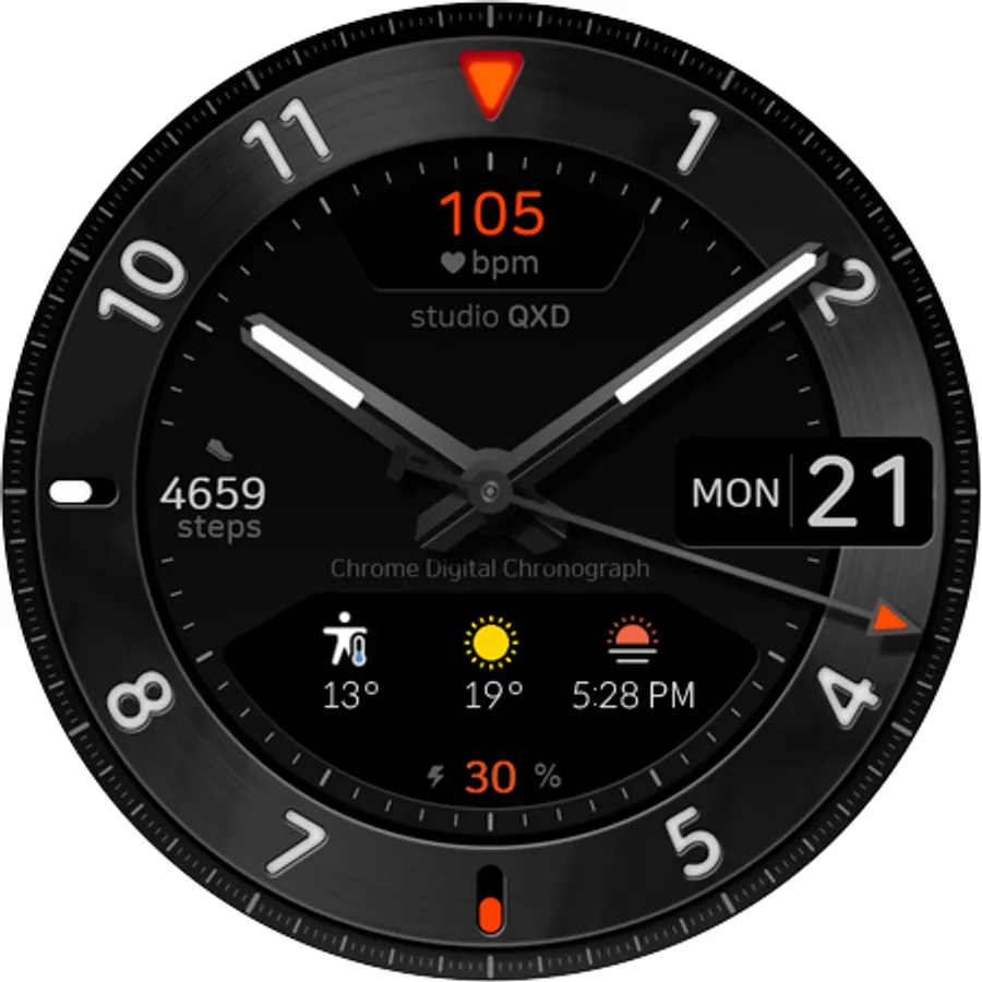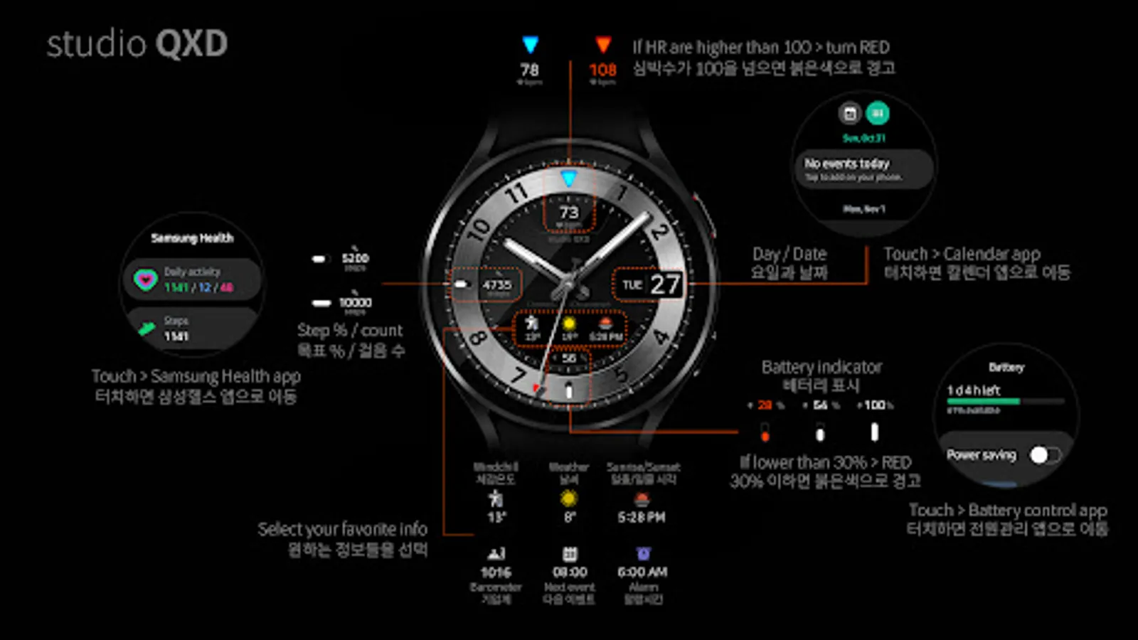 - Customizable information text and icon such as weather, next event, barometer, alarm, etc.