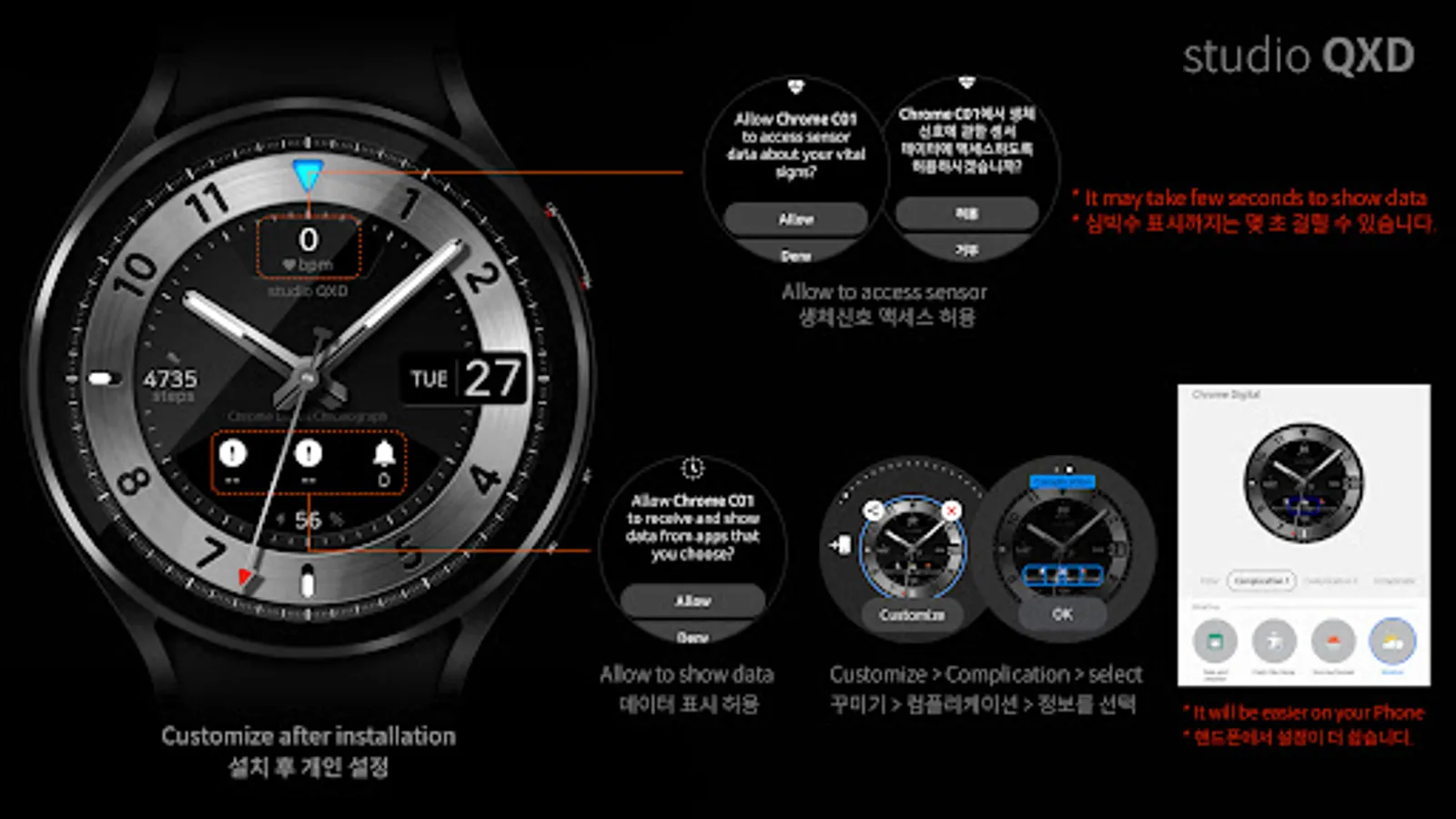 * It may take 5~10min to be installed on your watch.