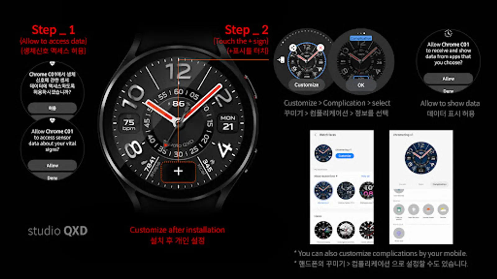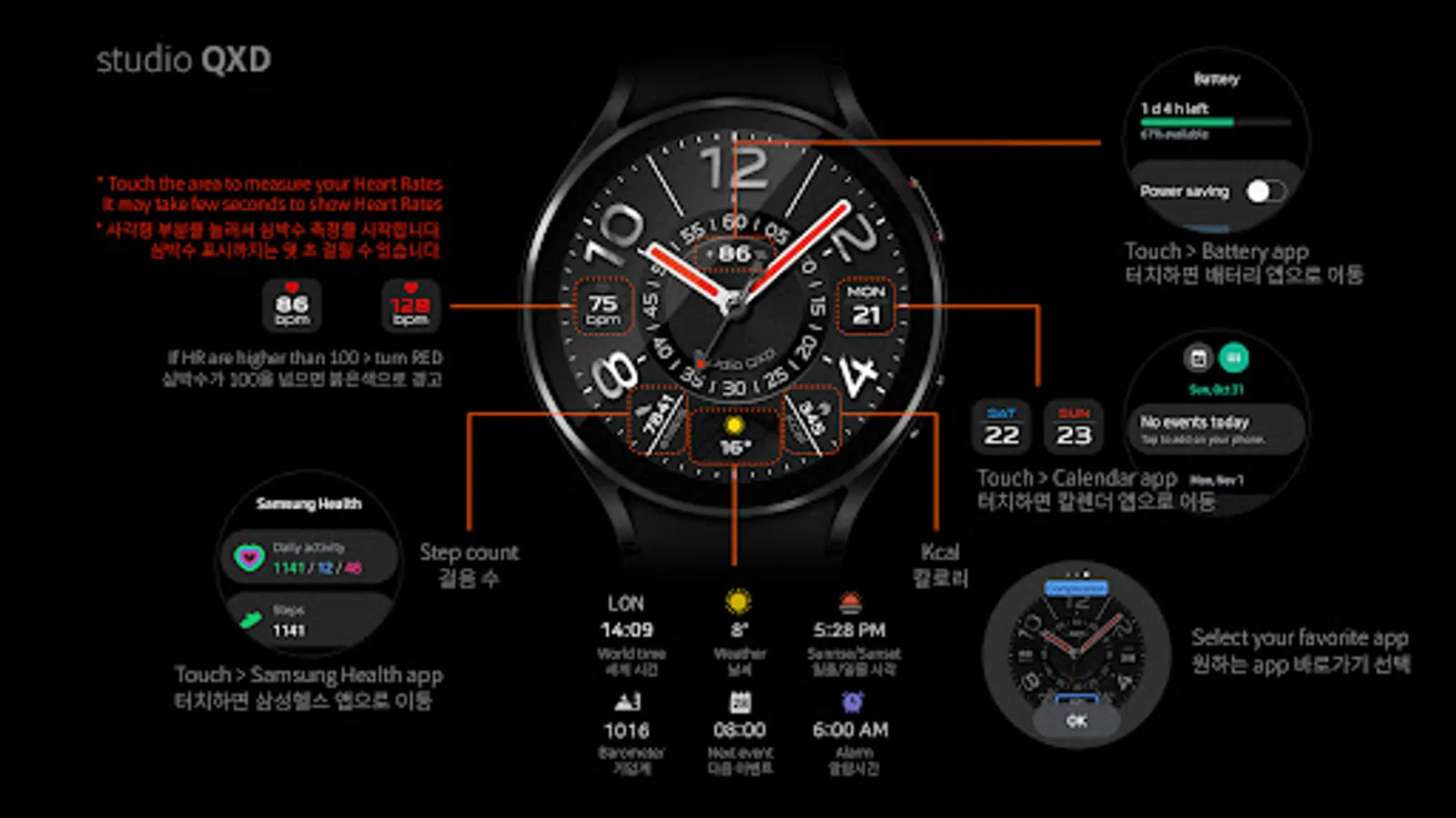 - Customizable information text and icon such as weather, next event, barometer, alarm, etc.