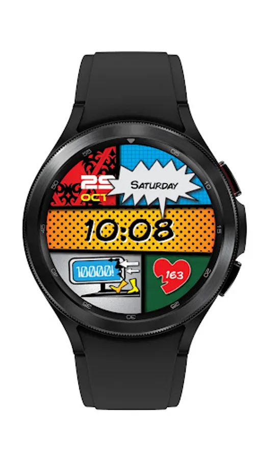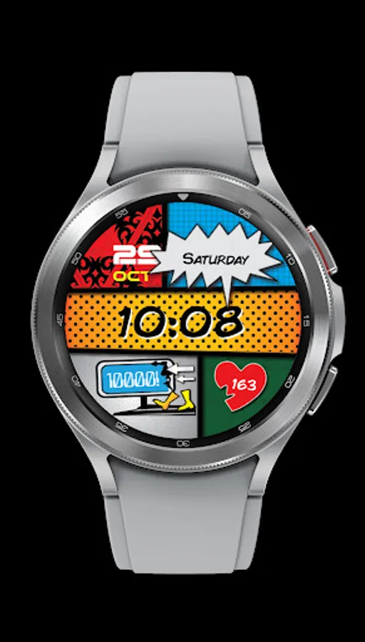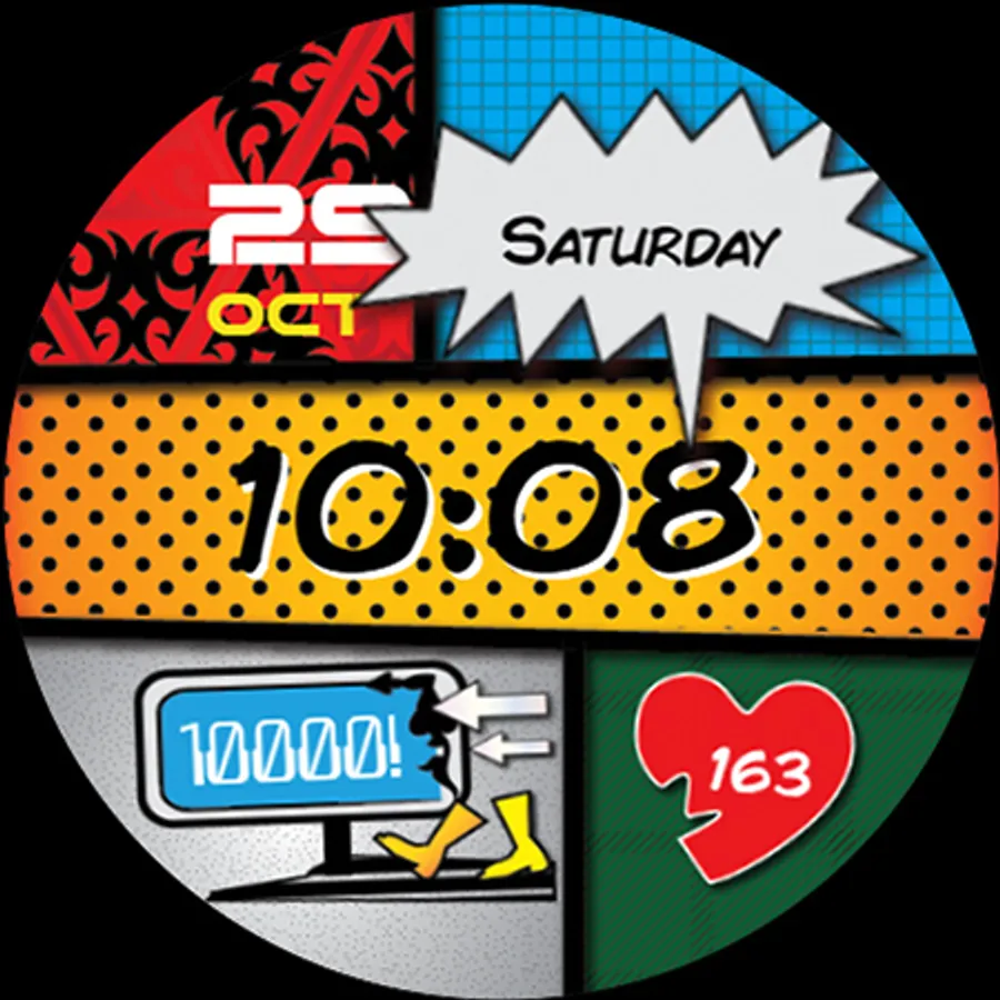 Comic Book inspired / themed watch face with Step Counter, Heart Rate, Date, Day, and of course time...